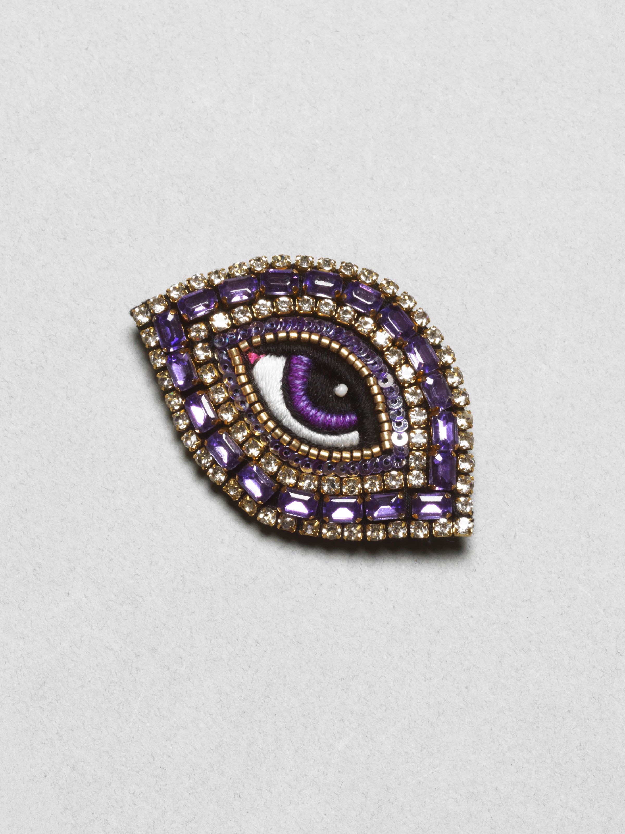 The Celeste Eye Brooch has become the classic of the Céleste Mogador brand. The eye is delicately embroidered by hand with colored silk threads.