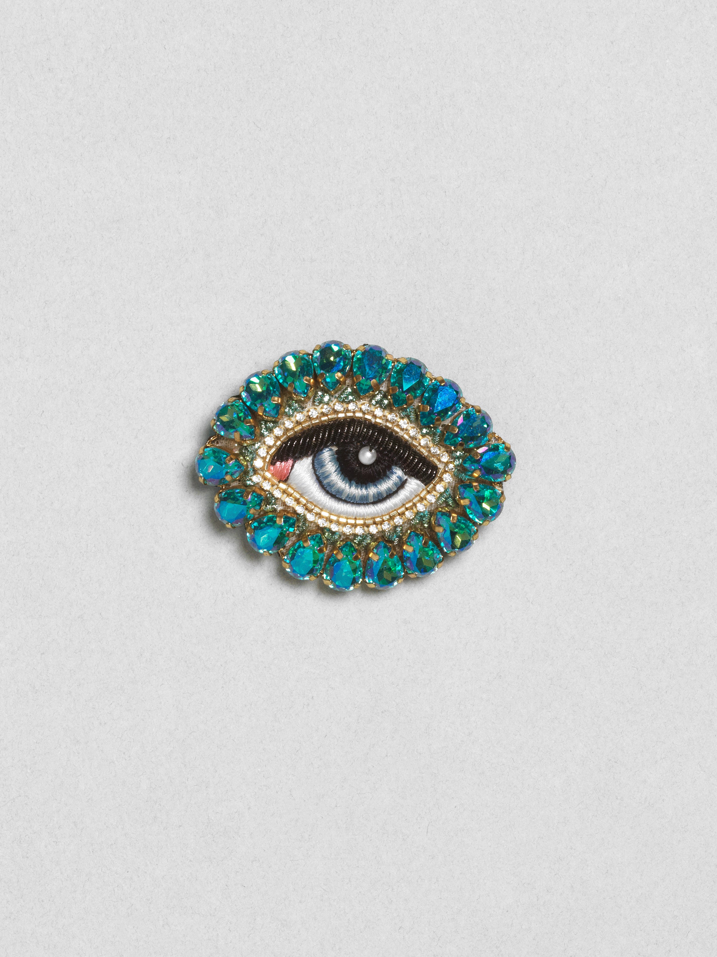 The Celeste Eye Brooch has become the classic of the Céleste Mogador brand. The eye is delicately embroidered by hand with colored silk threads.