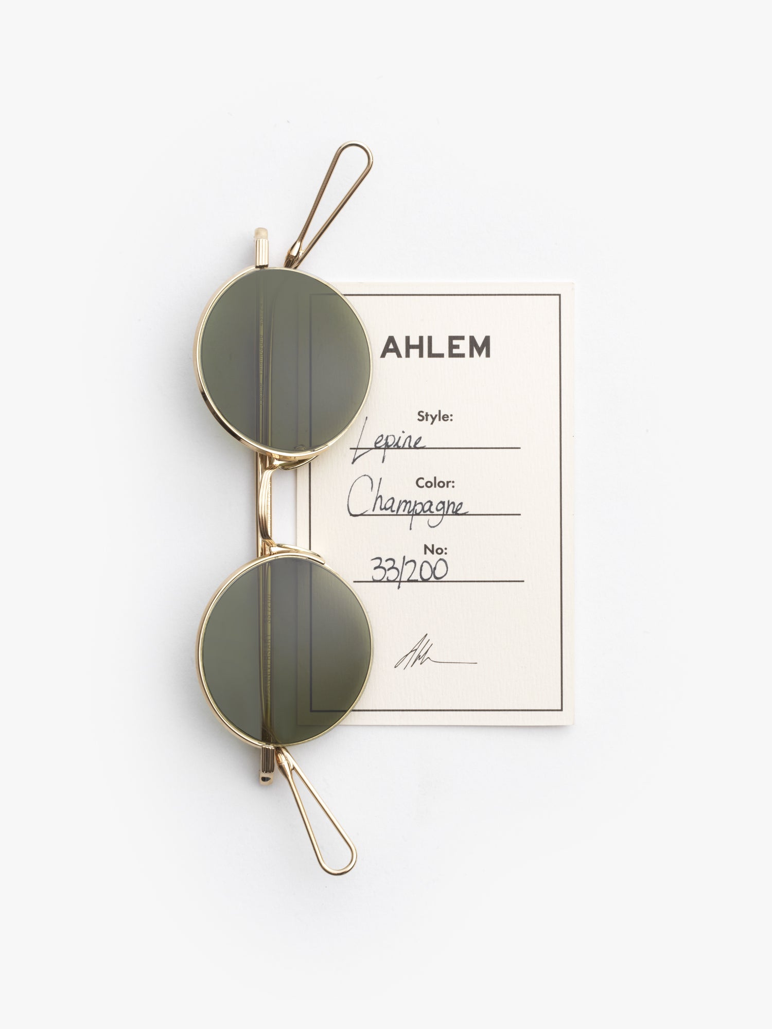 A redesign of Coluche, an early AHLEM style and perennial favorite shape, the elegantly mannered Lépine conjures the ease of a true cosmopolitan: at home in the world and radiating low-key glamor. This chic round silhouette is perfect for fans of radical design movements, night swims in the Mediterranean, new translations of Greek classics, the future.