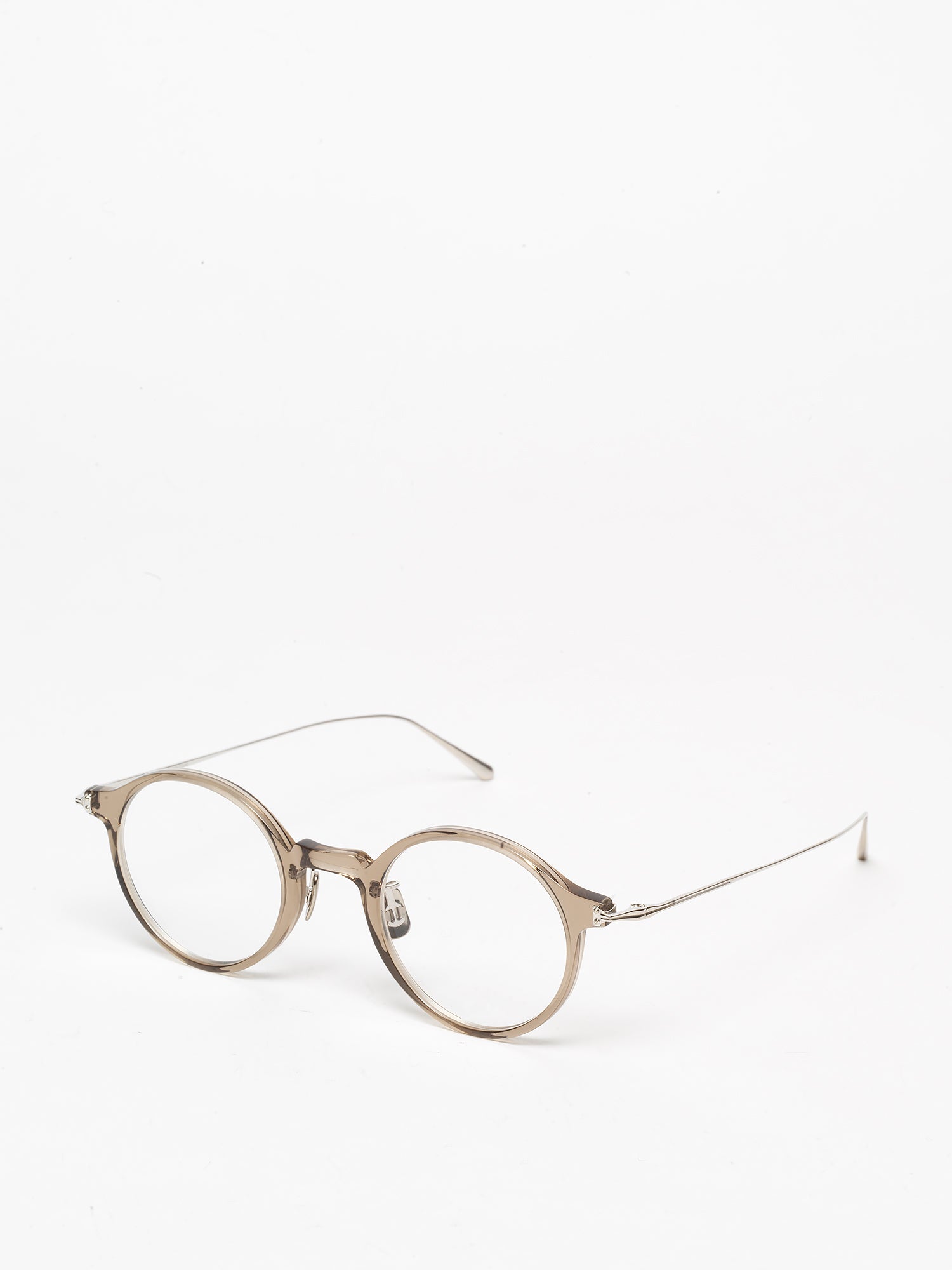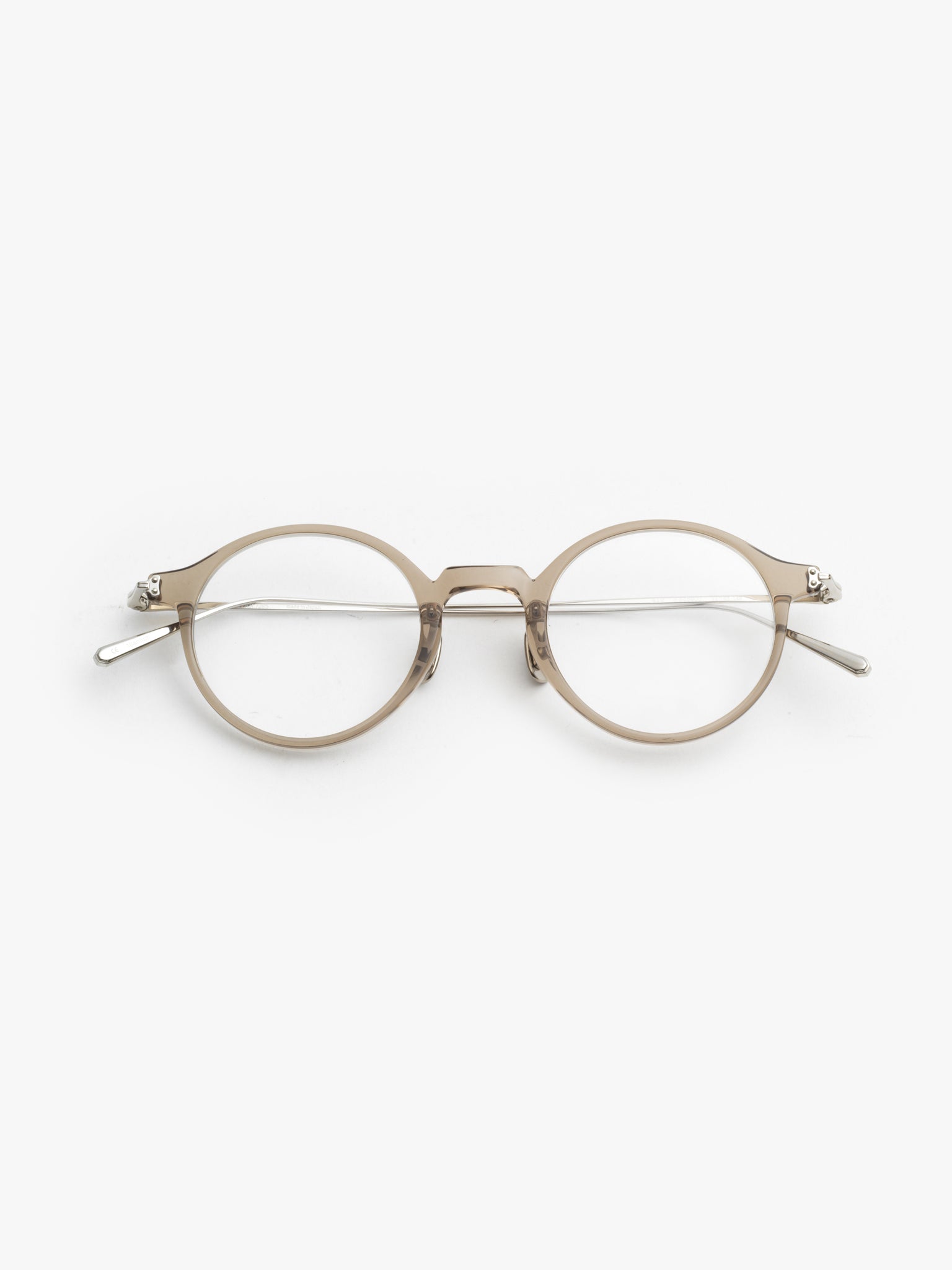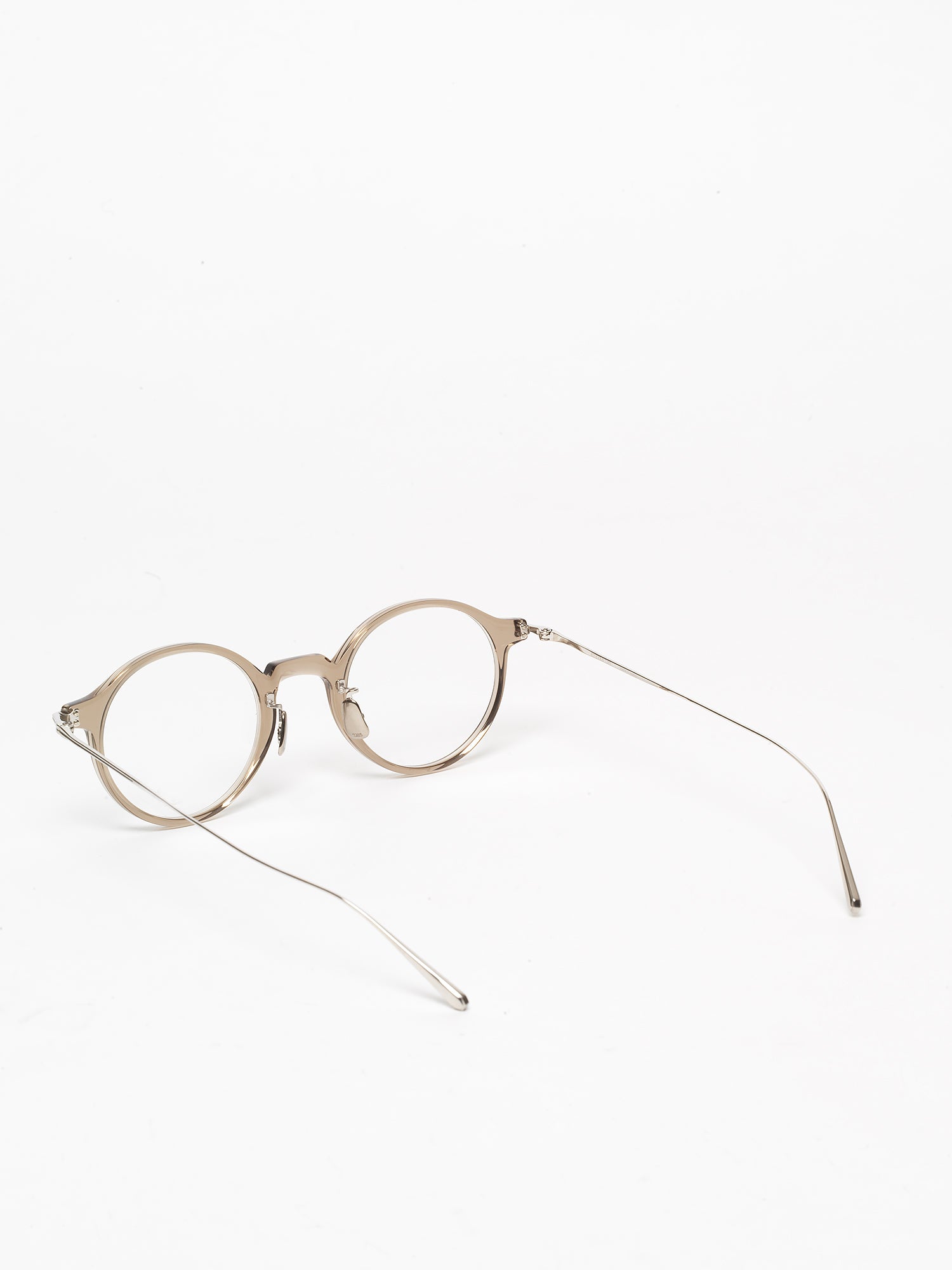 The design source for the titanium endpiece that matches the small P3 shaped plastic front is a buckle from British military wear in the 40’s. The temples have a polygonal shape at the tips of the temple end, and the edges of the temples are engraved with lines at a pitch of 0.2mm. Inspired by the folk of the 20’s. The brand’s concept of creating new things by incorporating various sources from the past and present into its designs is also expressed in this [419].