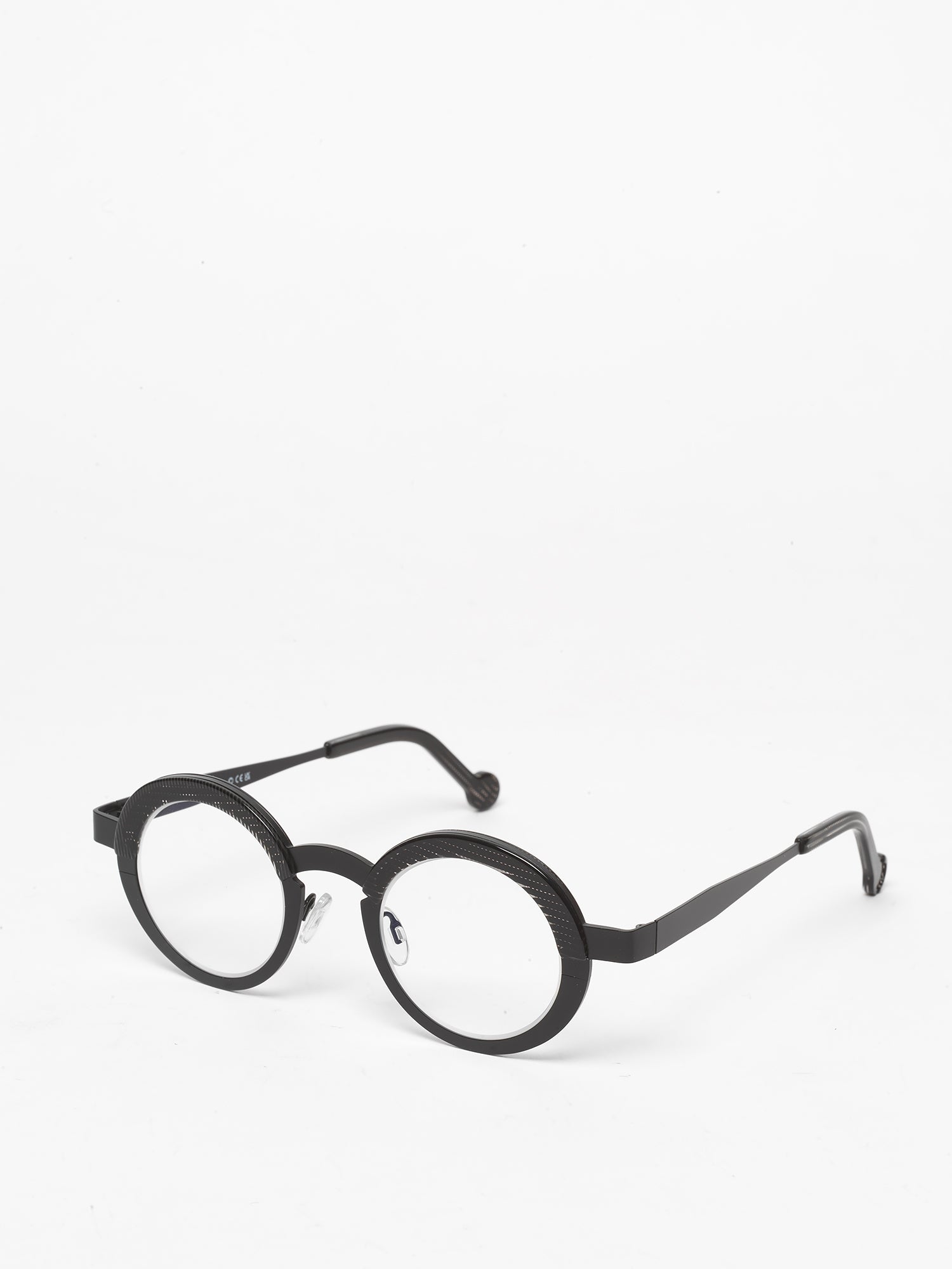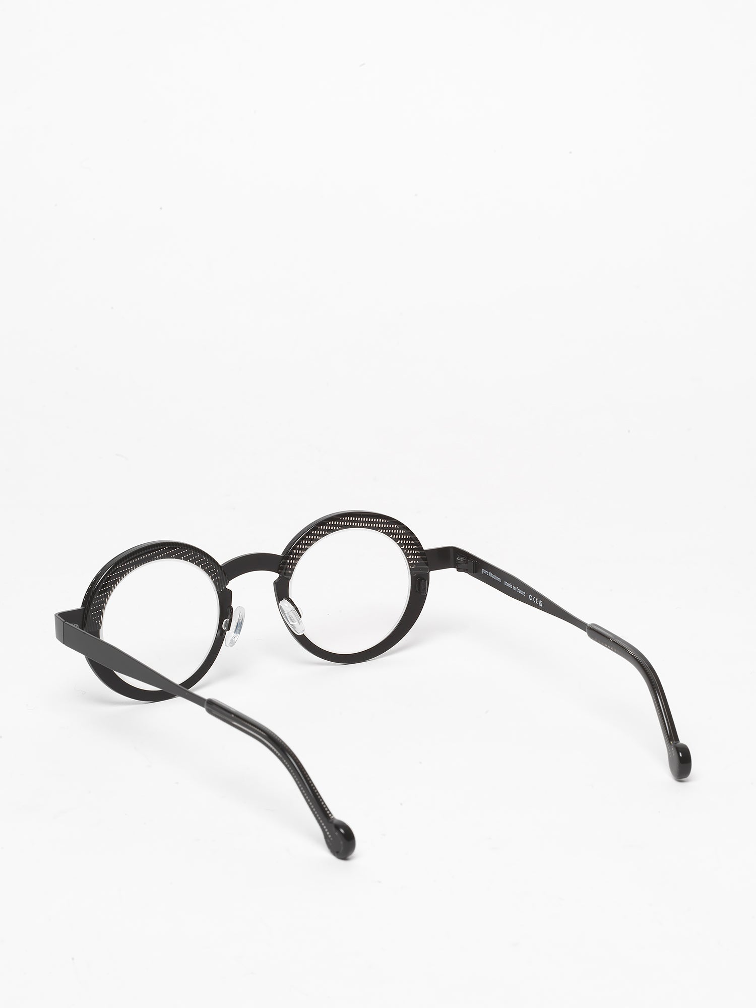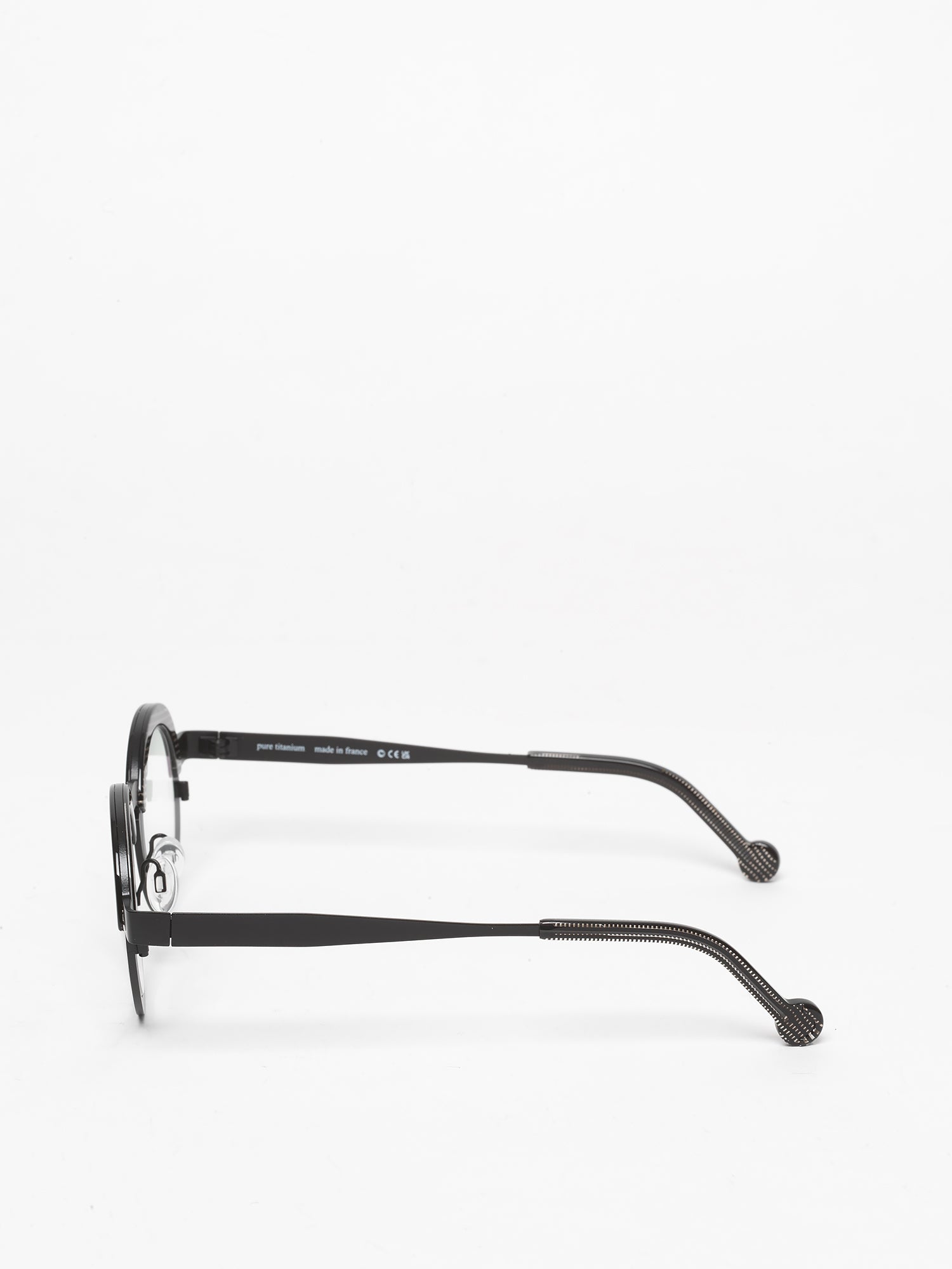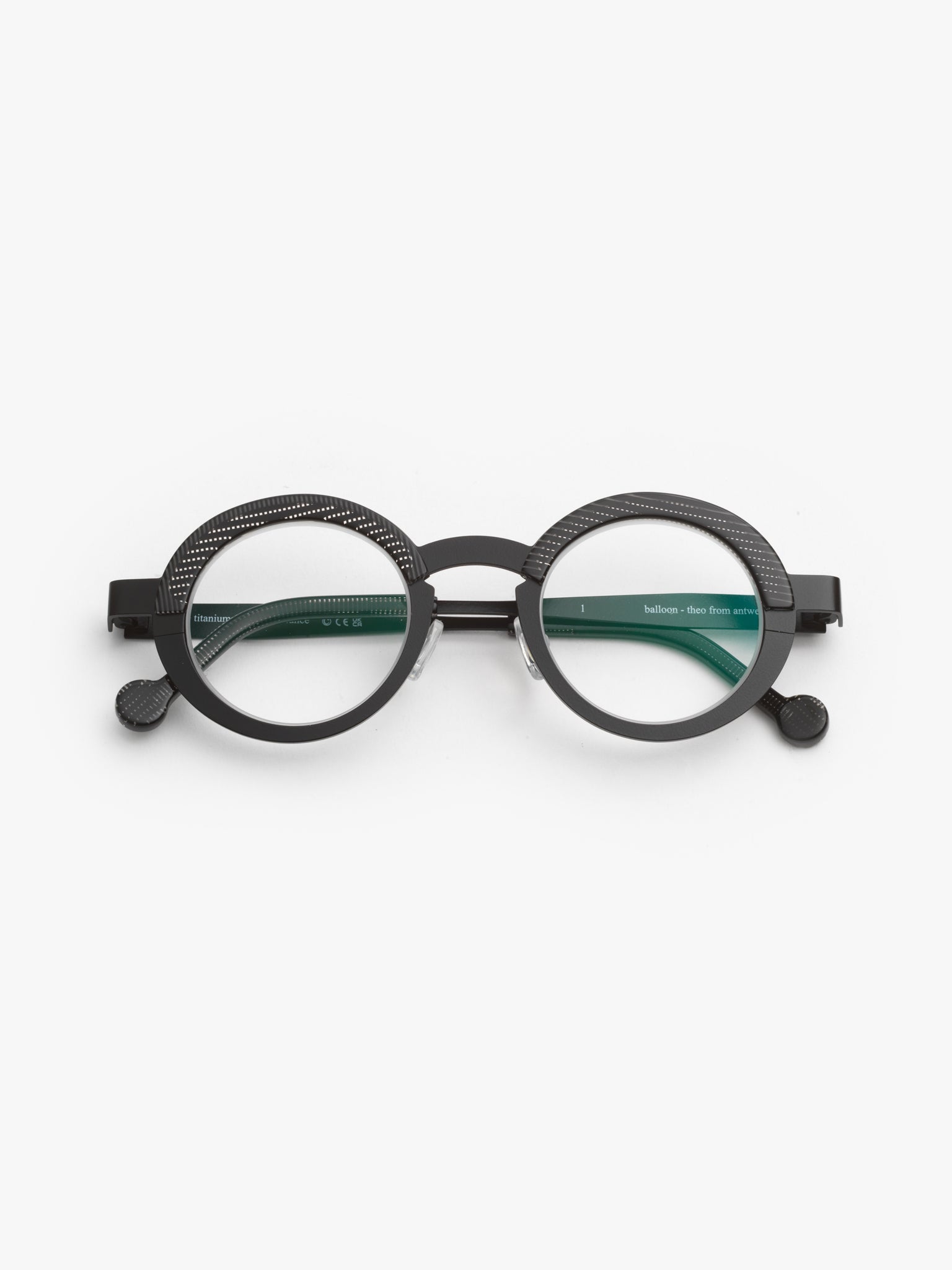 The Balloon model showcases a round design with straight front frame, made from titanium with acetate finishes