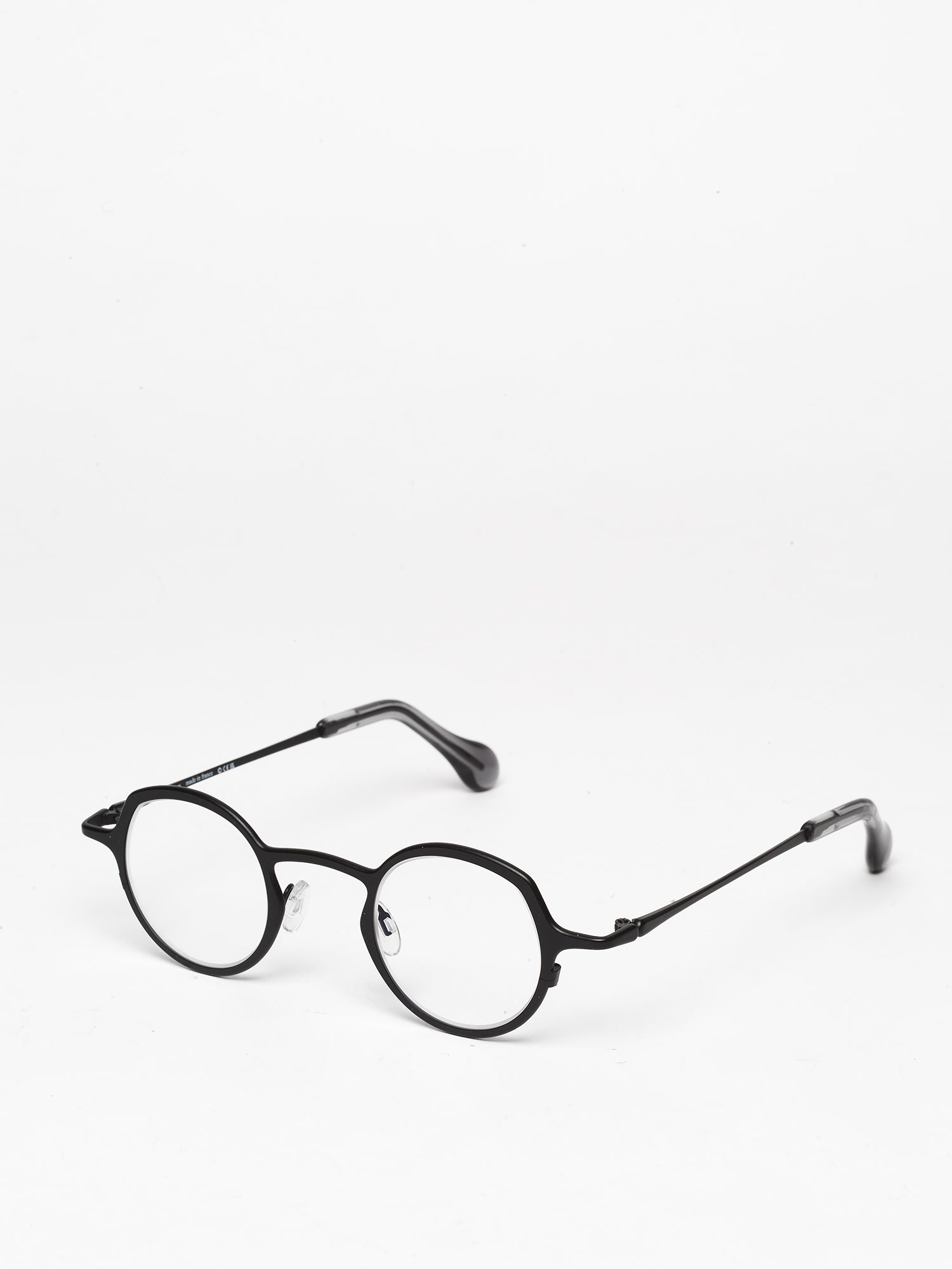 - matte black frame with transparent grey endings
