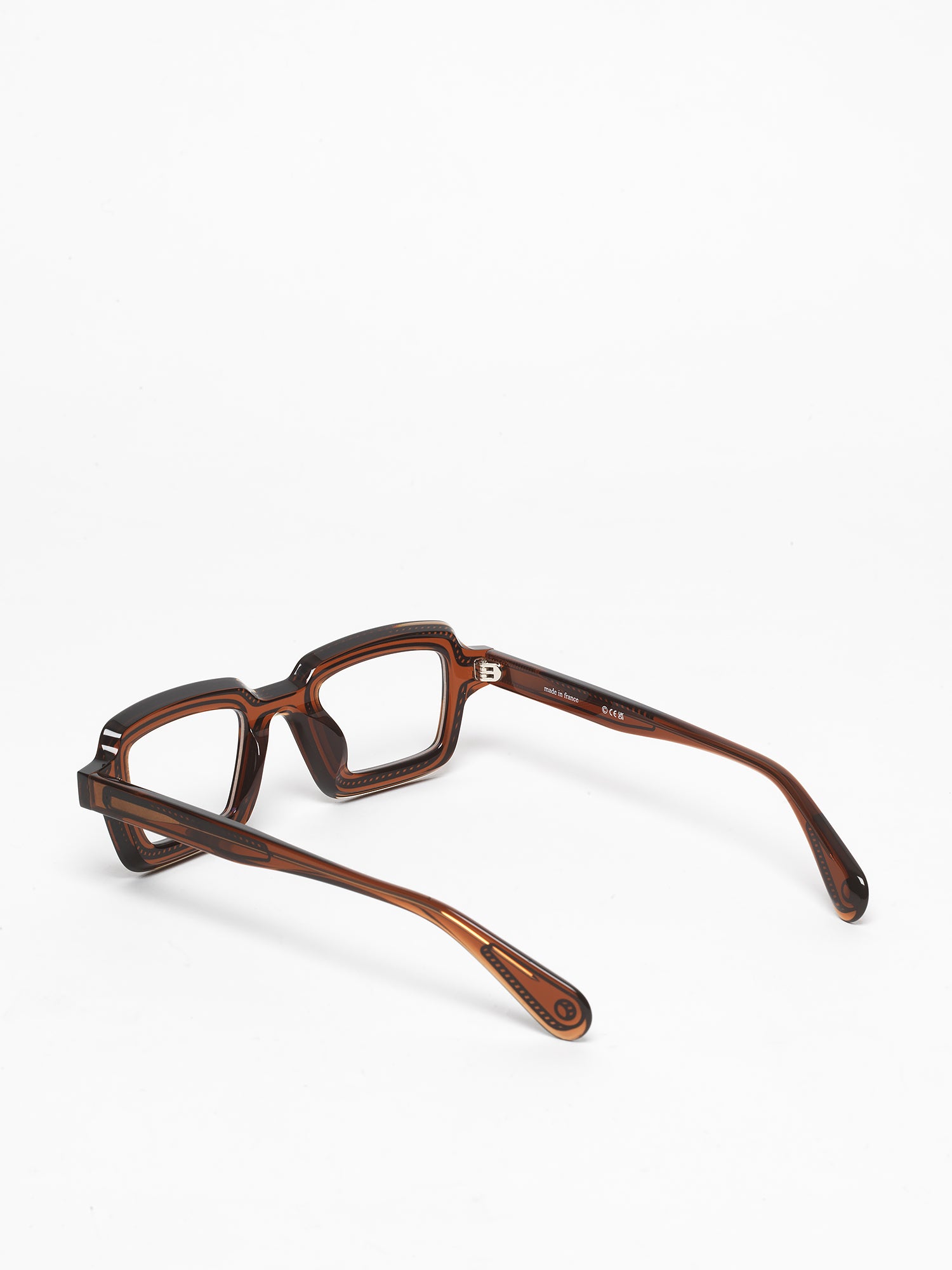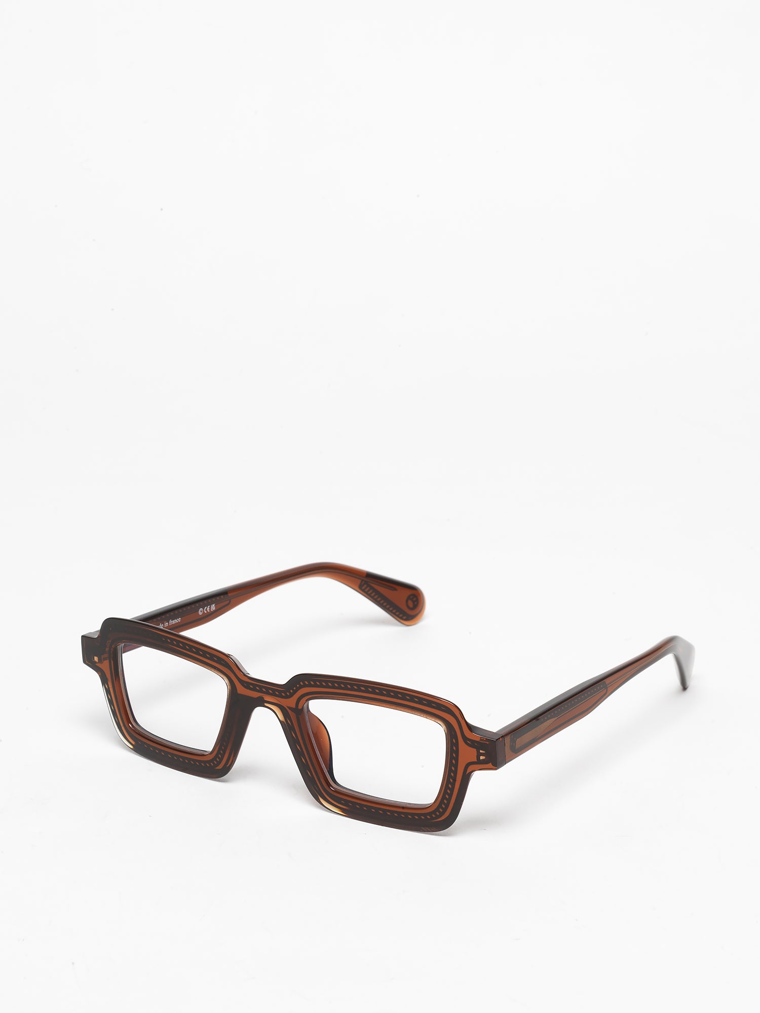 Squared shape with flat edges, crafted in a glossy transparent color and adorned with a decorative pattern outlining the entire frame.