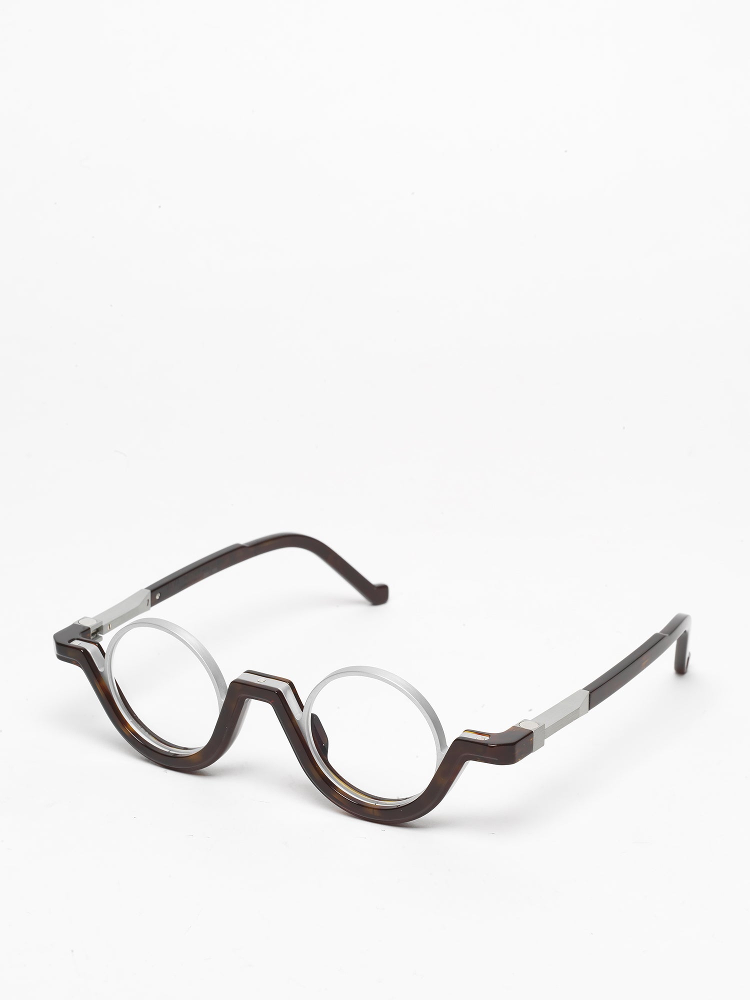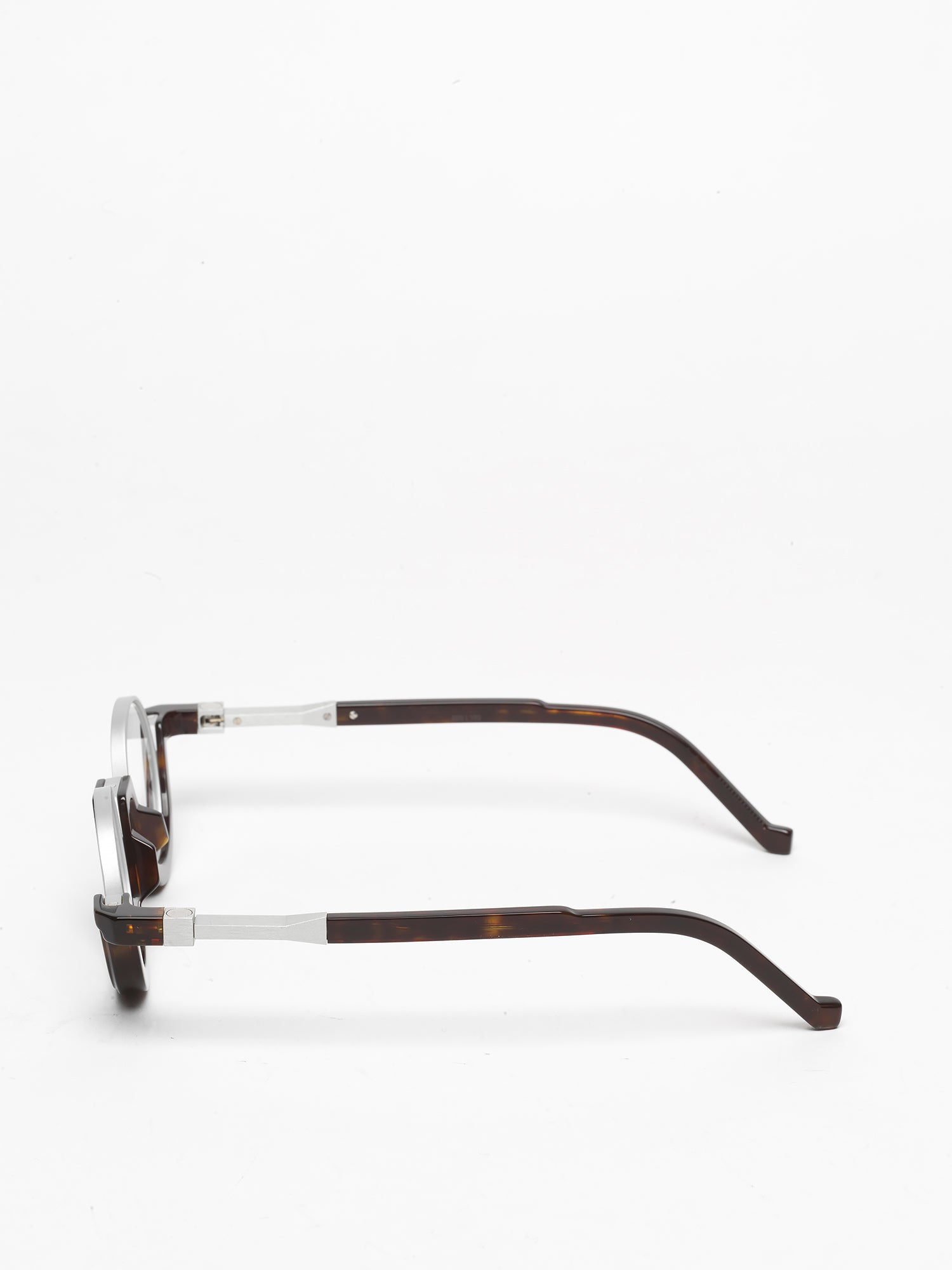 • dark tortoiseshell acetate frame combined with matte silver aluminium