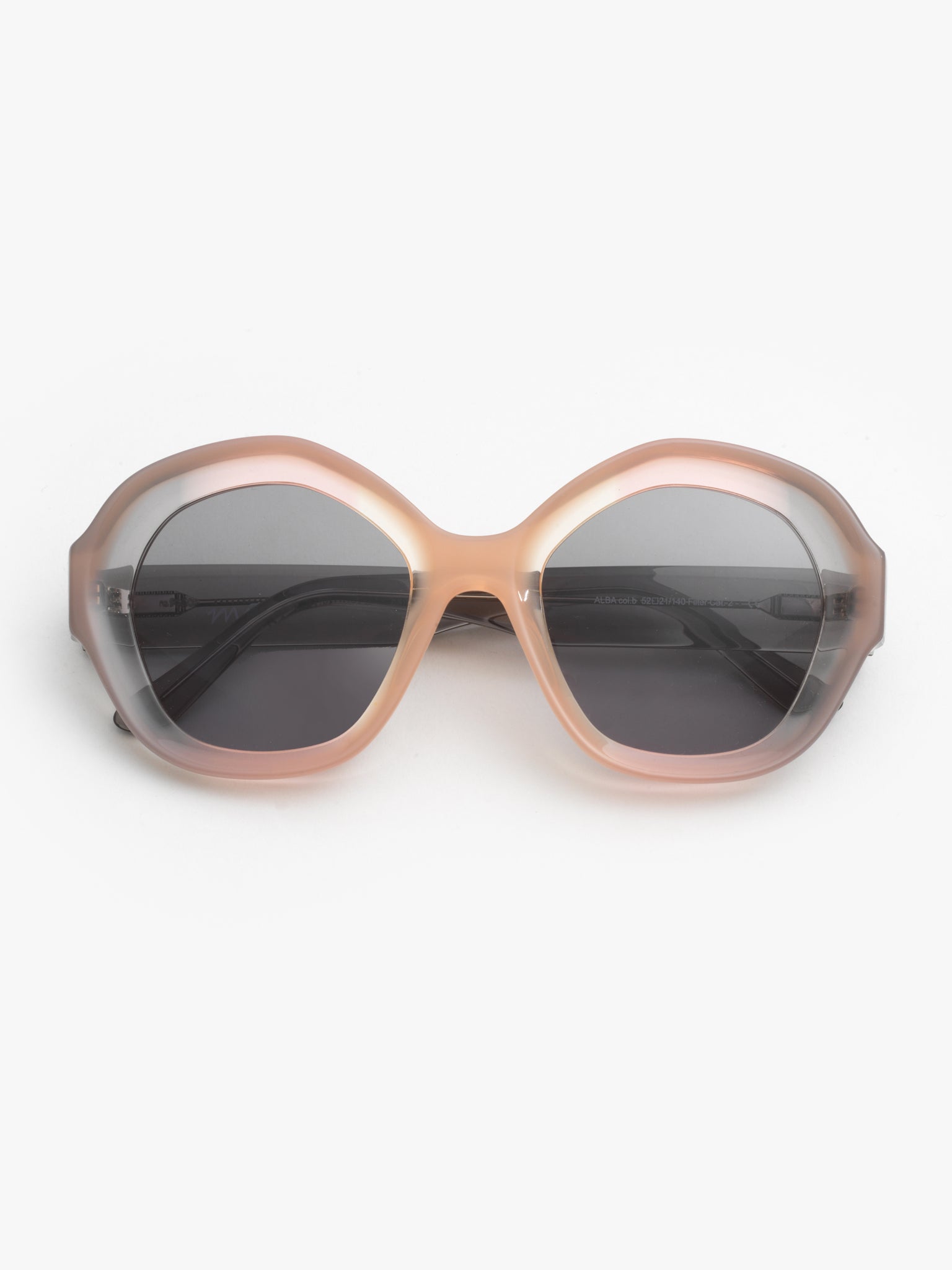 ALBA is feminine, organically shaped and oversized; deliberately placed facets add depth and three-dimensionality to the frames. ALBA contrasts this with a deep facet and a material thickness of 10 mm acetate. This pair glows in summery colours.