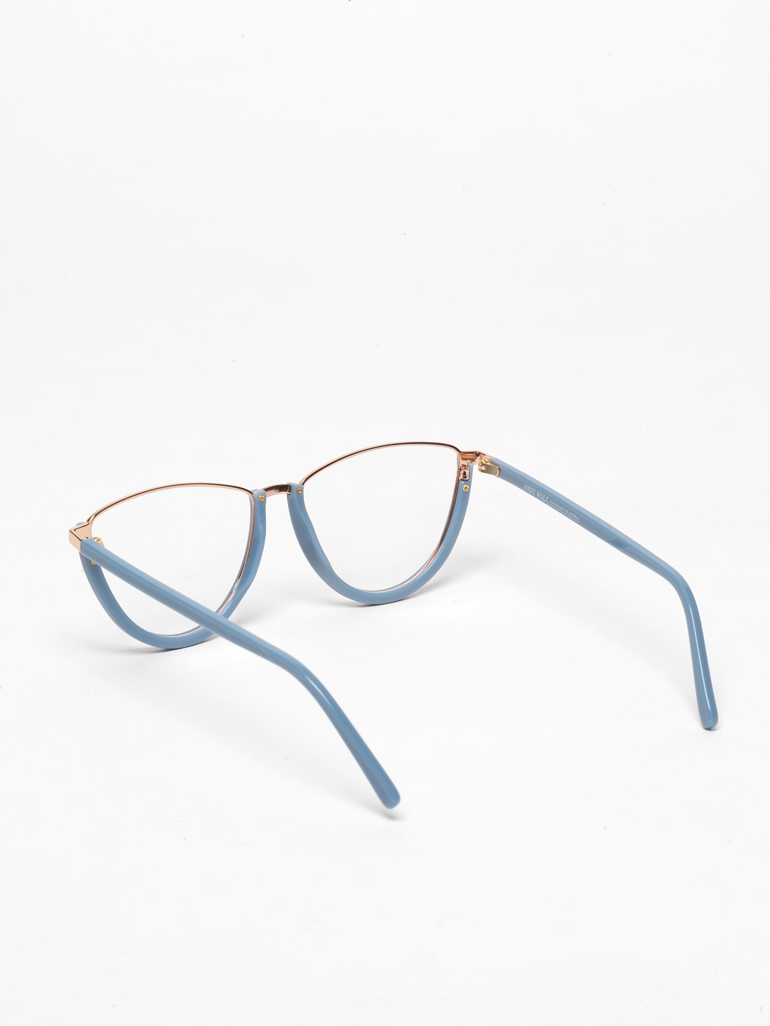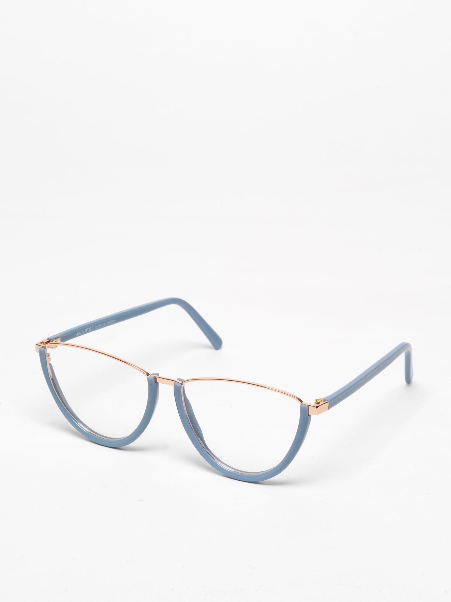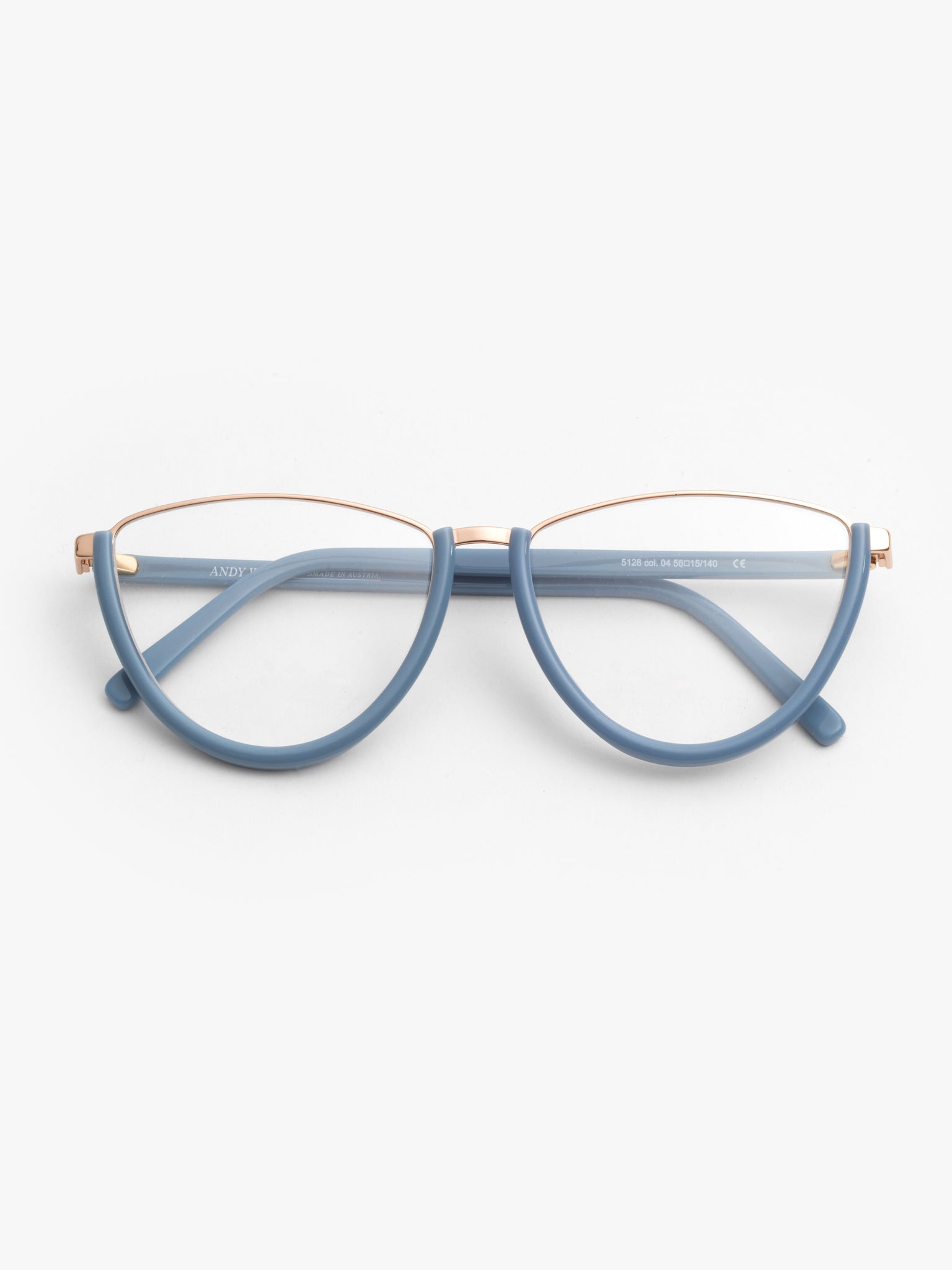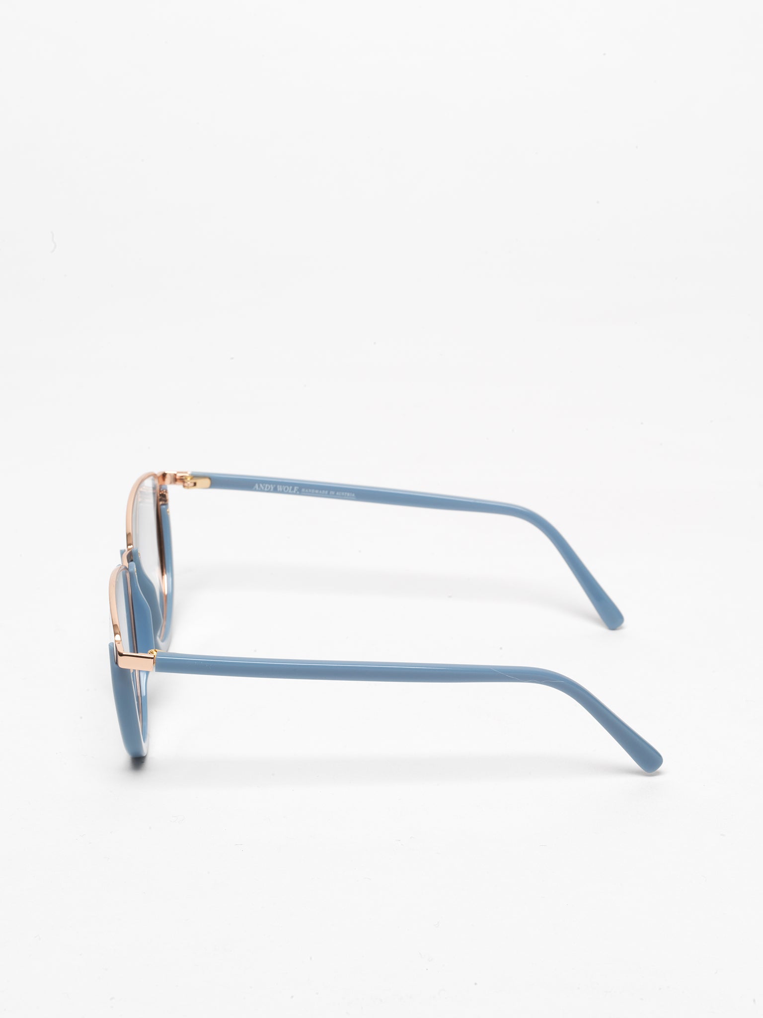 New cat-eye shaped model, which combines a rose gold metal base with pastel-toned acetate.