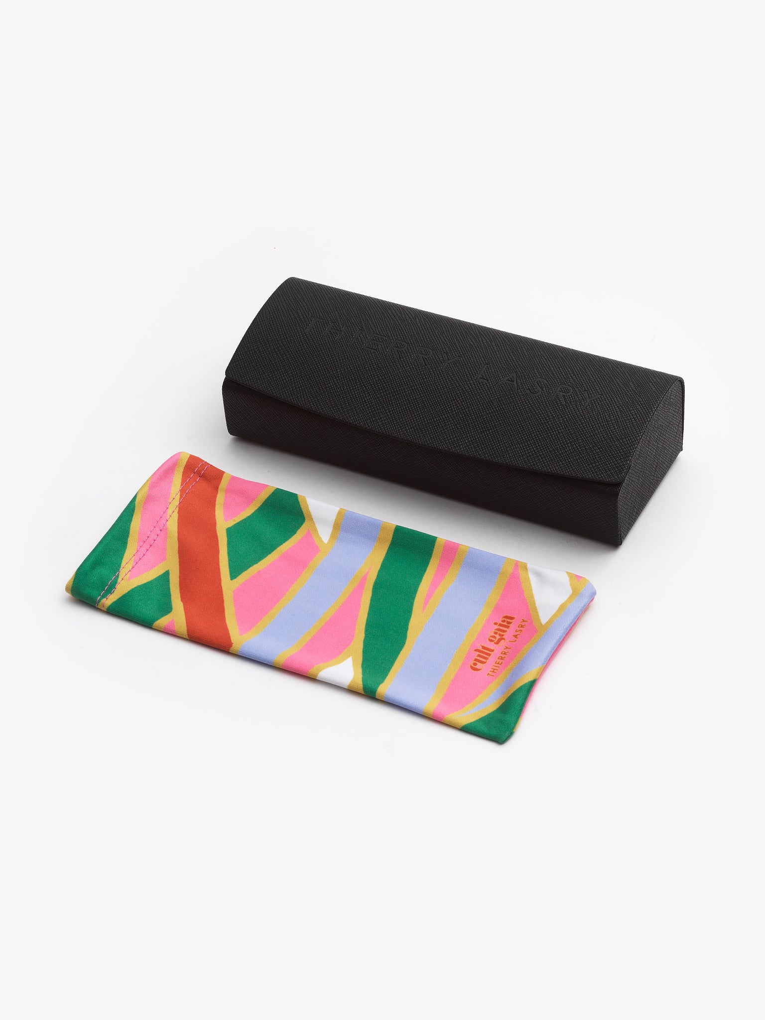 - includes a microfiber pouch, a hardshell case, and a Cult Gaia x Thierry Lasry box