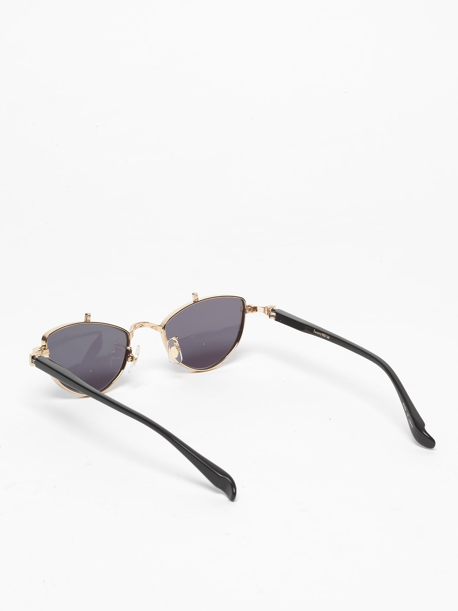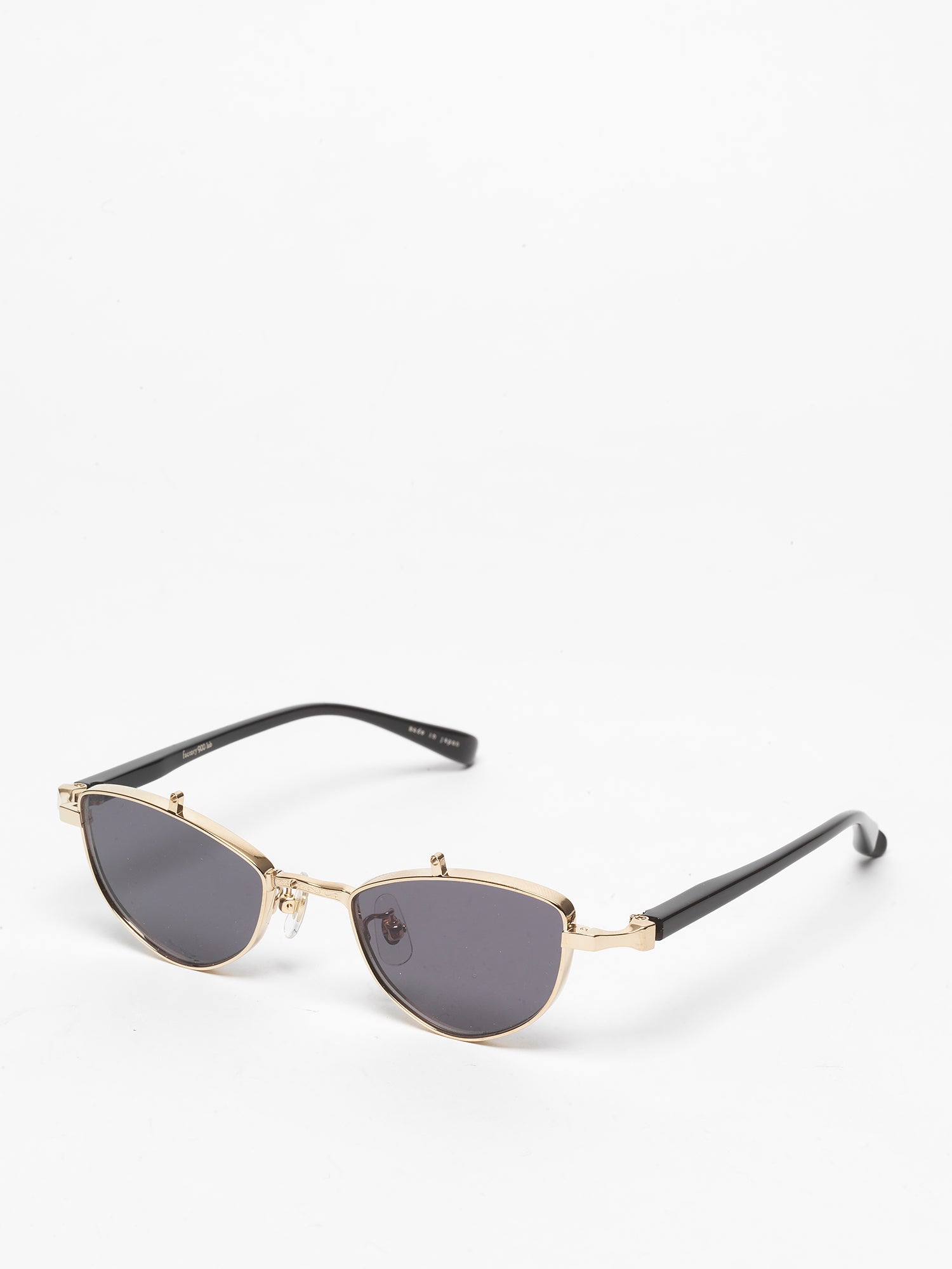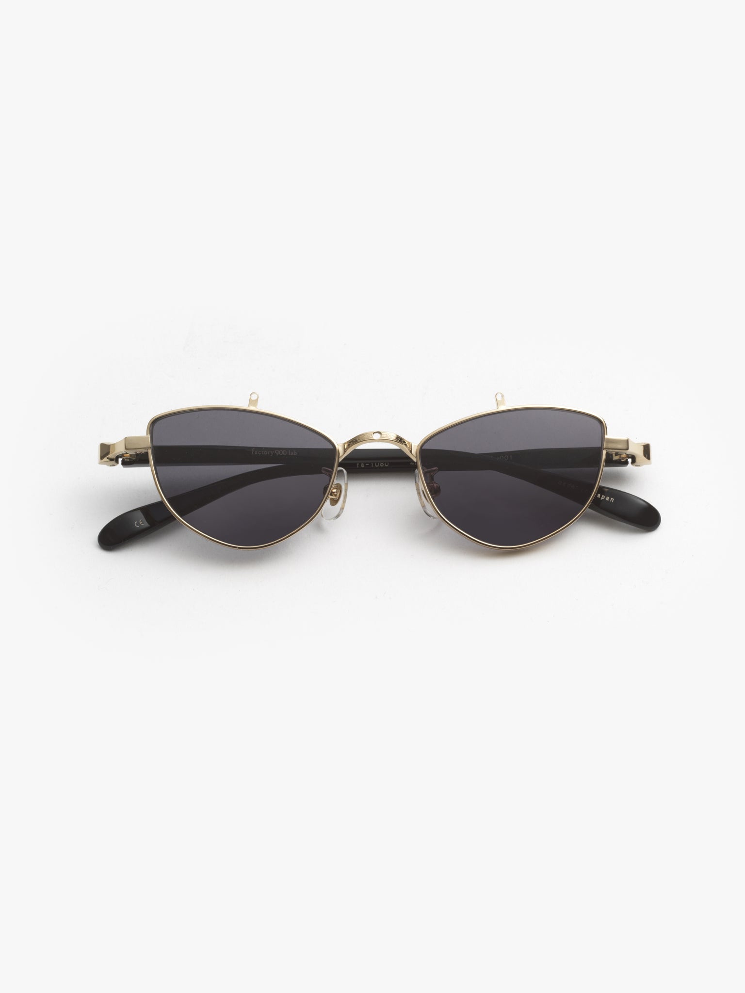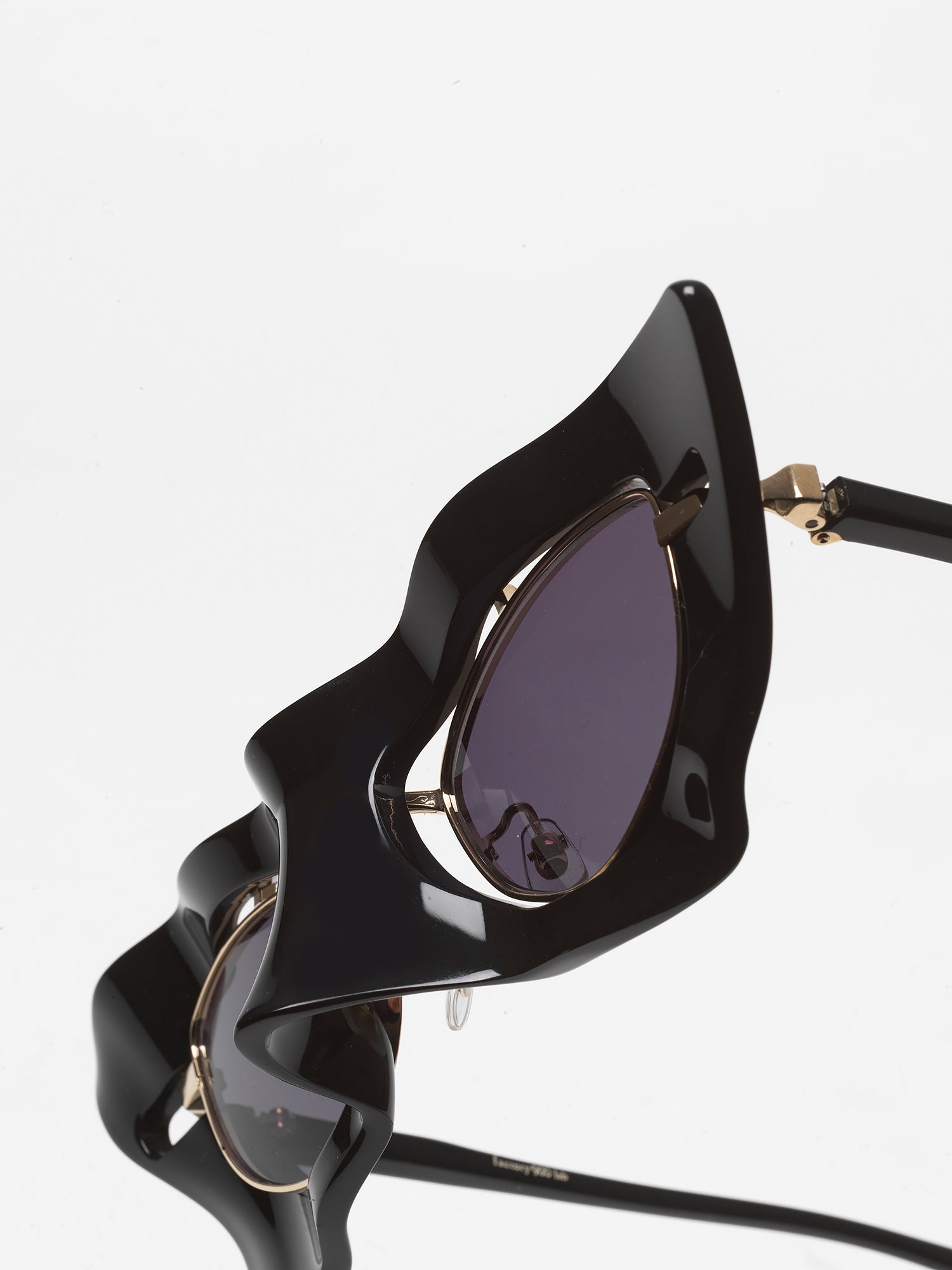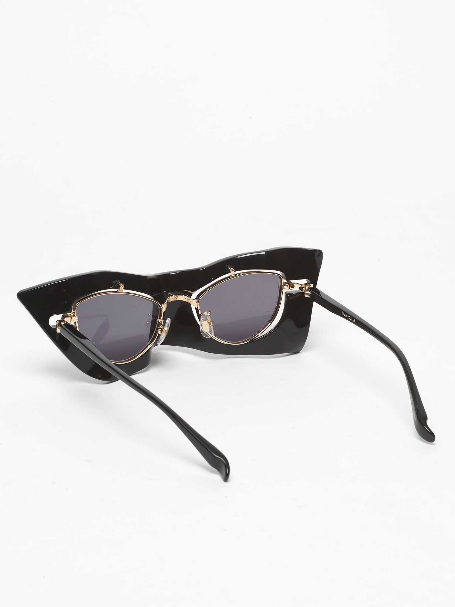 One of a kind: FACTORY 900 sunglasses in black with mask design construction, glossy finish, rimmed lenses paired with dark lenses.