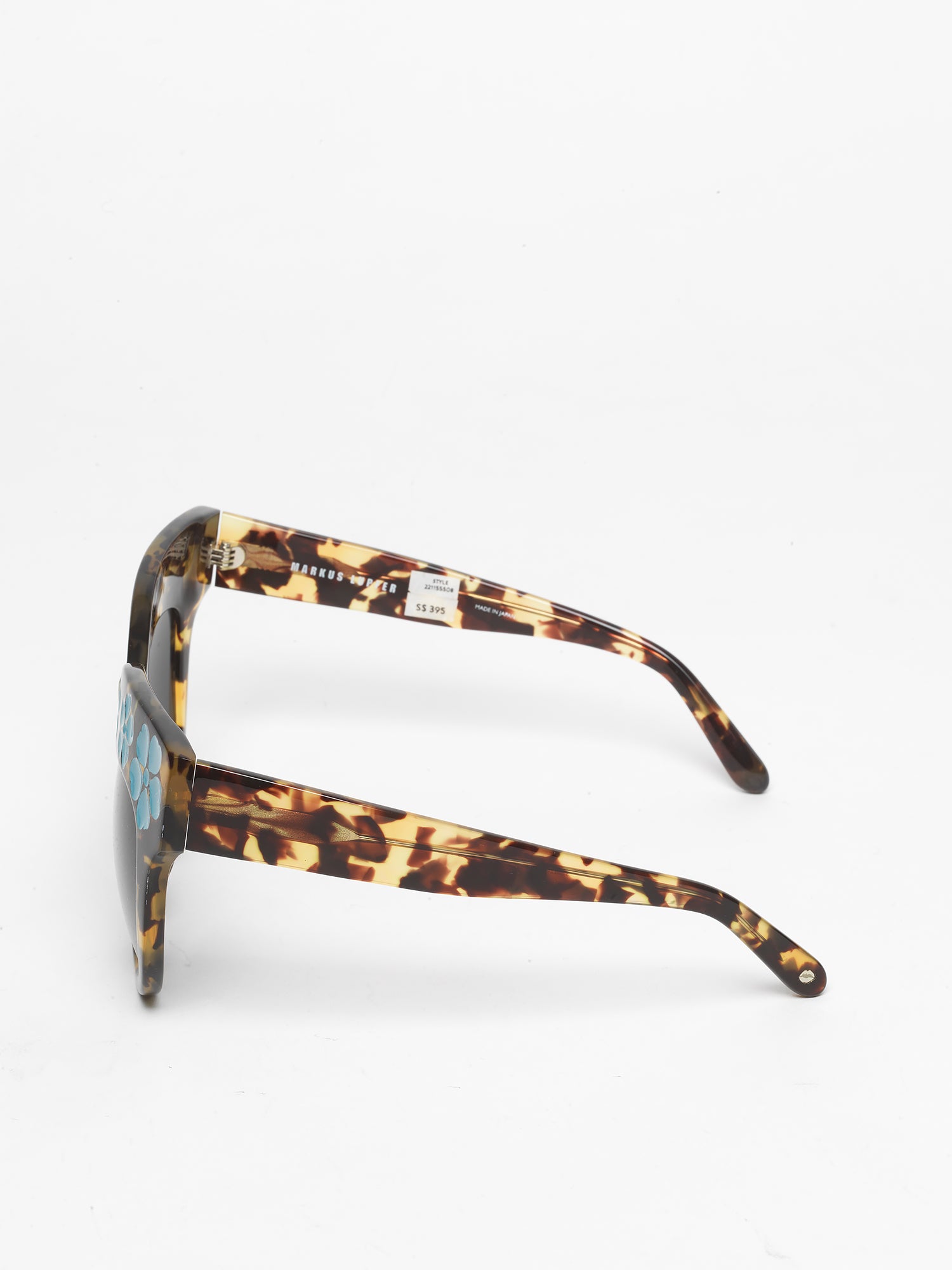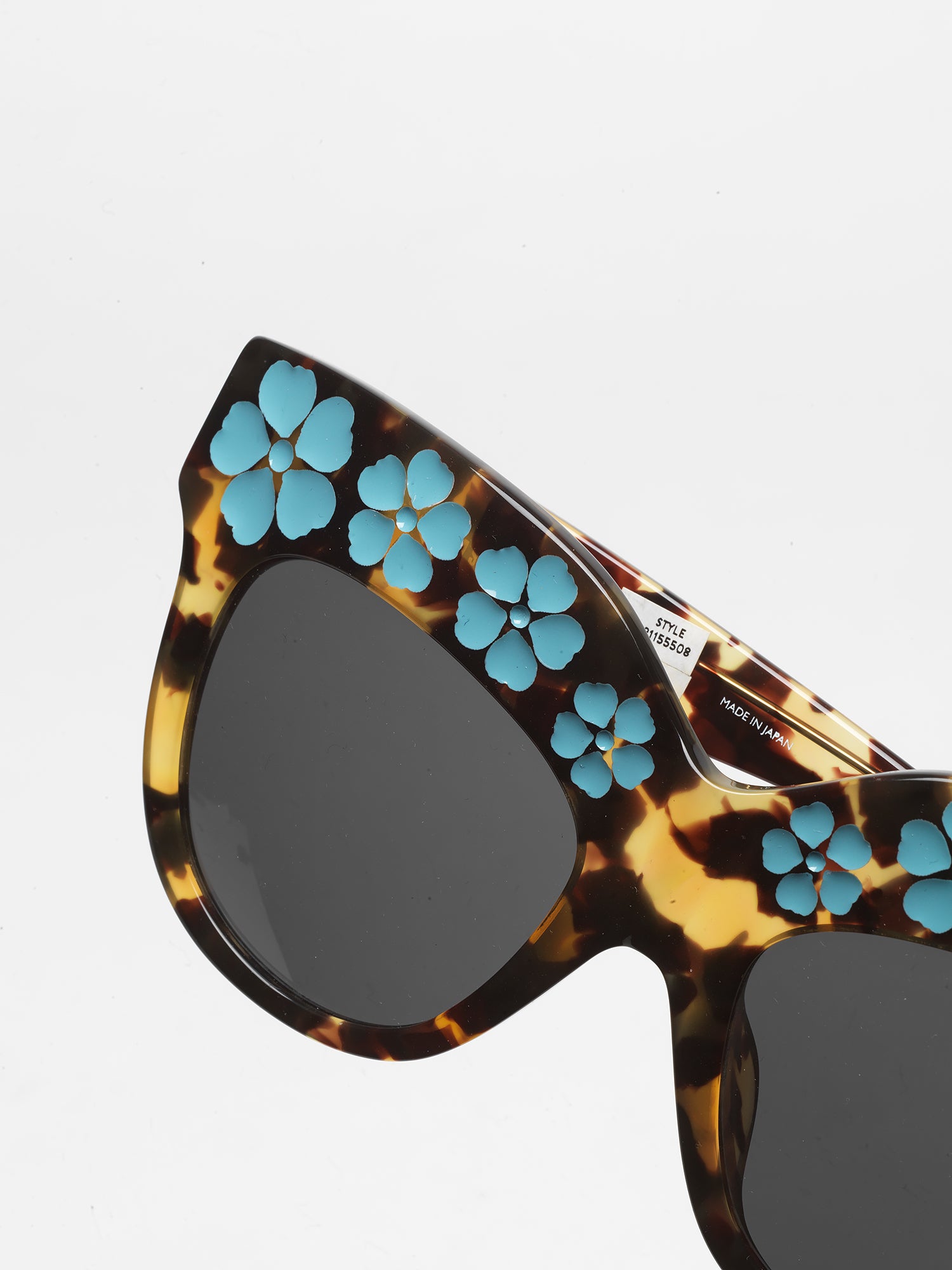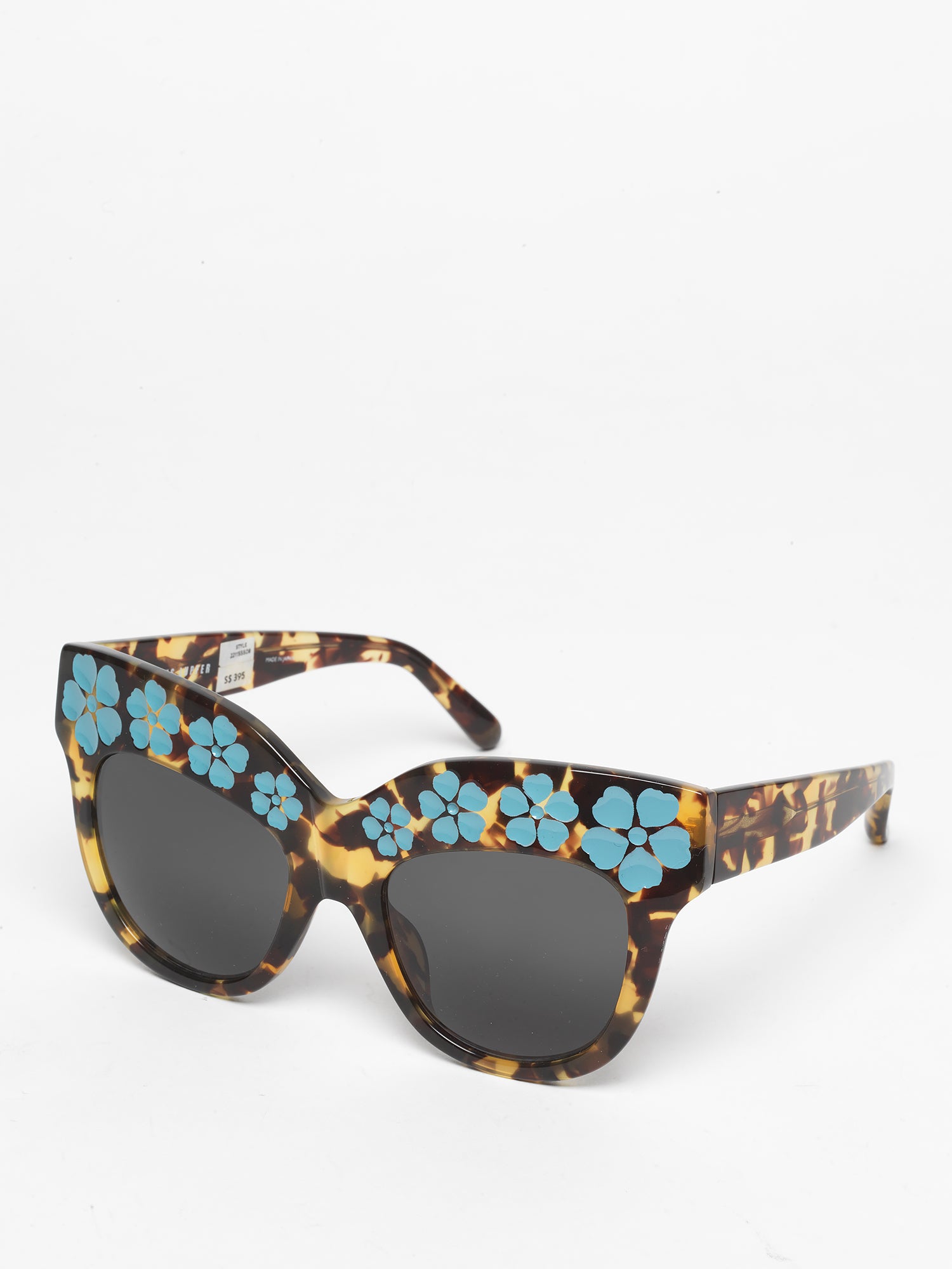 Markus Lupfer x Linda Farrow / Oversize Sunglasses With Daisies / Tortoiseshell and Light Blue