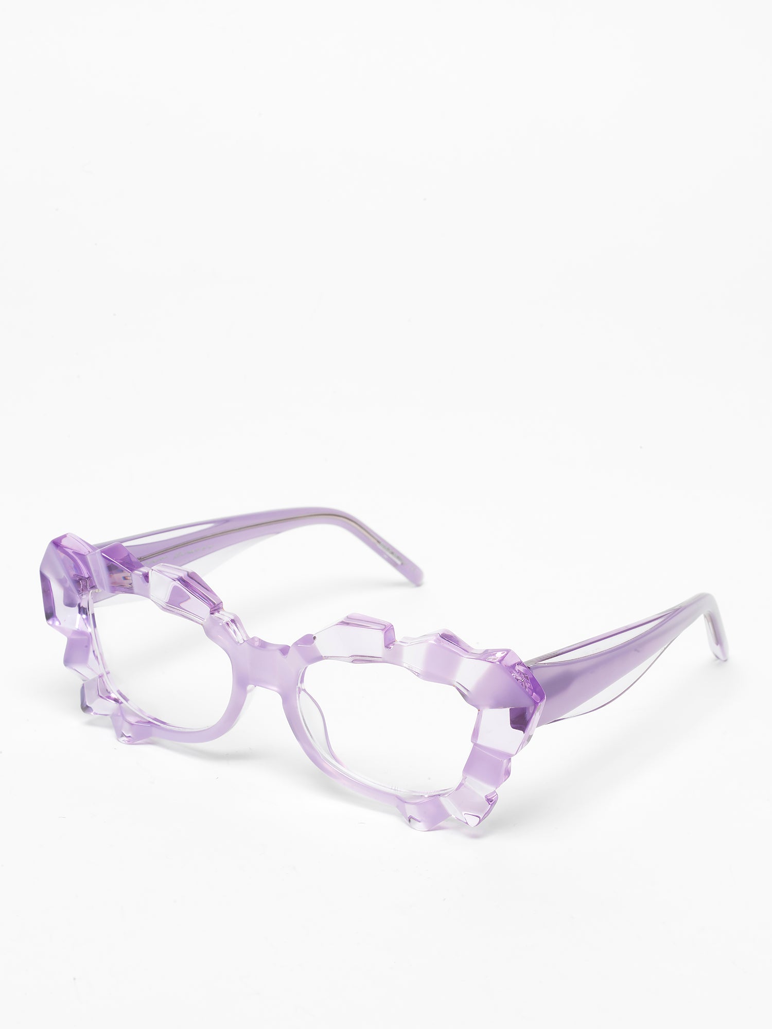 Drawing inspiration from nature, these glasses are manufactured with cutting-edge technologies, including hot pressing. The distinctive and gentle cat-eye silhouette, with its asymmetrical form, mirrors the unpredictability of icebergs and the surface of frozen water, artfully reflecting the relationship between humans and nature, and between nature and art.