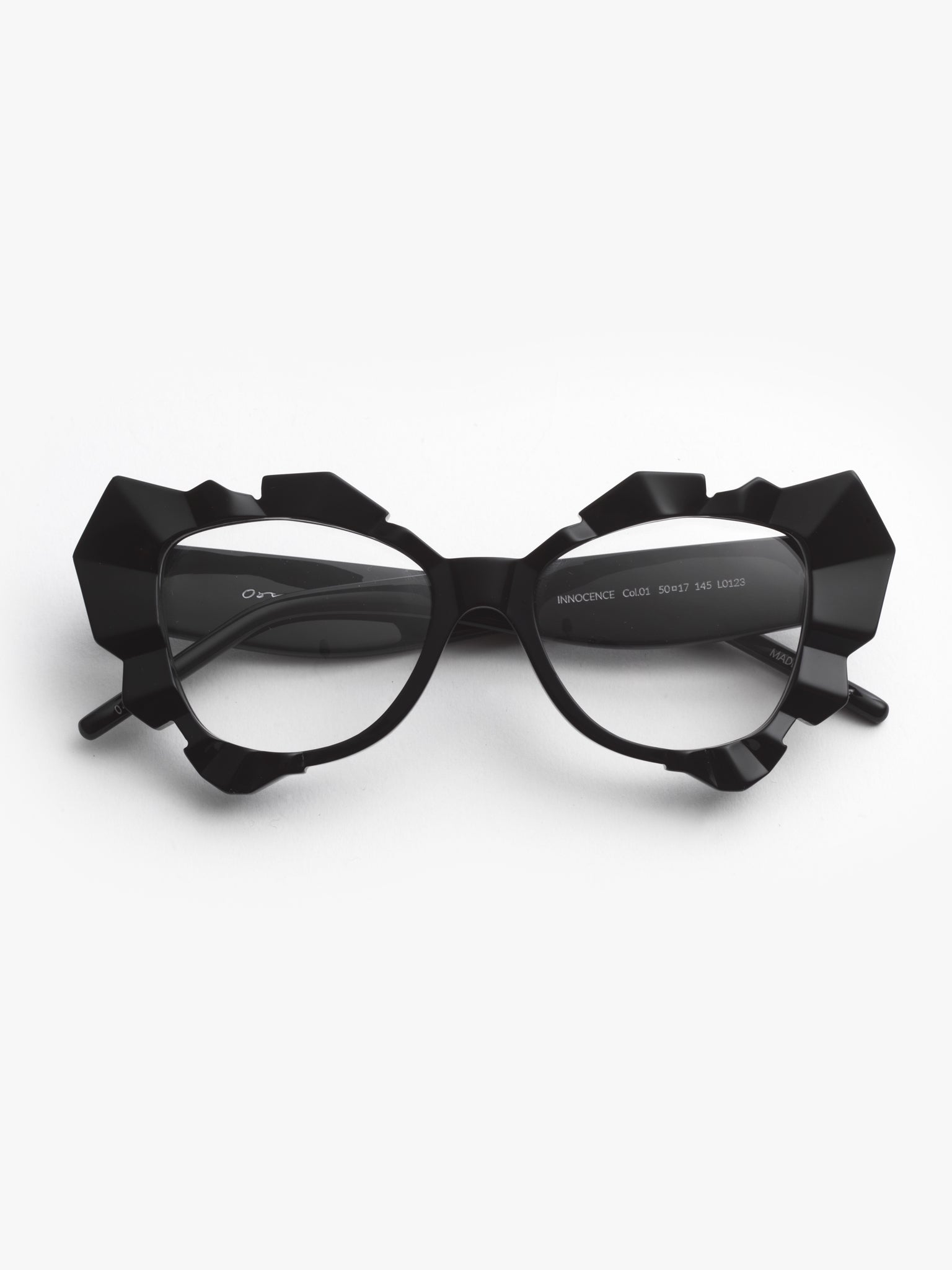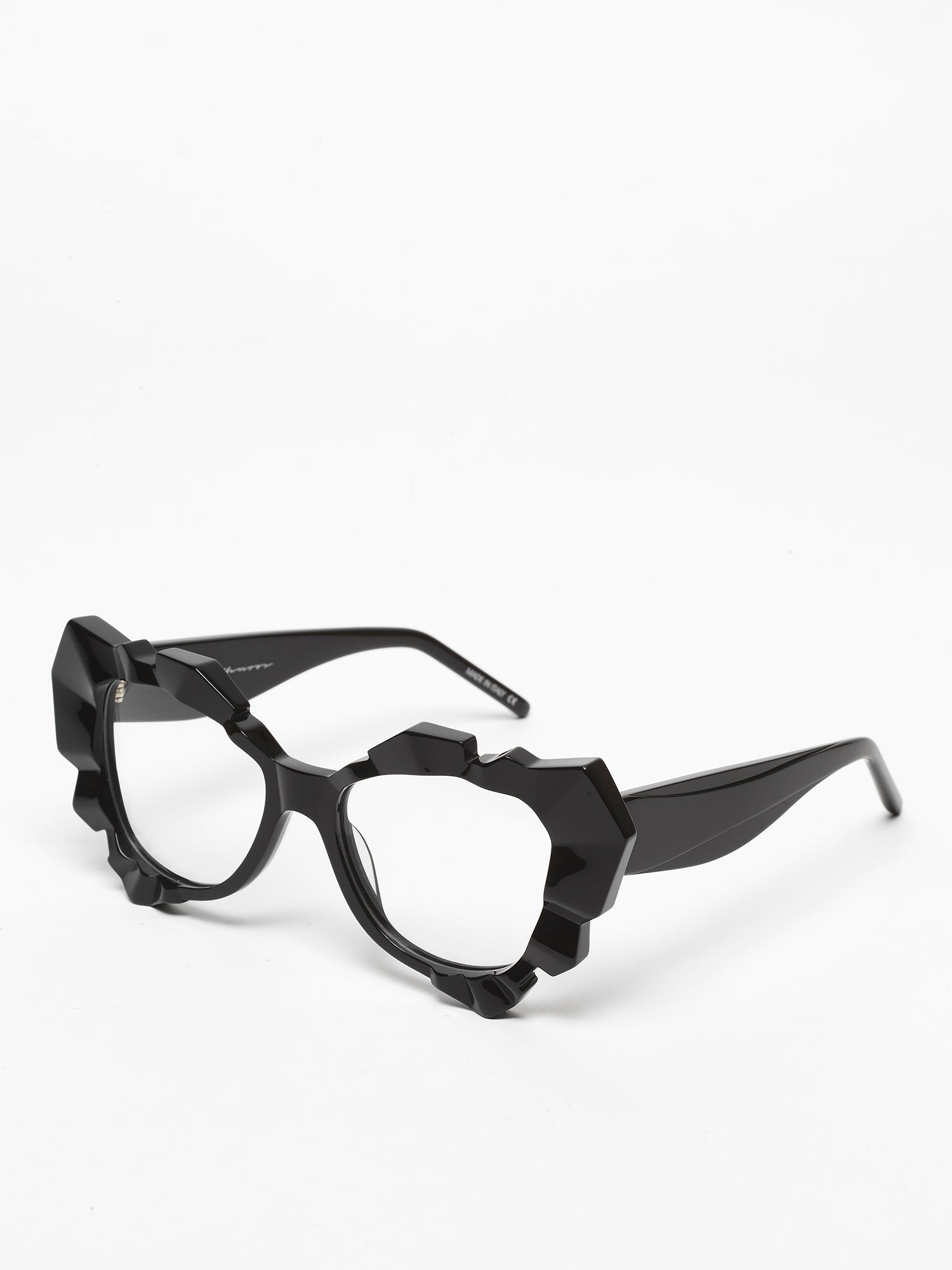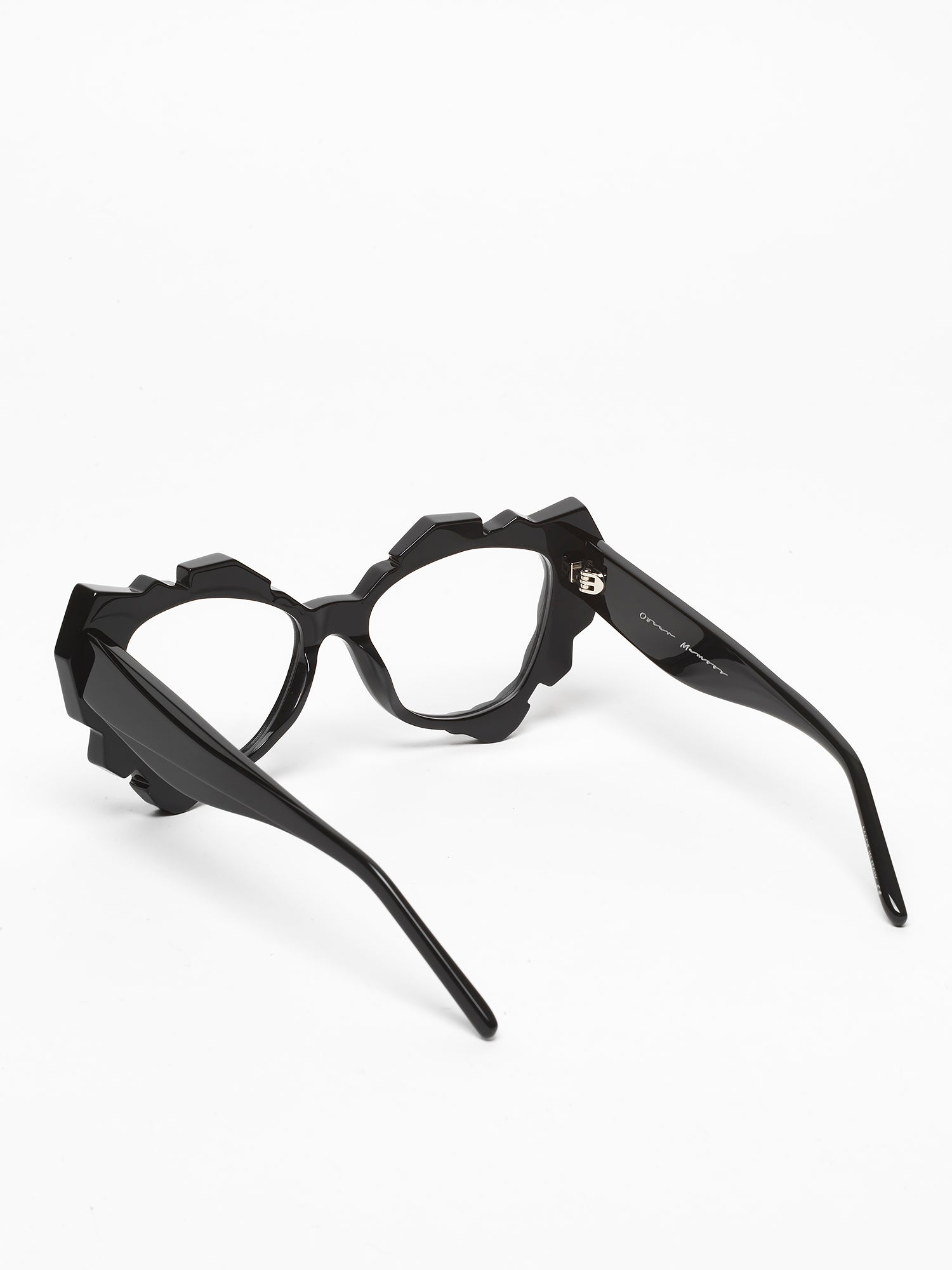 Starting with nature as the muse, these glasses are created using sophisticated technologies like hot pressing. Oversize, and one-of-a-kind cat-eye frame, with irregular contours, reflecting the unpredictability of icebergs and the surface of icy waters, elegantly interpreting the interplay between man and nature, and nature and art.
