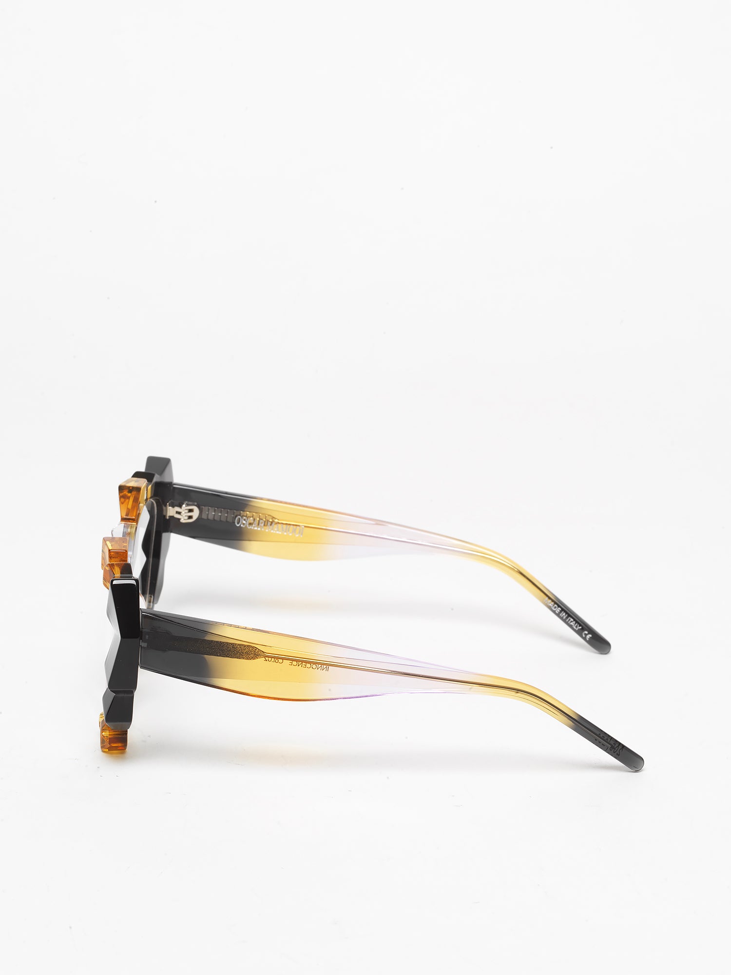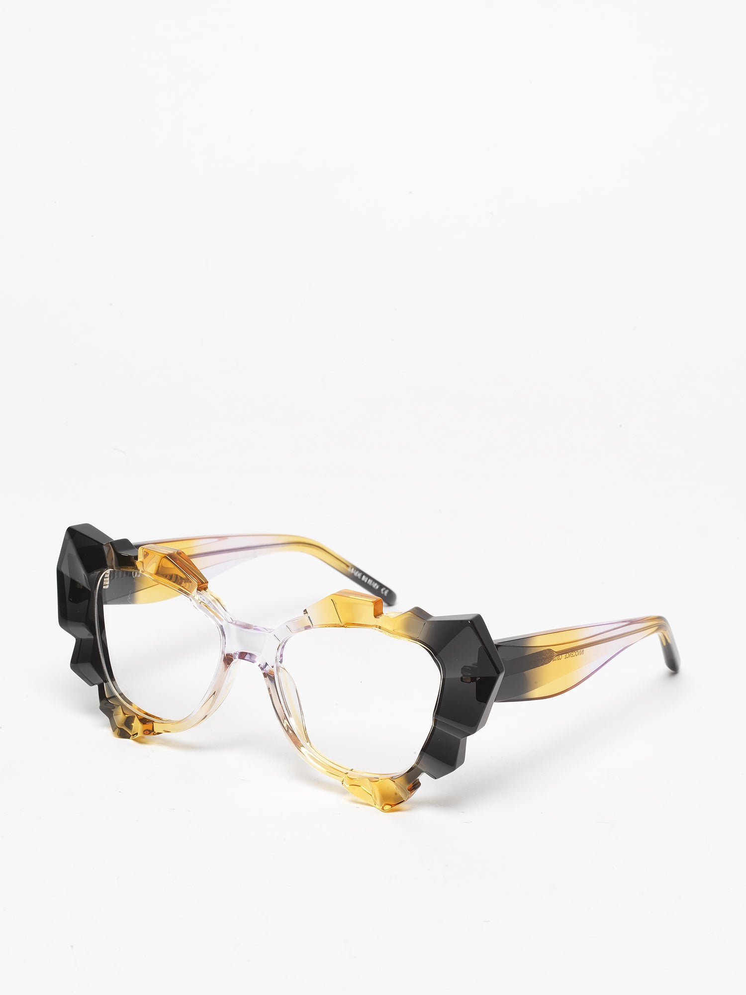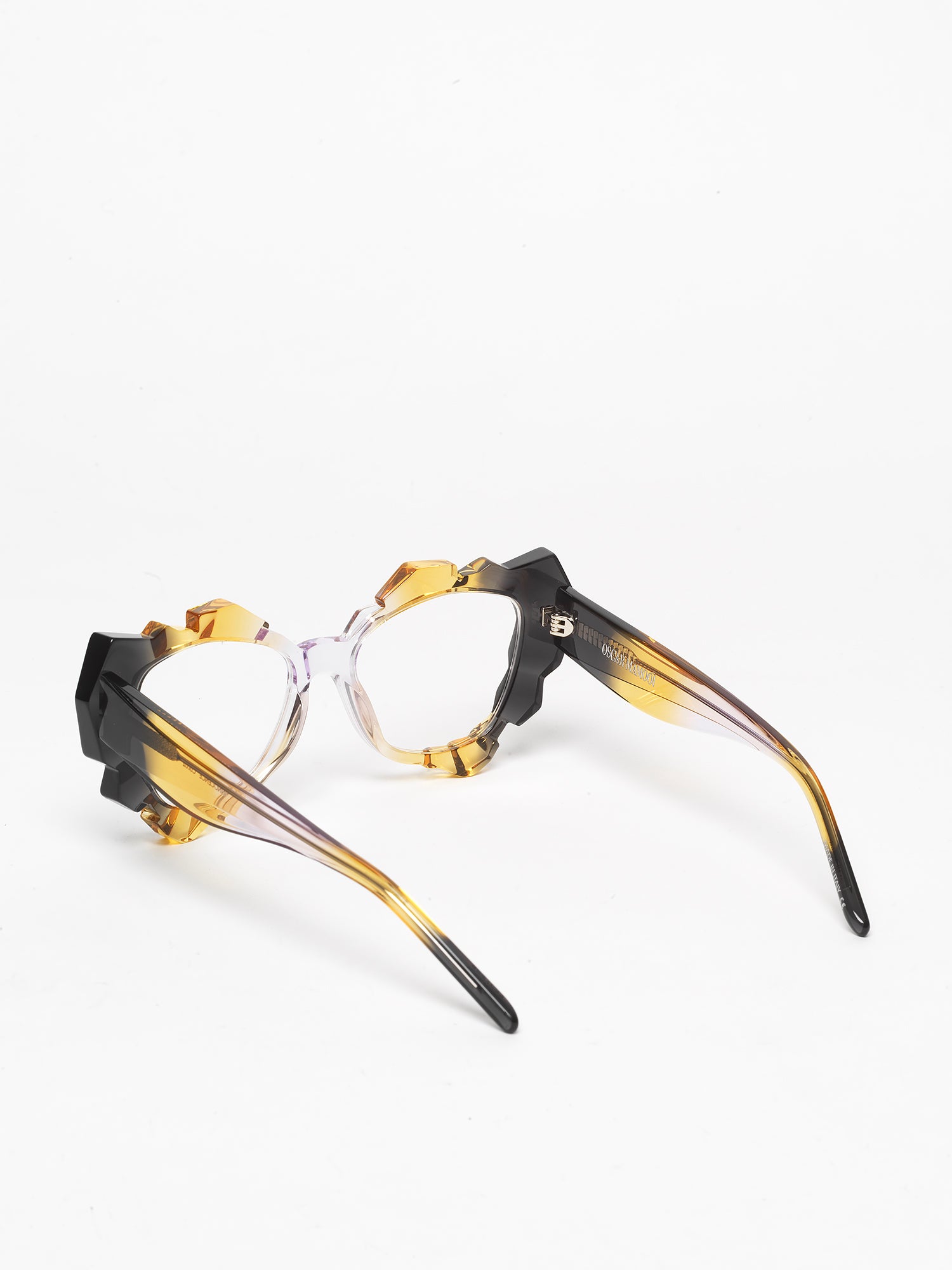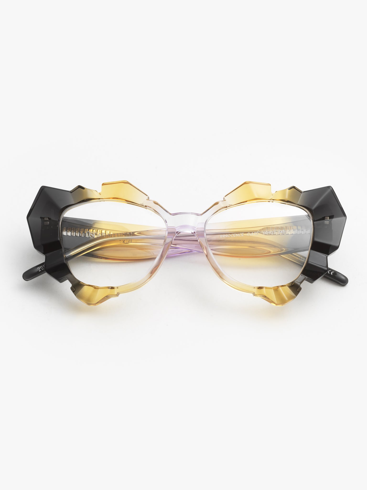 - gradient smoke and yellow acetate frame with crystal pink detailing