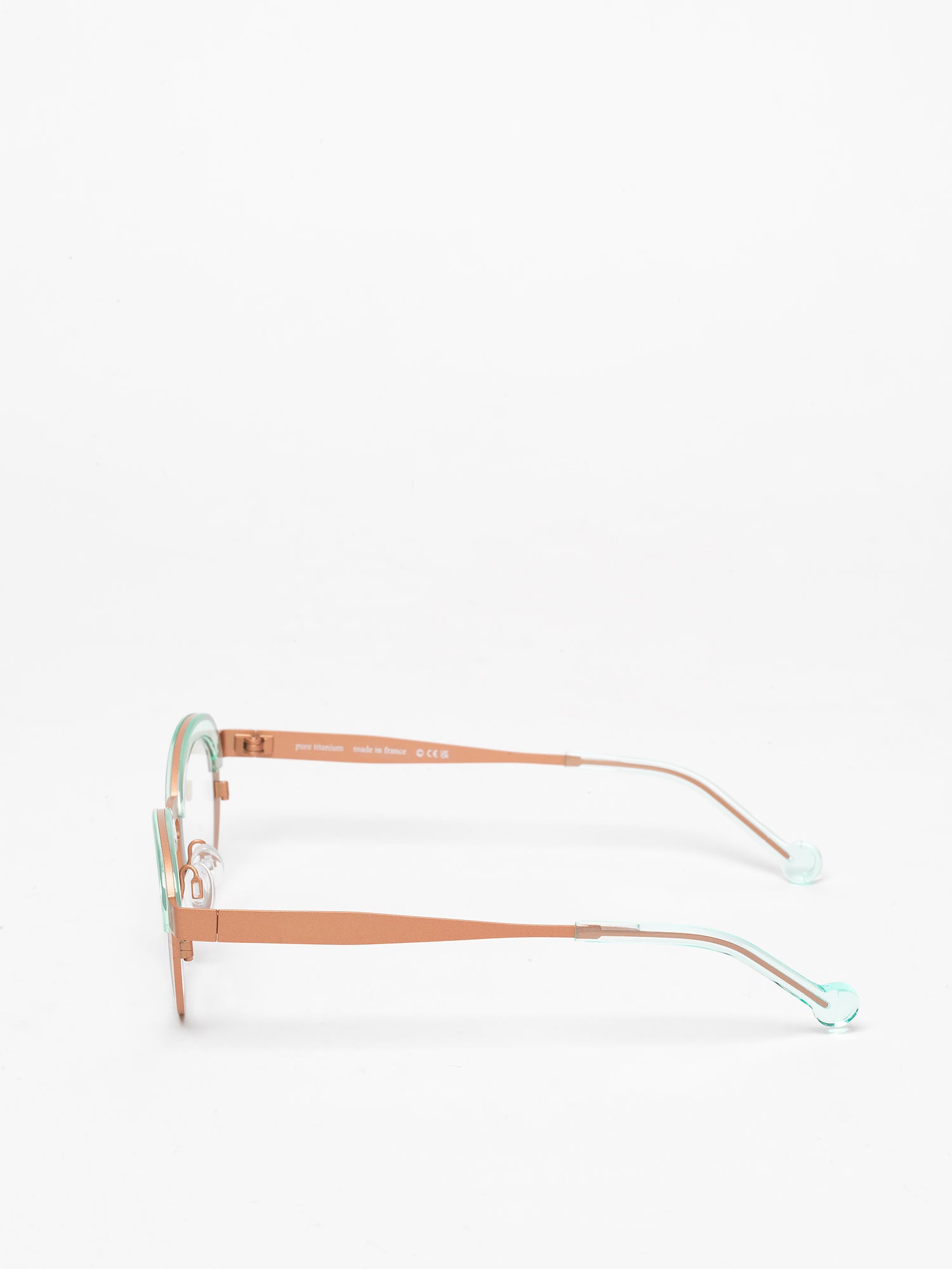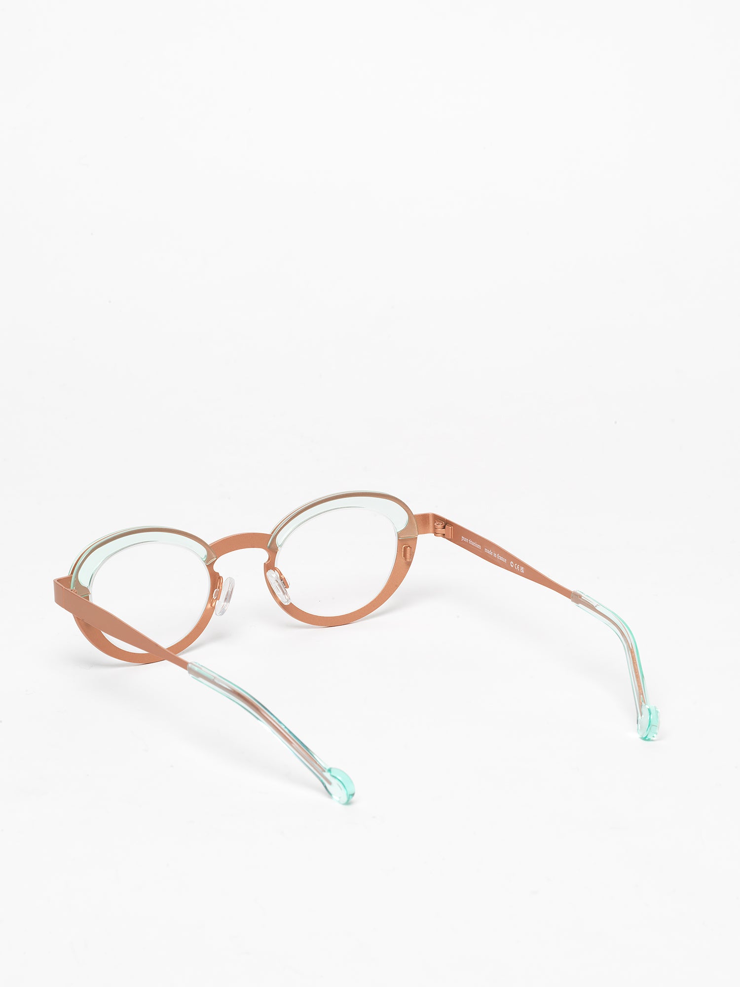 The Burner model showcases a slightly cat-eye design with straight front frame, made from titanium with acetate finishes