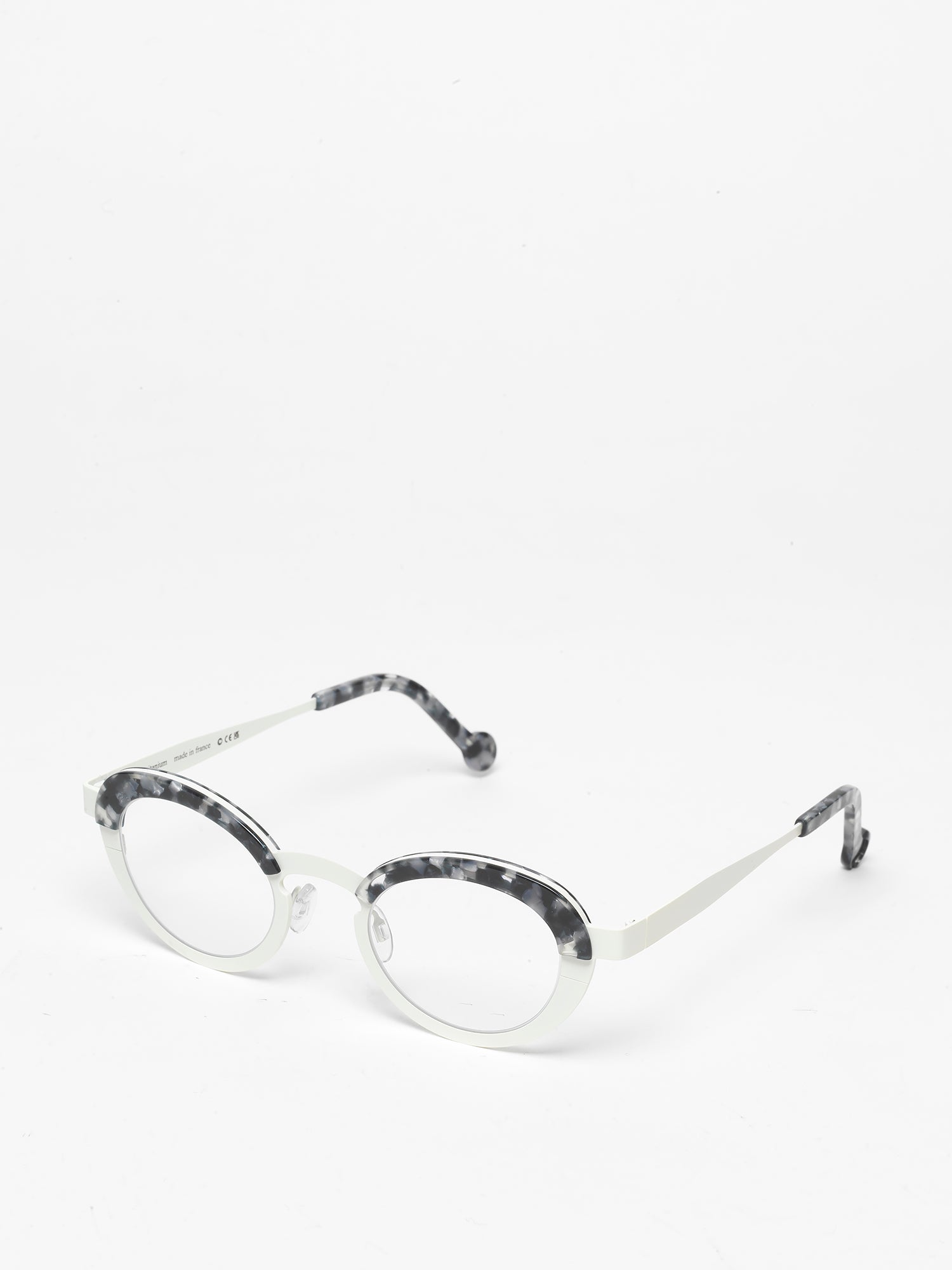 The Burner model showcases a slightly cat-eye design with straight front frame, made from titanium with acetate finishes