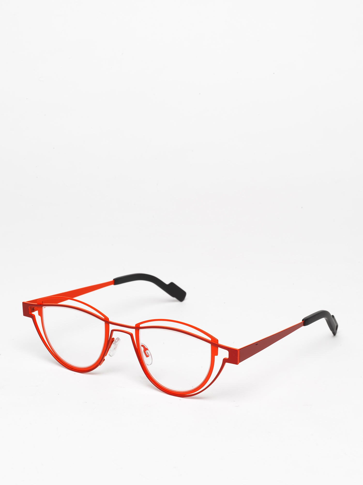 ‘No glasses without glass’. For his latest line ‘Outlines’, James is taking the radical and revolutionary step of starting with the shape of the lens, allowing it to determine the further design of the glasses. He extends the existing vocabulary of the lenses and allows them to continue into the frame. In a natural way, the frame is then shaped and moulded around it as an outline, as a shadow image around the essence - the glass; thus creating an original tension between the frame and the shadow image.