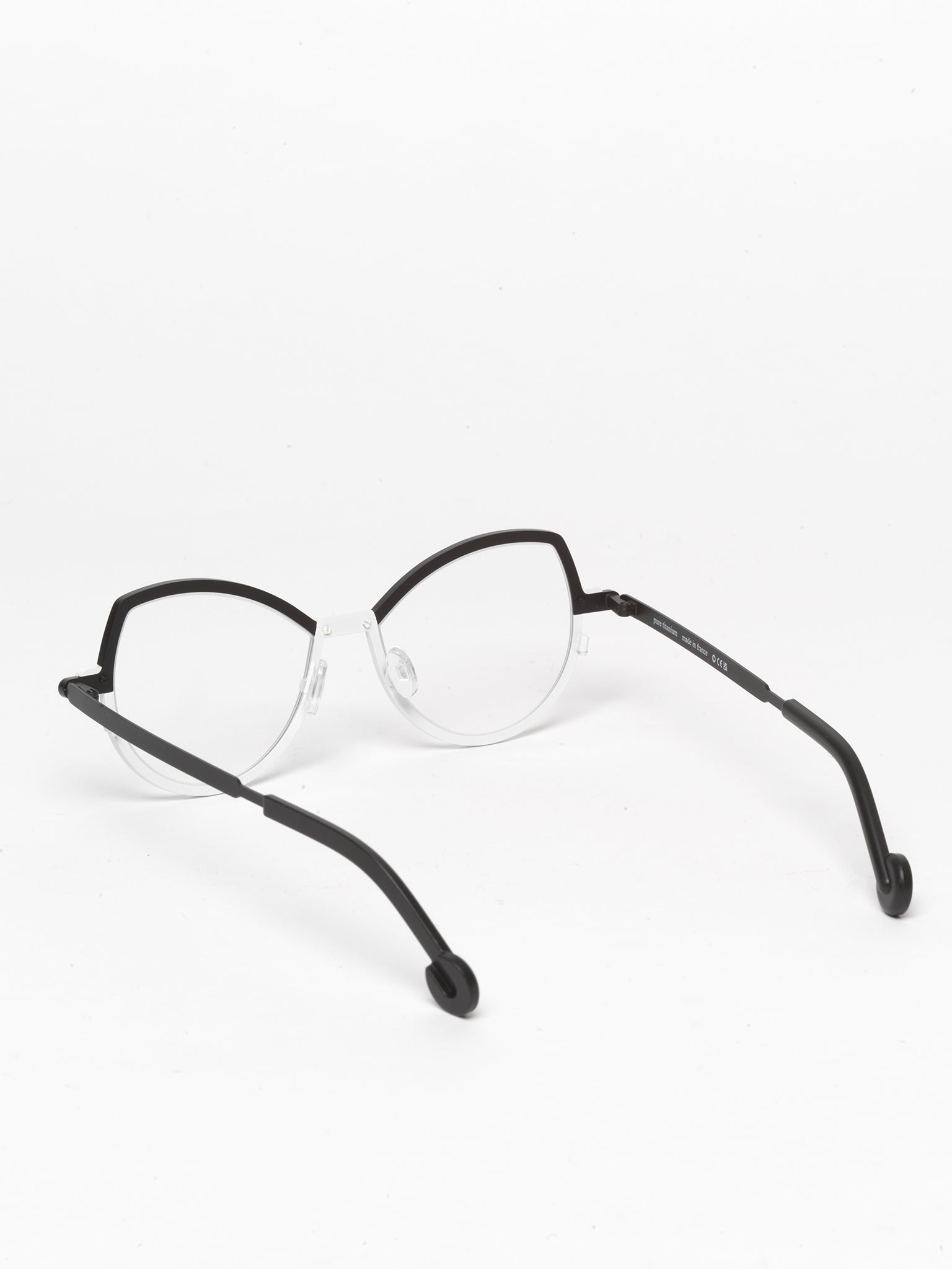 A classic blend of black and white in an avant-garde, softly defined cat-eye silhouette.