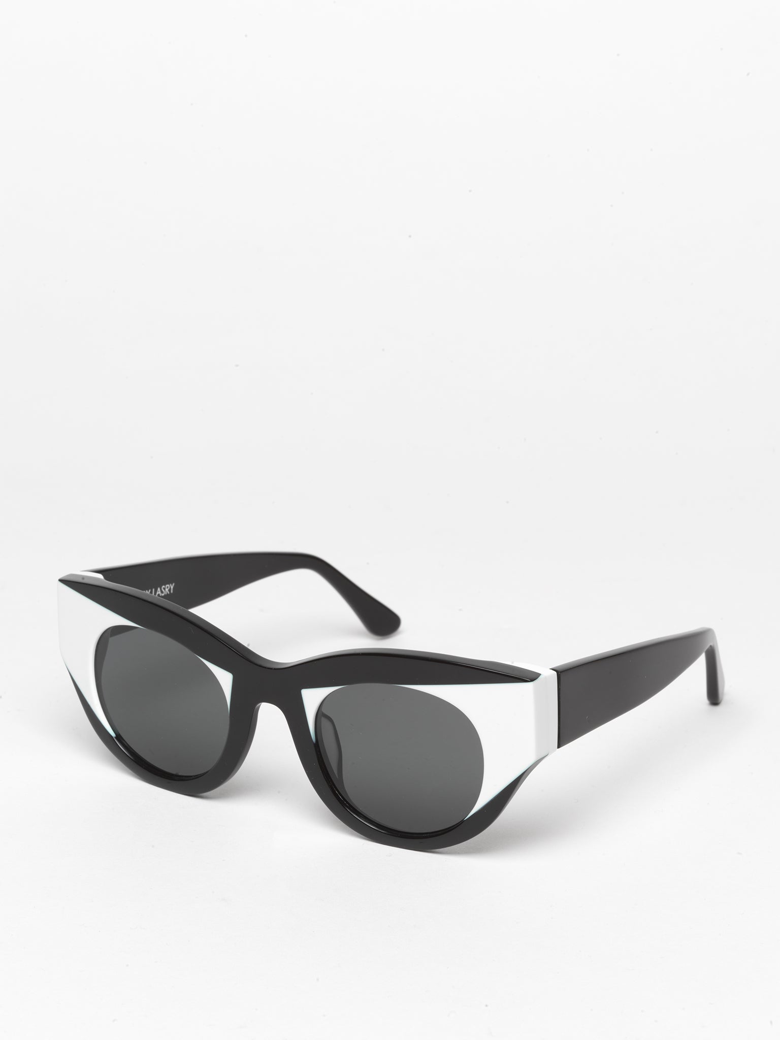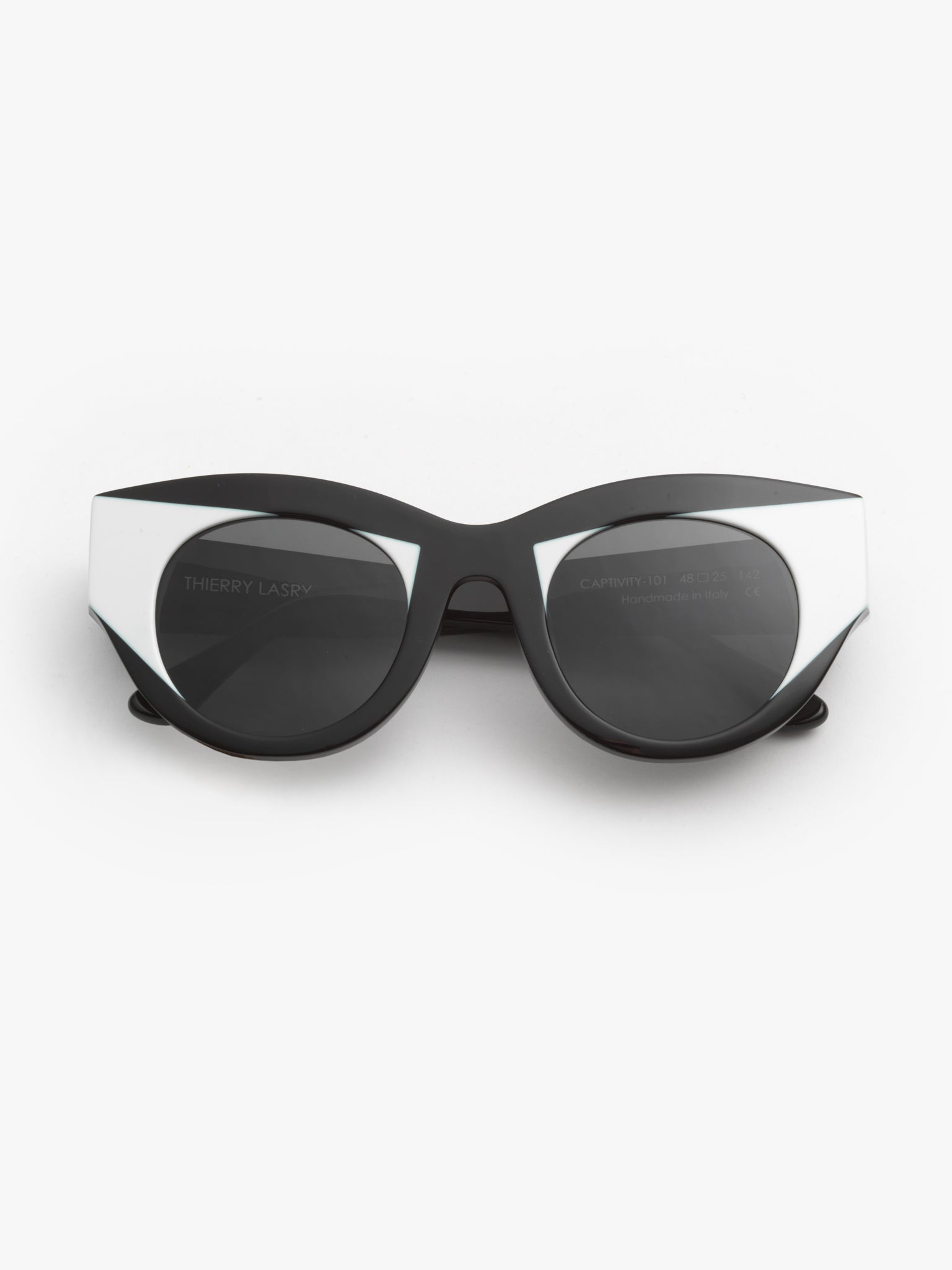 Handcrafted in France from authentic Italian acetate, "CAPTIVITY" is a bold cat eye frame combining with two different acetate colors for a futuristic and statement look.