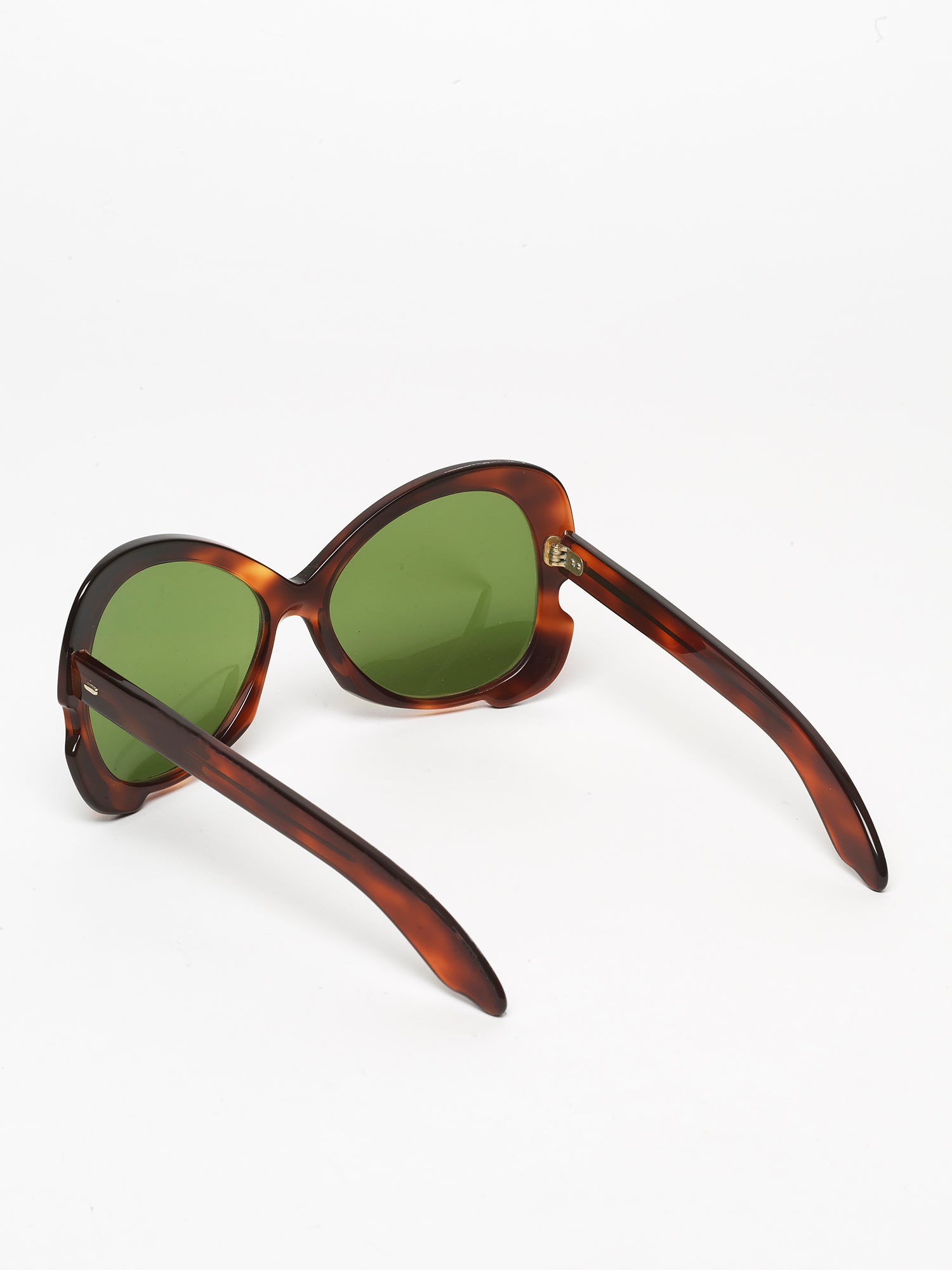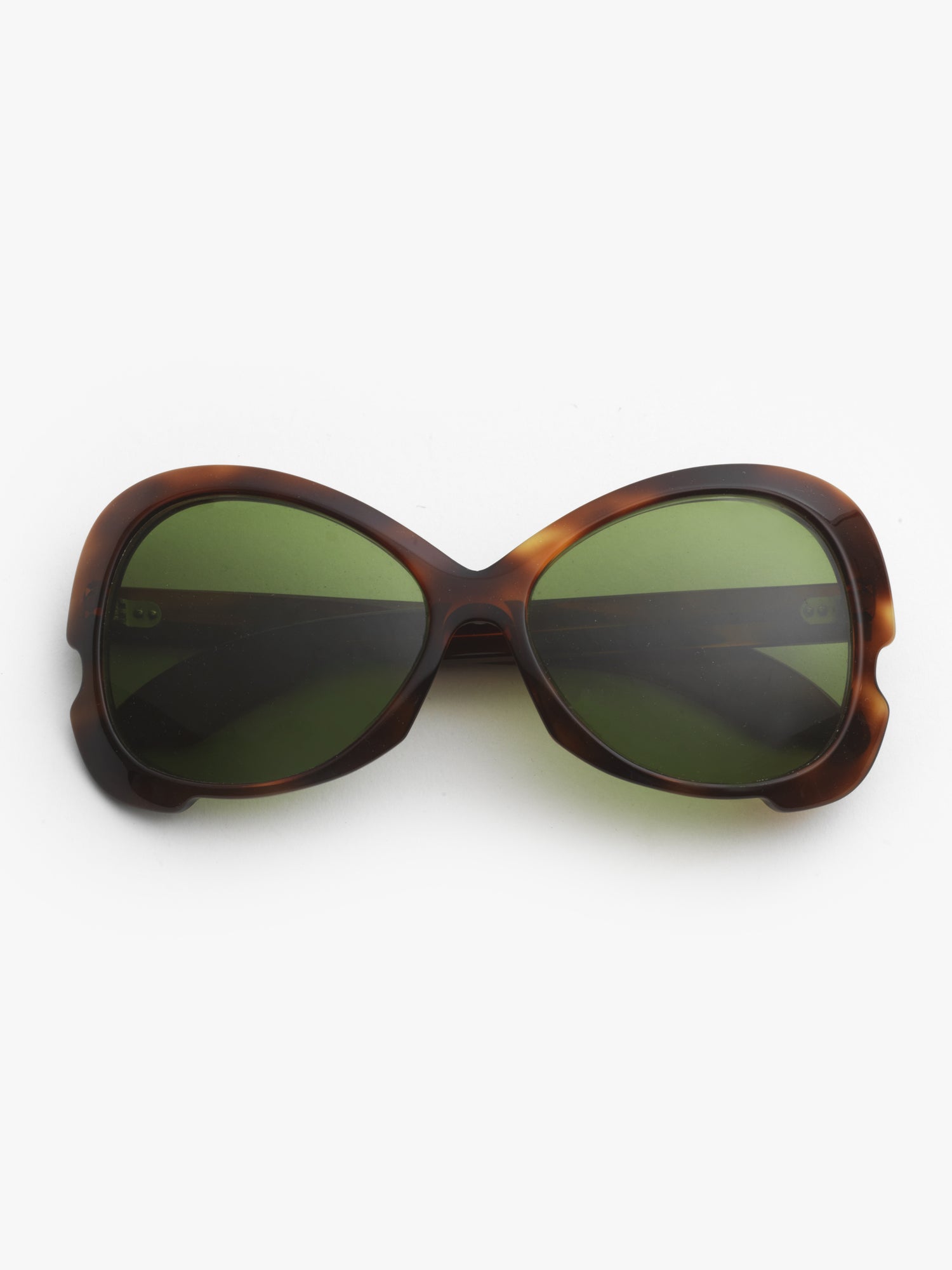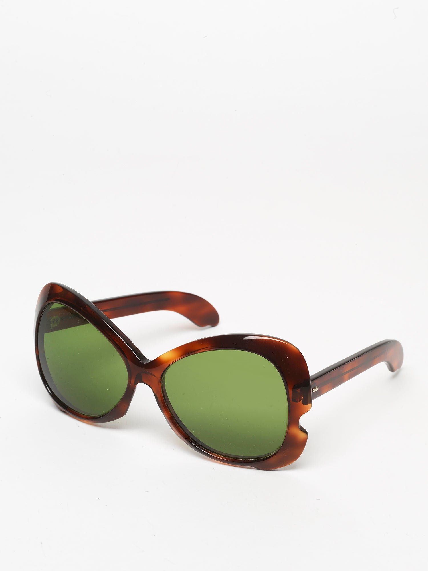 Beautiful glasses made of high-quality acetate, deliberately exaggerated in size, with an accentuated and slightly wraparound cat-eye design.