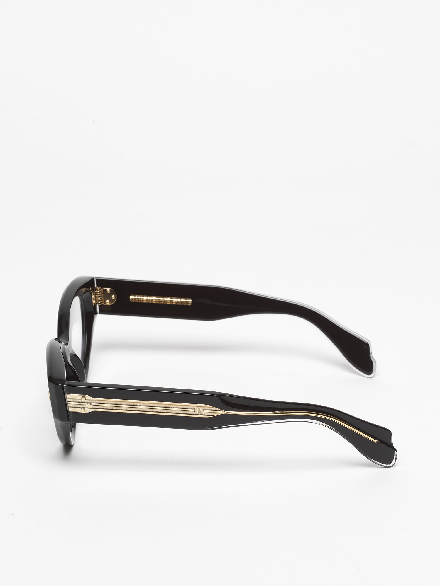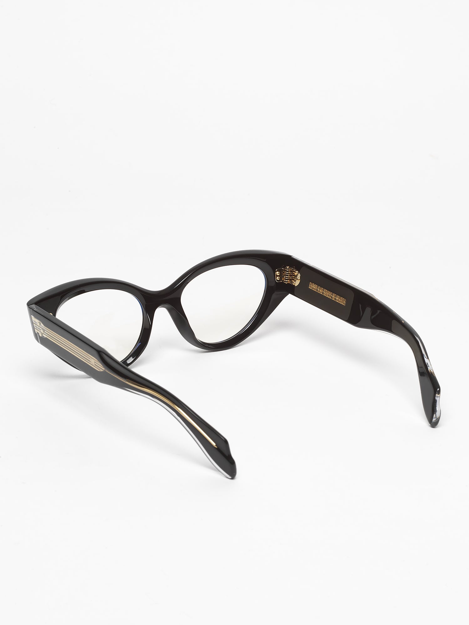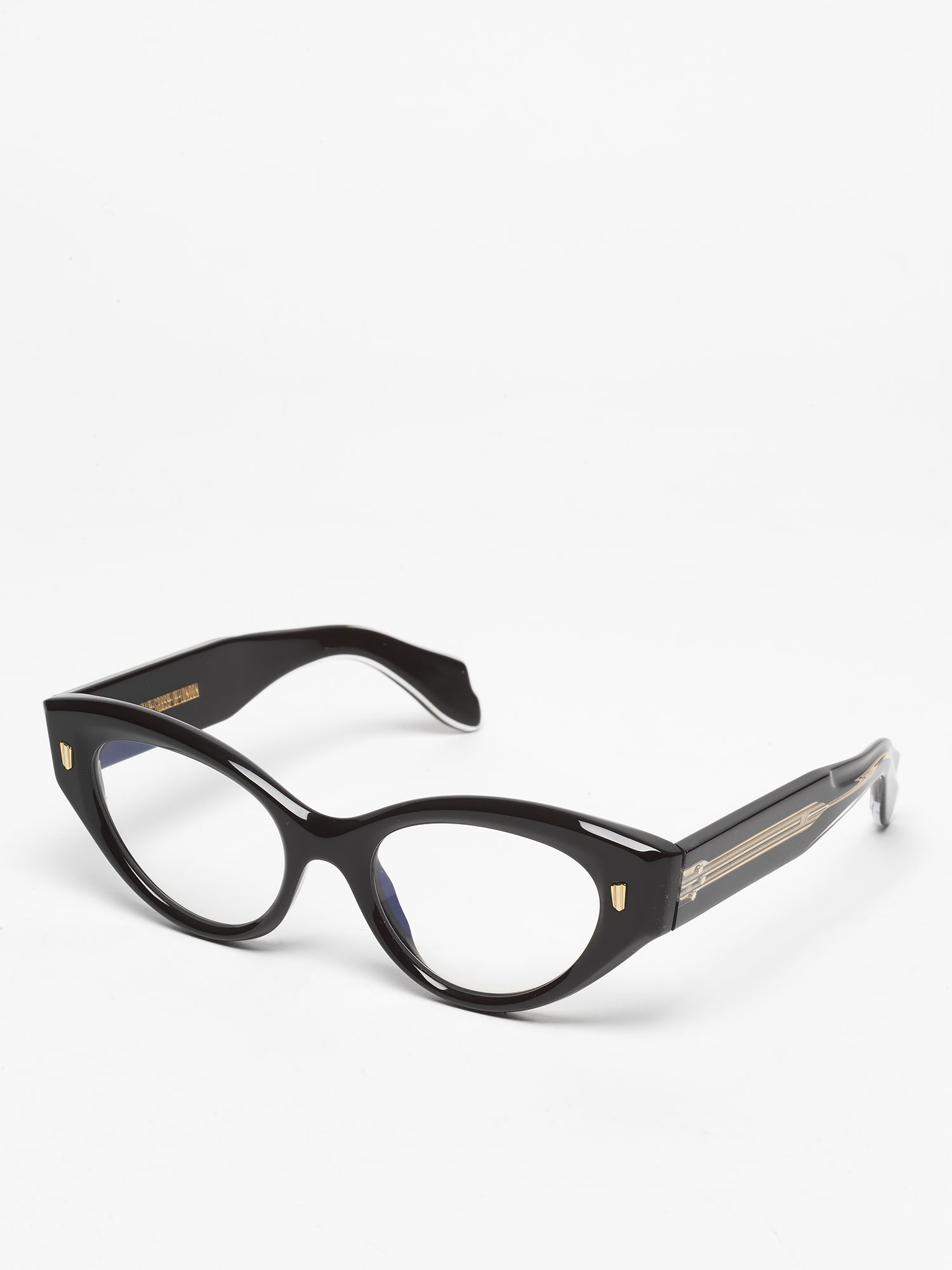The cat-eye has been a Cutler and Gross centrepiece since the 70s, and this frame continues the evolution. It is shaped to a butterfly silhouette that balances a slim nose bridge with chunky temples, and detailed with Oyster and Compass Star pins.