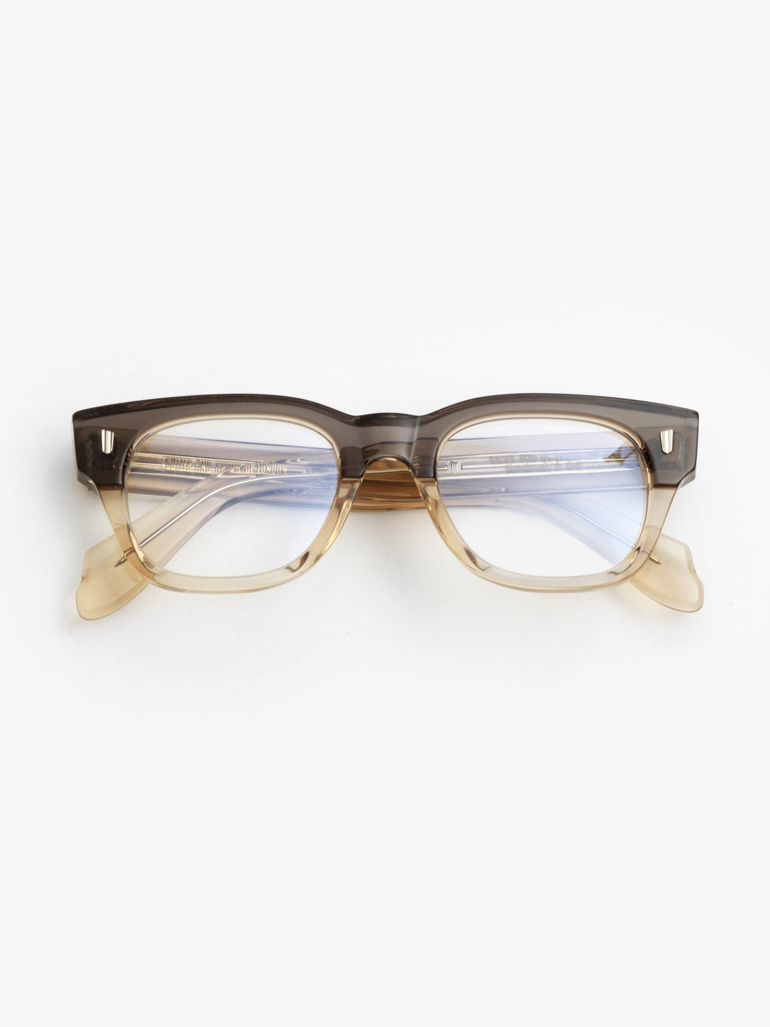 The 1421 is handcrafted to an elegant trapezoid silhouette that draws from old world English Wellington opticals. An intricate stepped detail animates the frontal.