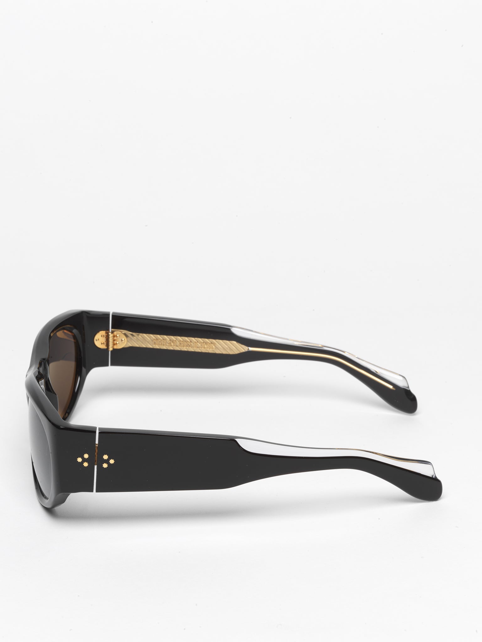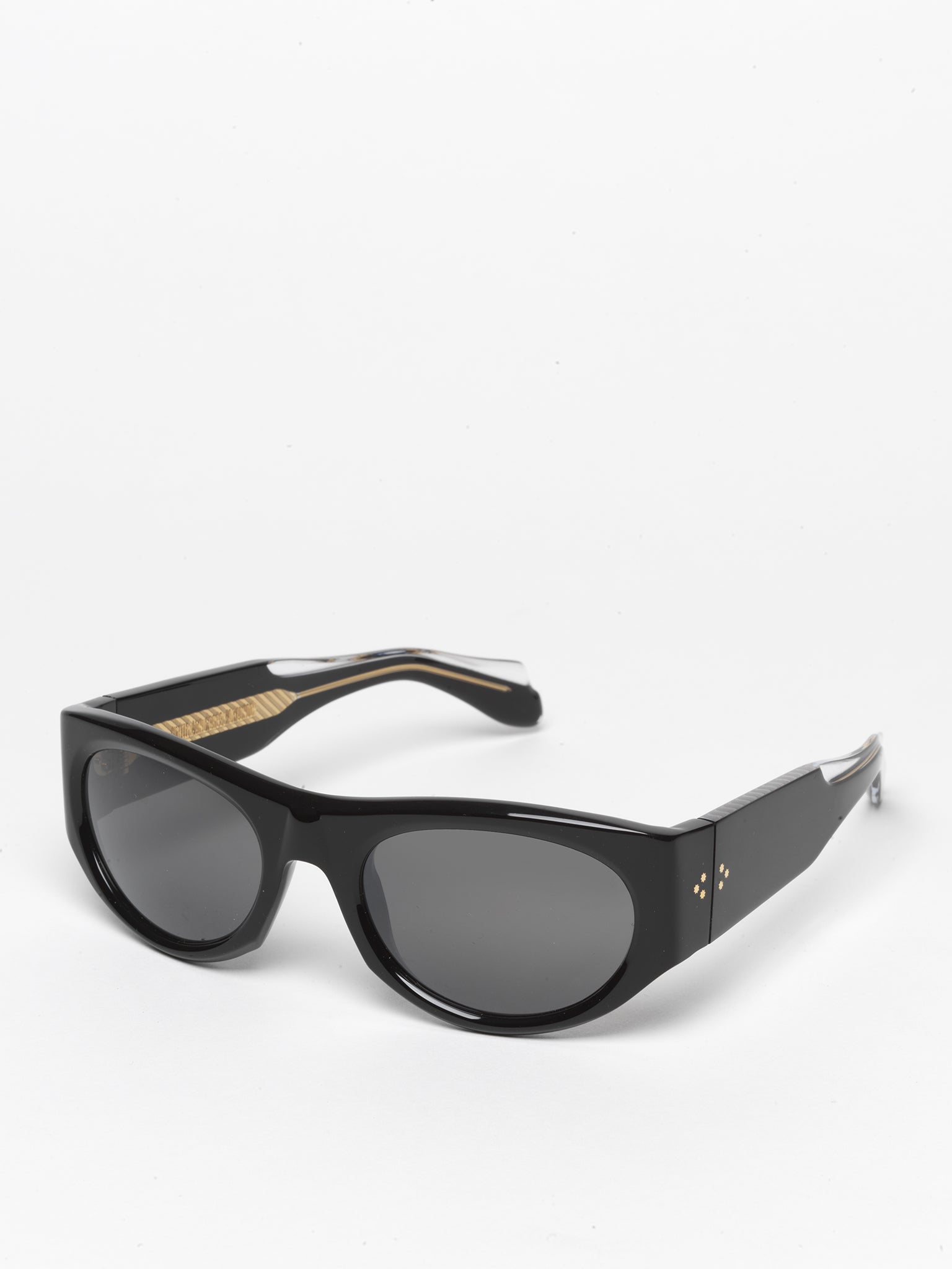 Cutler and Gross first wrap around sunglass frame in 22 years, the 9276 references the famous 0276 as worn by Bono of U2 during the Achtung Baby Tour in 1991. An homage to daring eyewear and breaking convention, this wrap frame in black took Cutler and Gross back to the drawing board in terms of working with an 8-base frame after such a long time.
