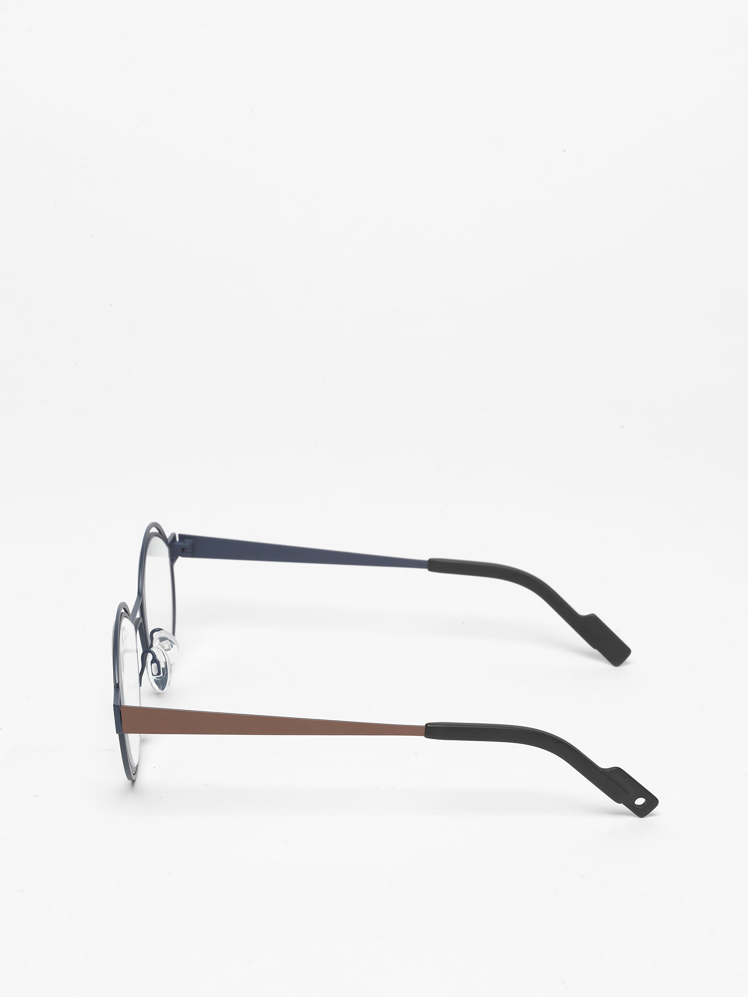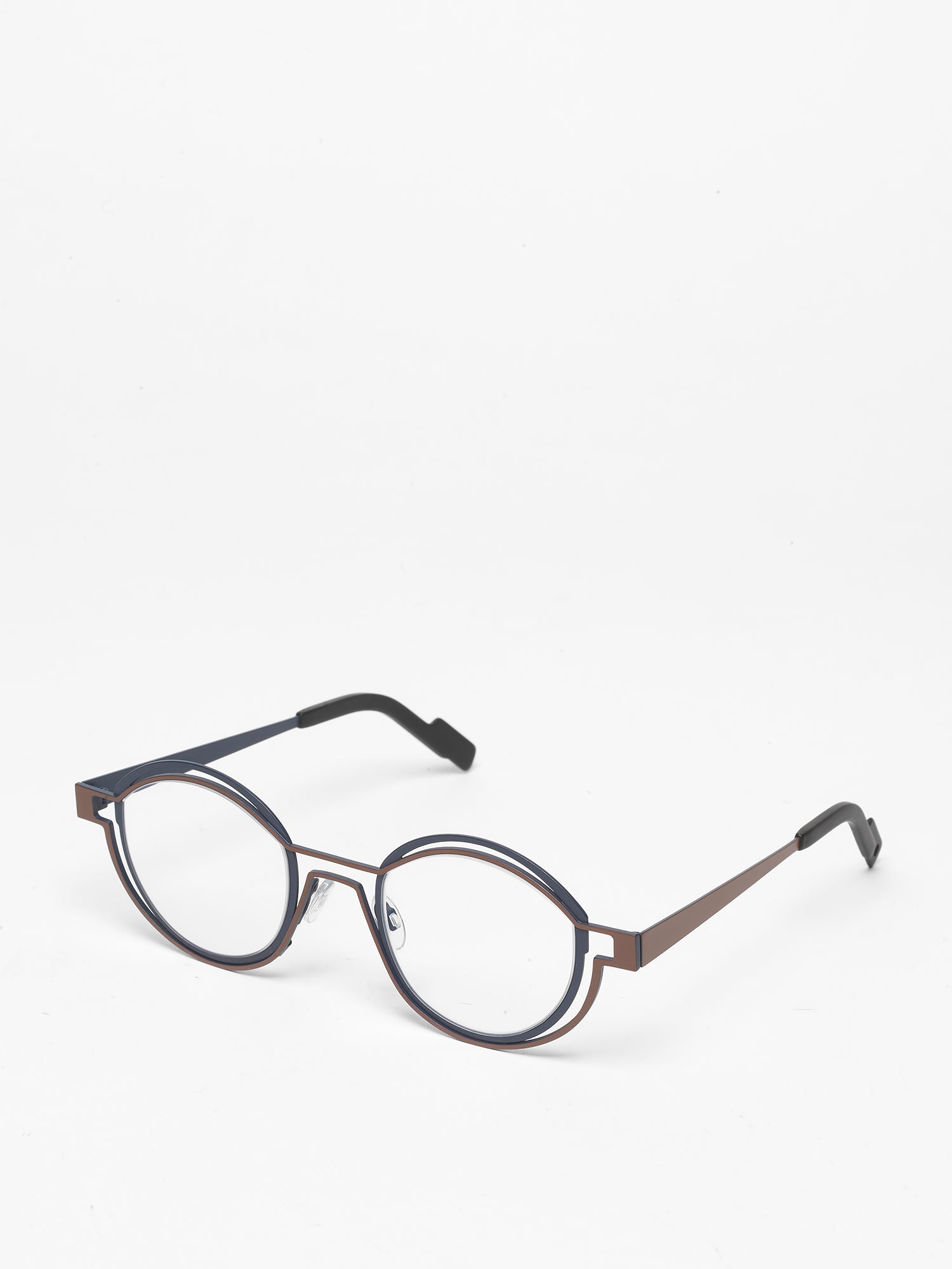 ‘No glasses without glass’. For his latest line ‘Outlines’, James is taking the radical and revolutionary step of starting with the shape of the lens, allowing it to determine the further design of the glasses. He extends the existing vocabulary of the lenses and allows them to continue into the frame. In a natural way, the frame is then shaped and moulded around it as an outline, as a shadow image around the essence - the glass; thus creating an original tension between the frame and the shadow image.