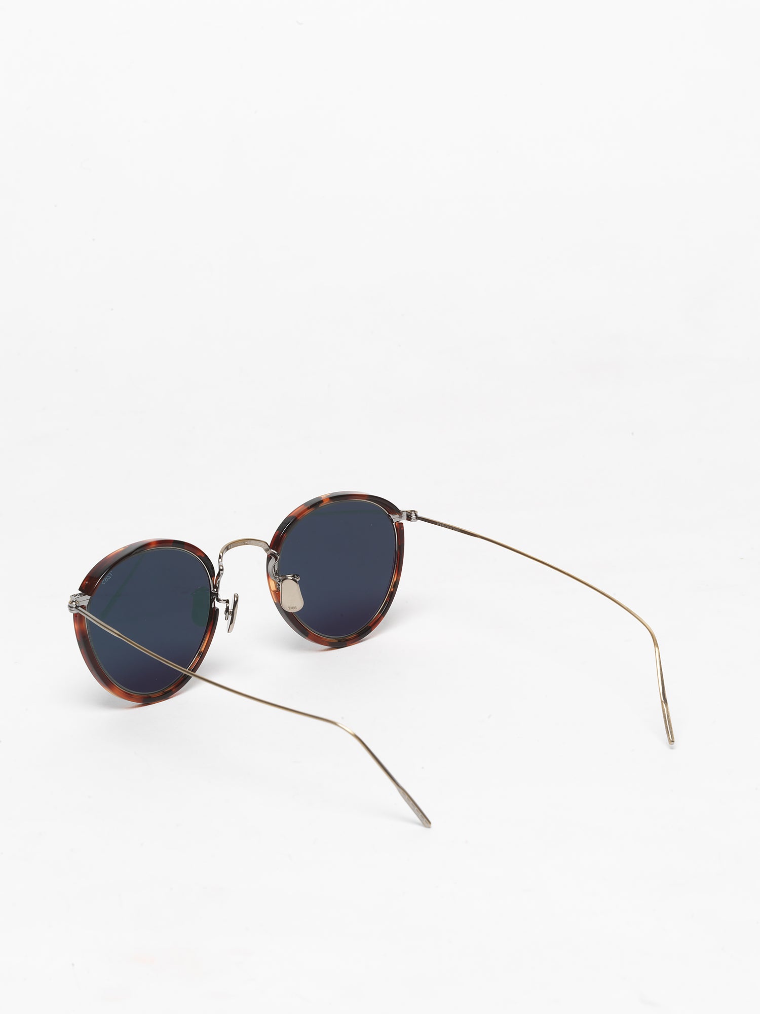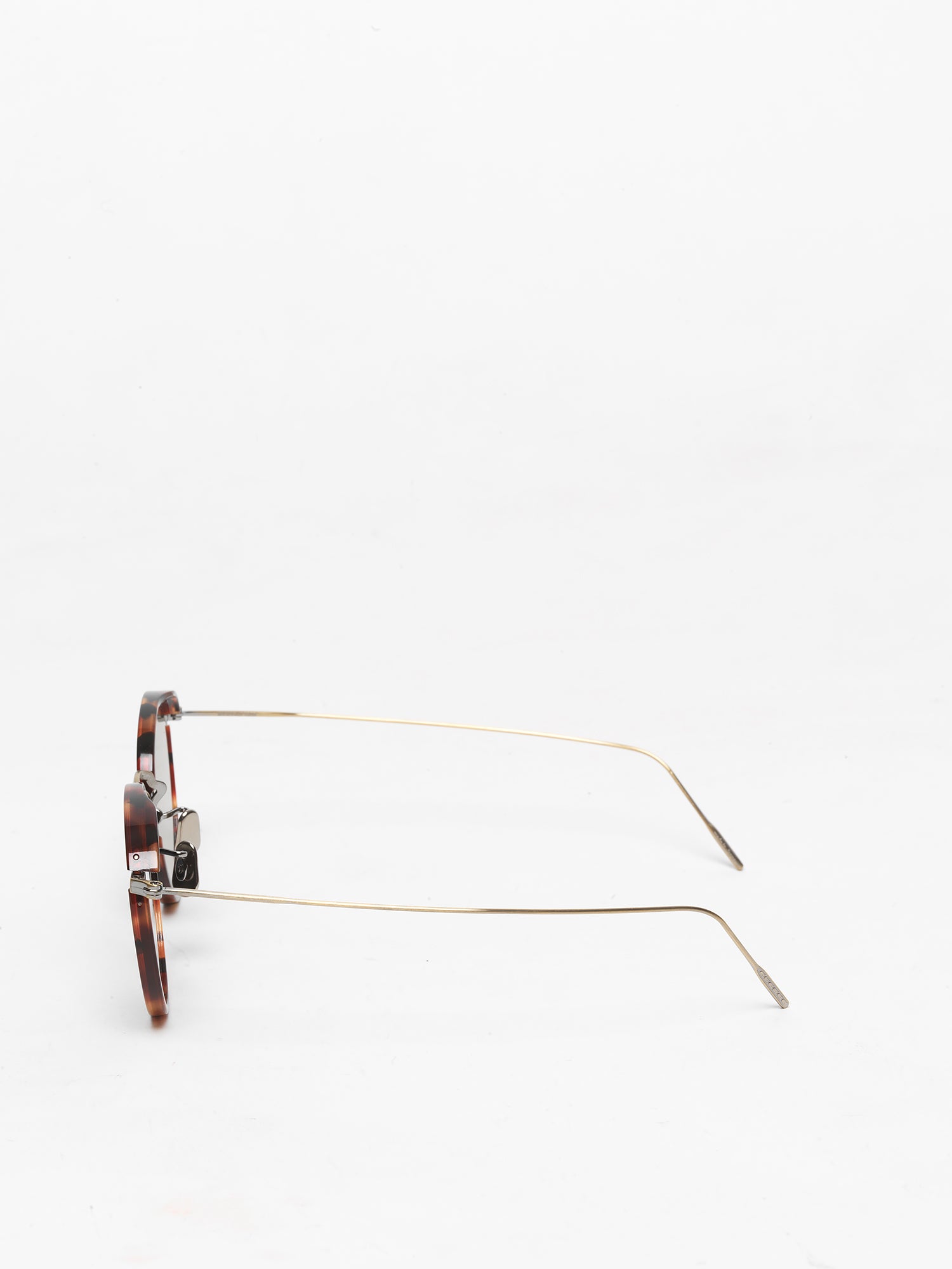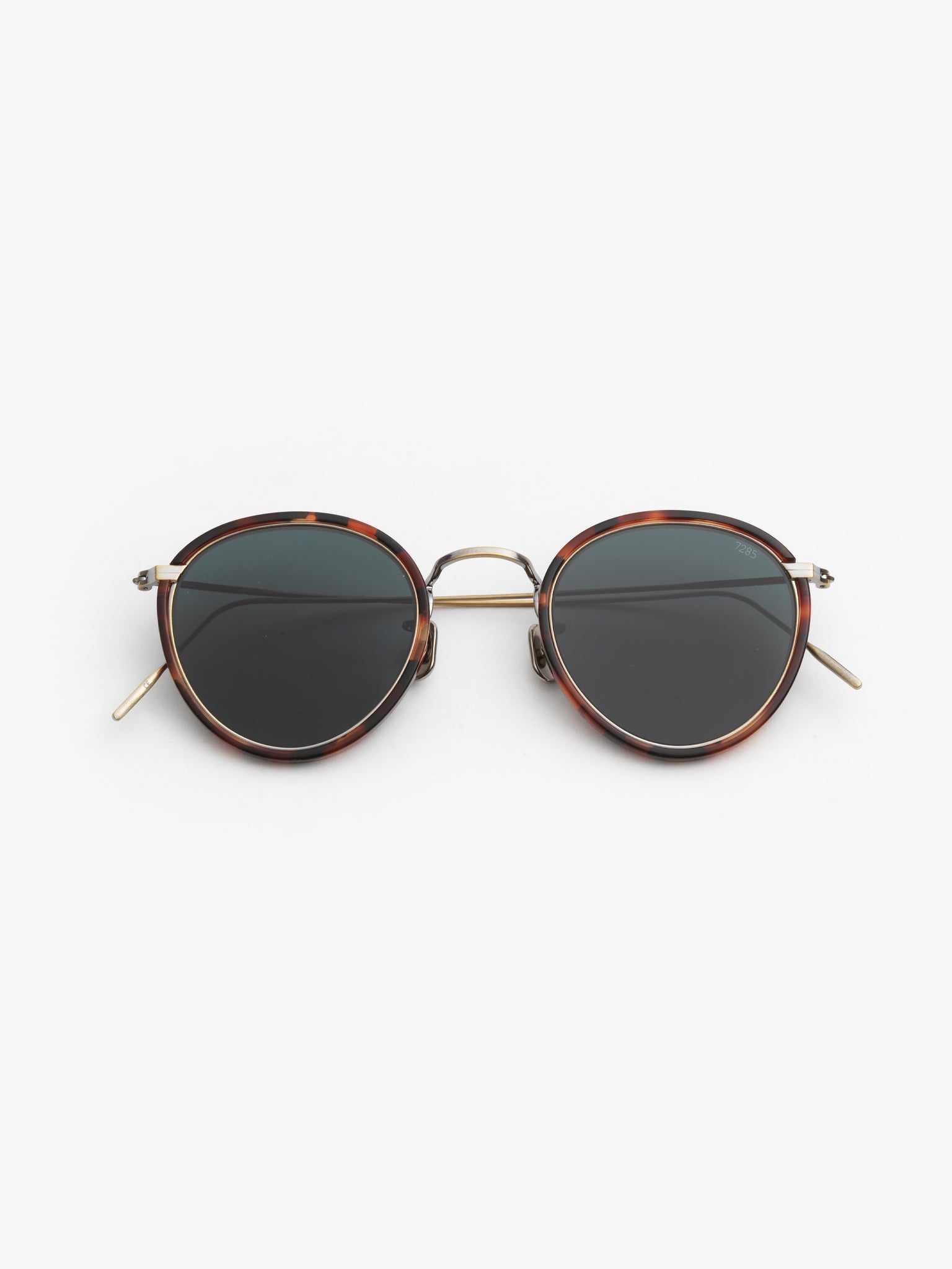 As an innovator/pioneer of an eyewear design, EYEVAN released EYEVAN CRAFT[DD-22] which was the origin of acetate-wrapped metal rim front structure in the 80’s. Inspired by good and old technique Eyevan has developed such a front as Acetate x Inner Metal rim – visible metal rim with acetate wrapped around that is quite unconventional. A structure of the top plastic part is also uniquely formed with visor-look alike, and applying FLAT lens makes its design even more unordinary and creative.