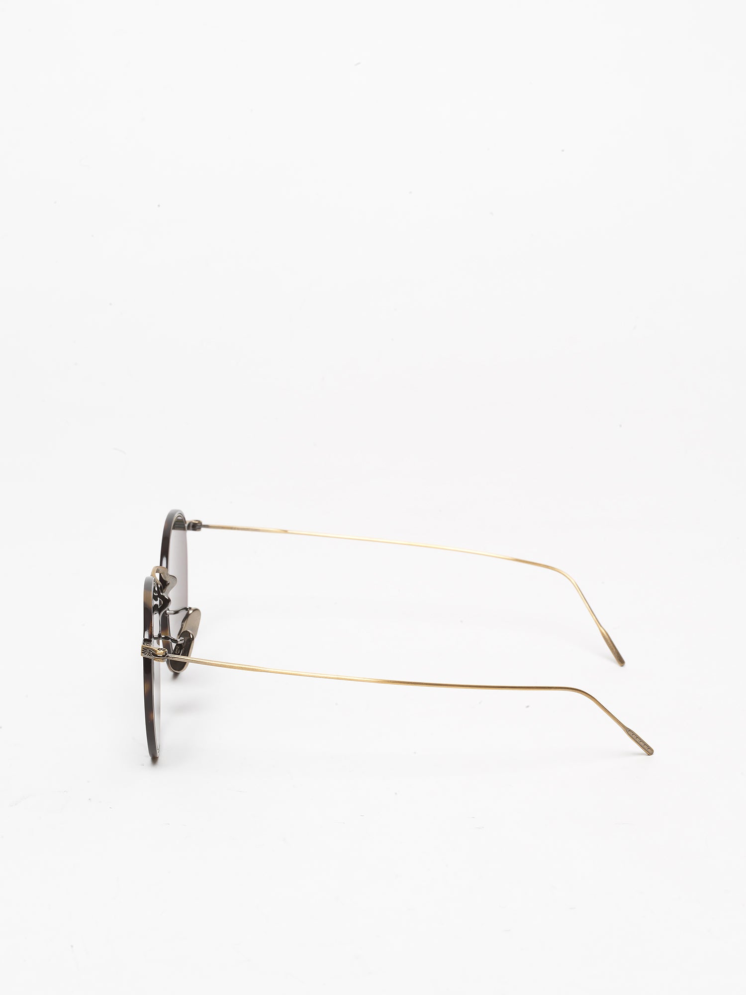- brushed antique gold frame and dark tortoise acetate