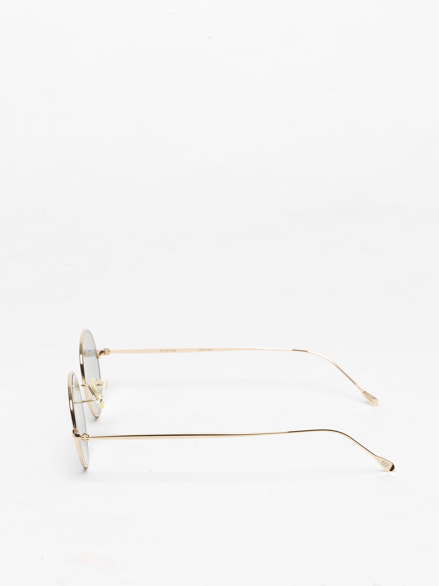 The lens shape was sampled from the Side-Mount round frame that was all the rage in the 1920s.