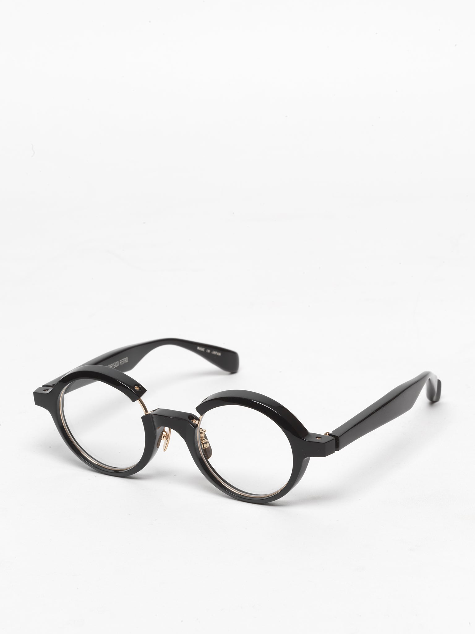 From the Retro Series, a timeless round silhouette with gold metal detailing; masterfully handcrafted in Japan.