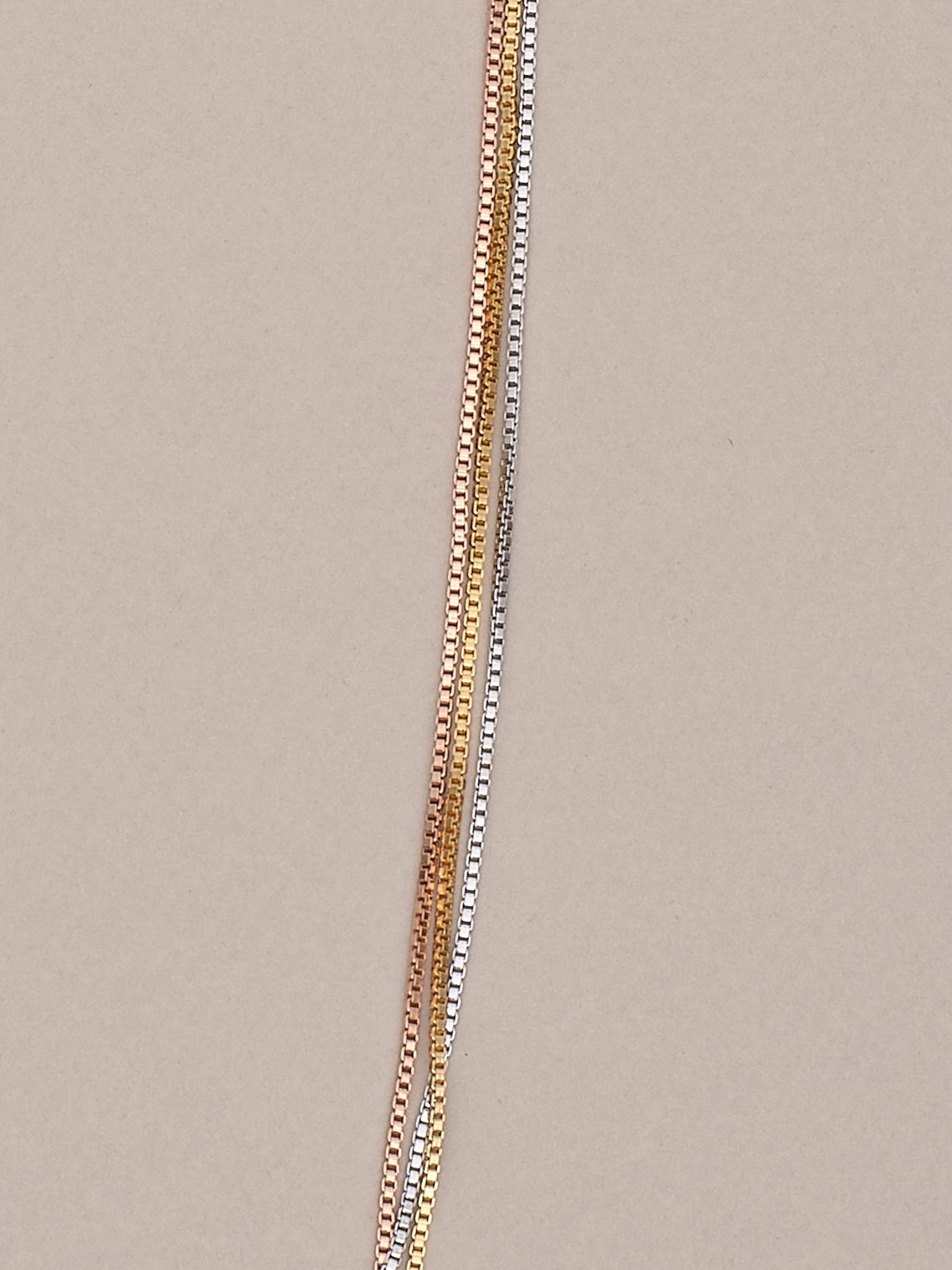 Three, It's the magic number. Especially when there is one of each Rose, Yellow and White gold strands of box chain.