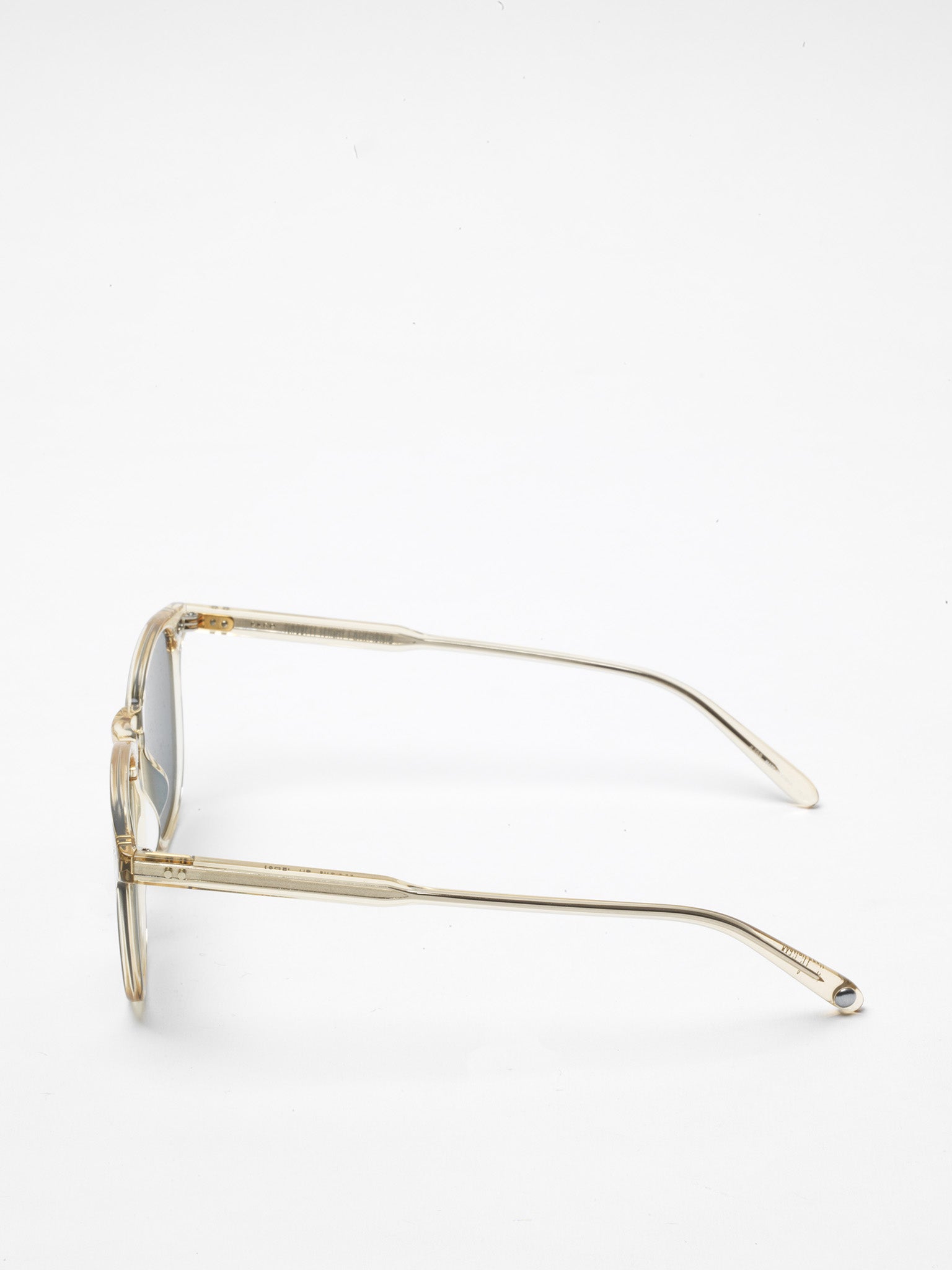 - custom semi-flat mineral glass lenses with UV protection and AR coating in Semi-Flat Blue Smoke. Colour exclusive to Garrett Leight