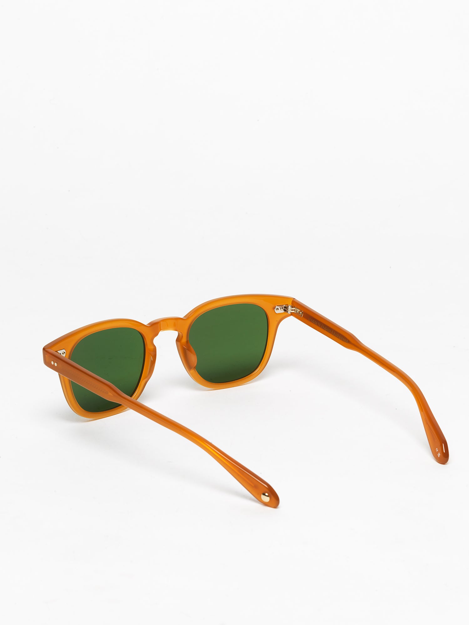 The Sherwood is a compact, tailored square frame taking design notes from classic 50's eyewear. This frame features a thicker acetate, a custom Braid filigree core wire, and the Garrett Leight custom Skyline plaque.
