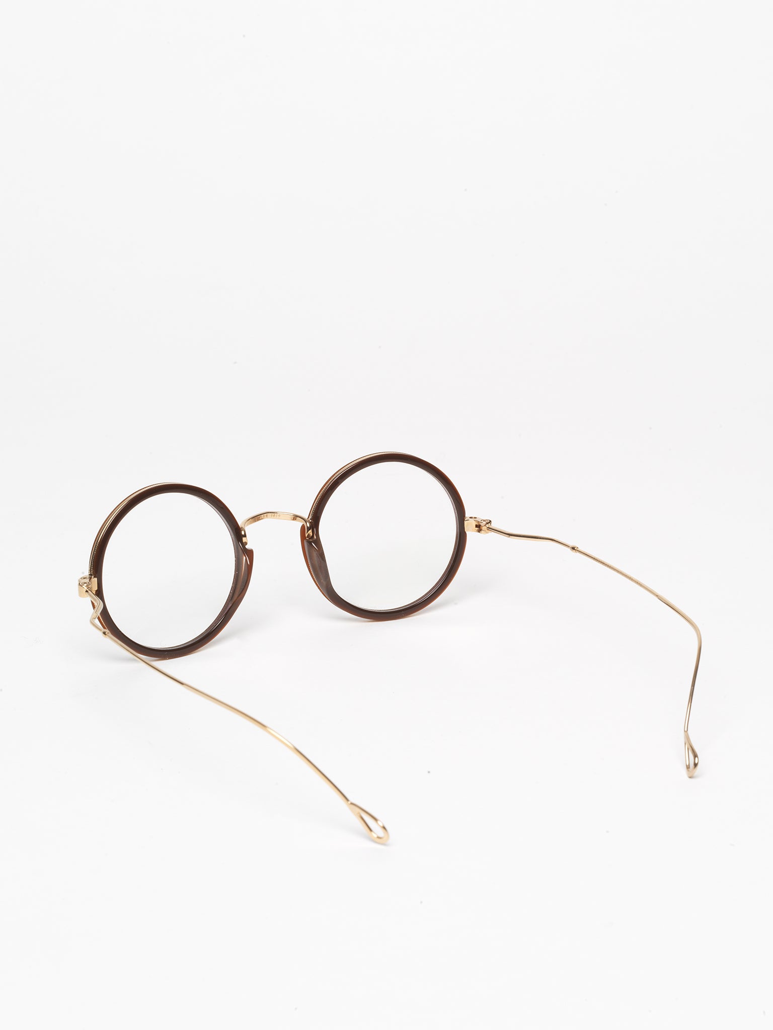 - combined metal and acetate frame, 1 micron of 18 carat Champagne Gold electroplating, acetate insert in Chocolate brown