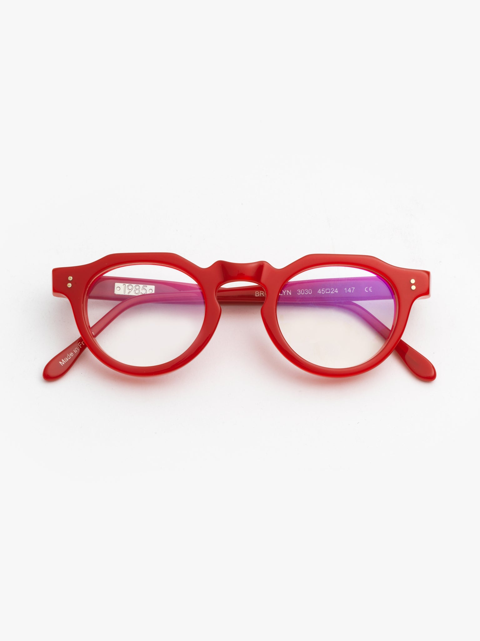 - shiny red acetate frame