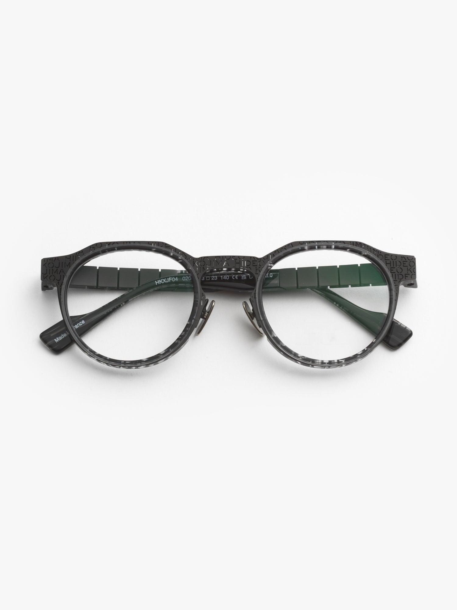 Iconic branded HIDEO KOJIMA handcrafted glasses comes in design black acetate with shades of grey and stripes. Its elegant and technological look is designed to catch the light thanks to translucent material. Each temple comes with an exclusive full titanium flex that fits naturally to your head.