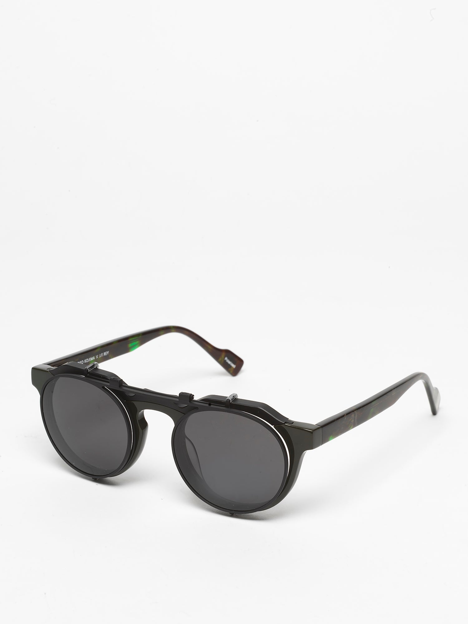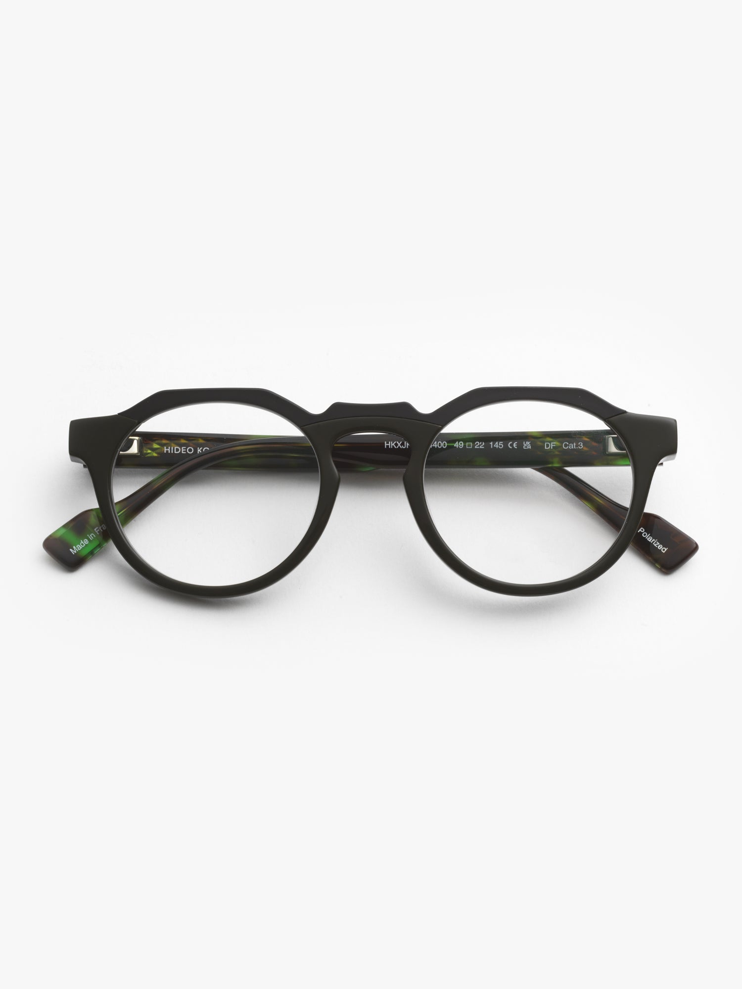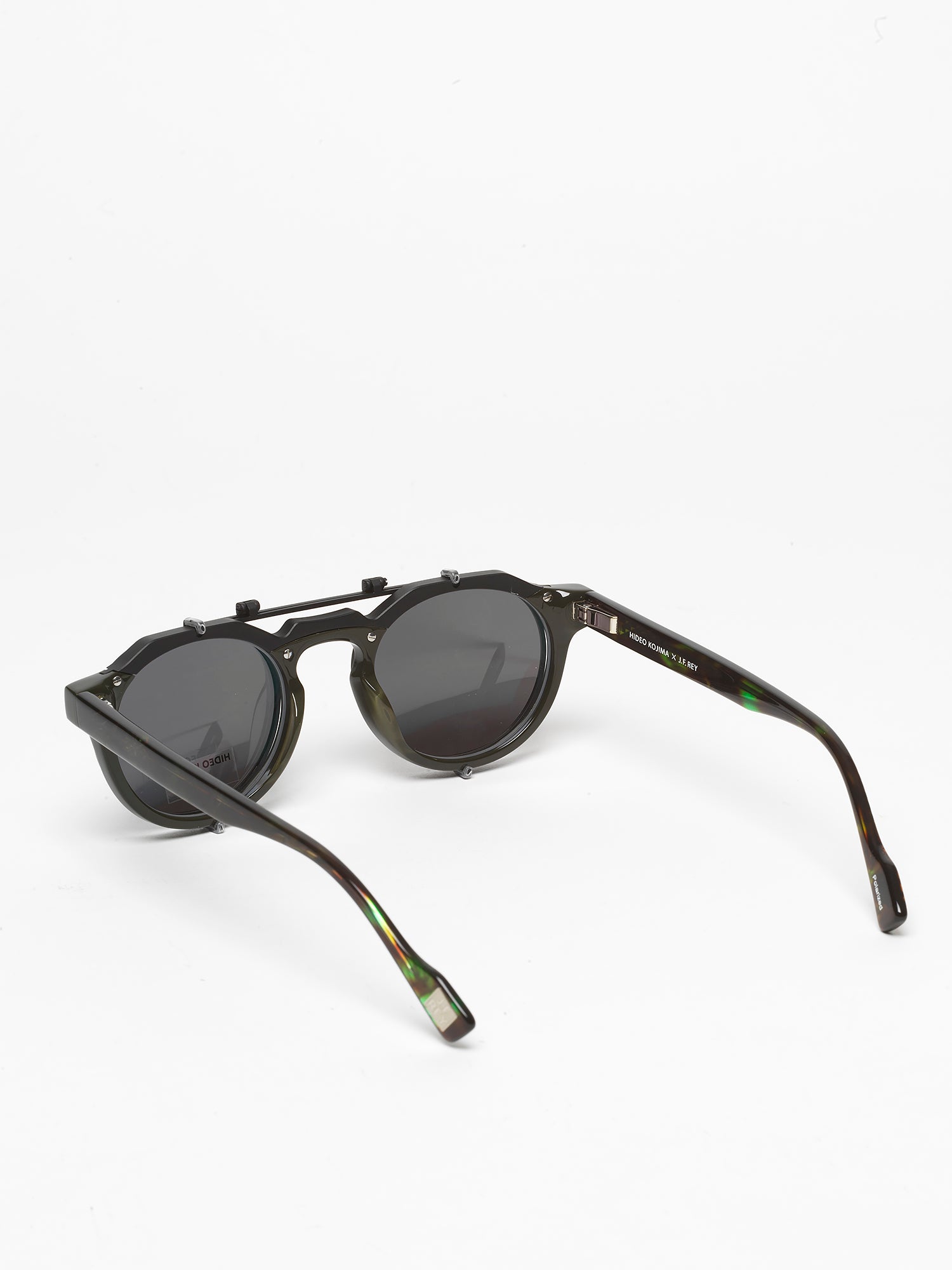 Handcrafted optical frames in jungle-effect acetate and black aluminium colors. The frames come with an exclusive flip-up clip-on with premium polarized solar lenses. Polarized lenses offer you superior quality and protection against glare and extreme outdoor light condition.