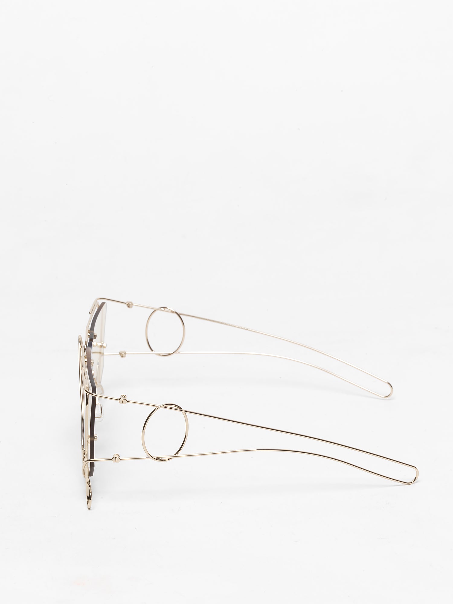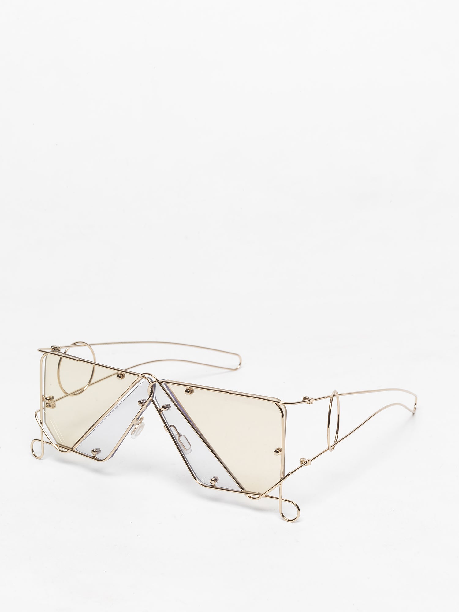 Her sunglasses design is inspired by Beatnik artist Harry Smith's String Figure archive, a universal game of loops and knots that serves as a hand dance, learning tool, and storyteller. Fascinated by the endless variations a continuous piece of string offers, Gabrielle aims to merge facial features with overlapping wires to create facial jewelry.