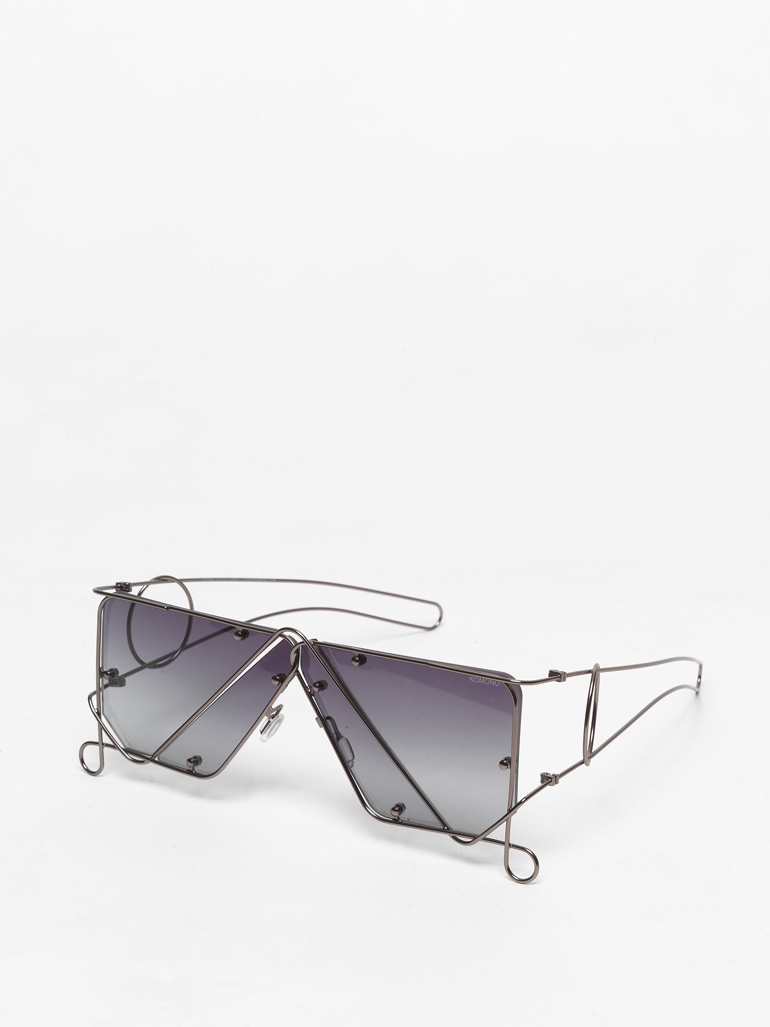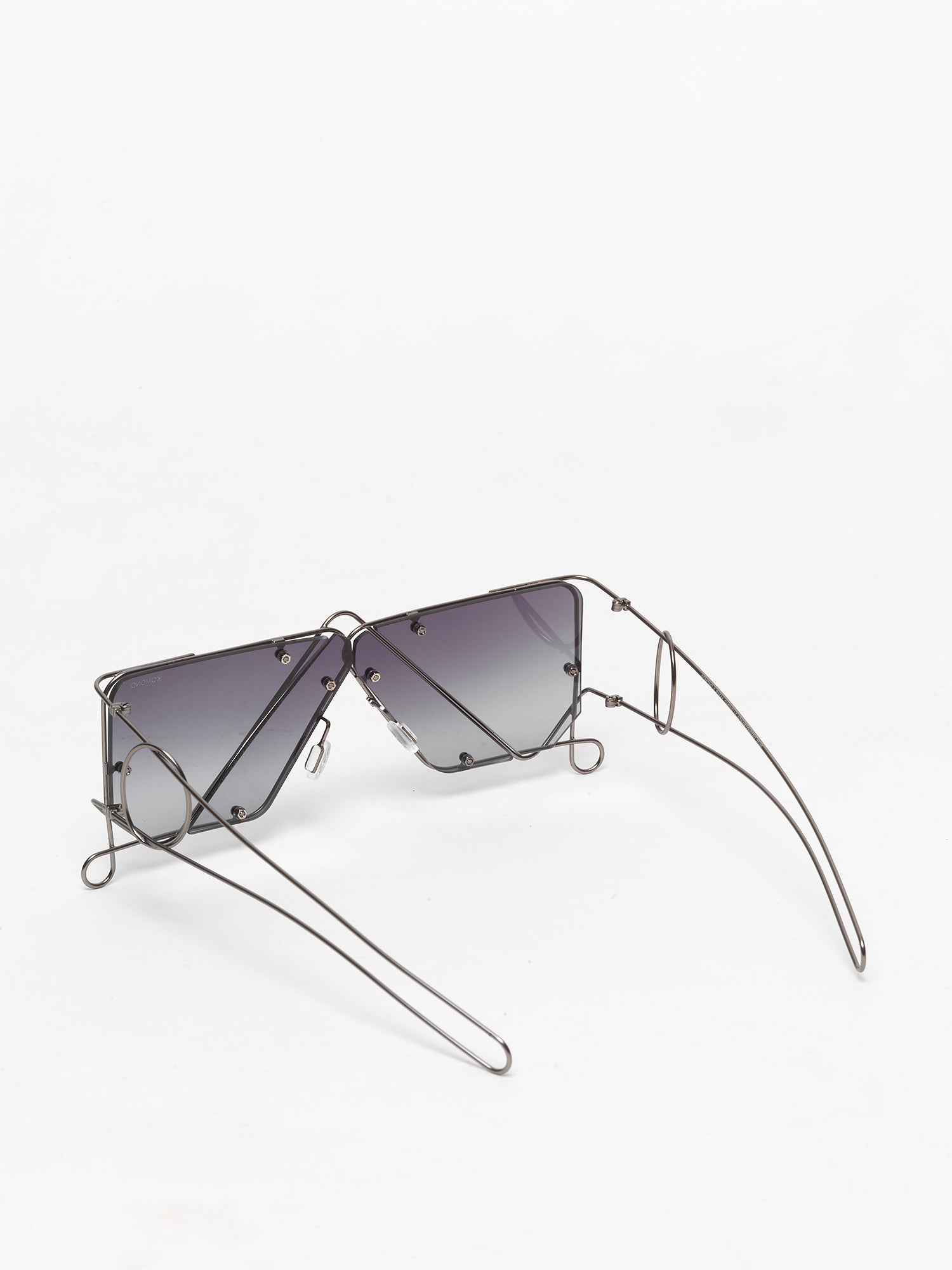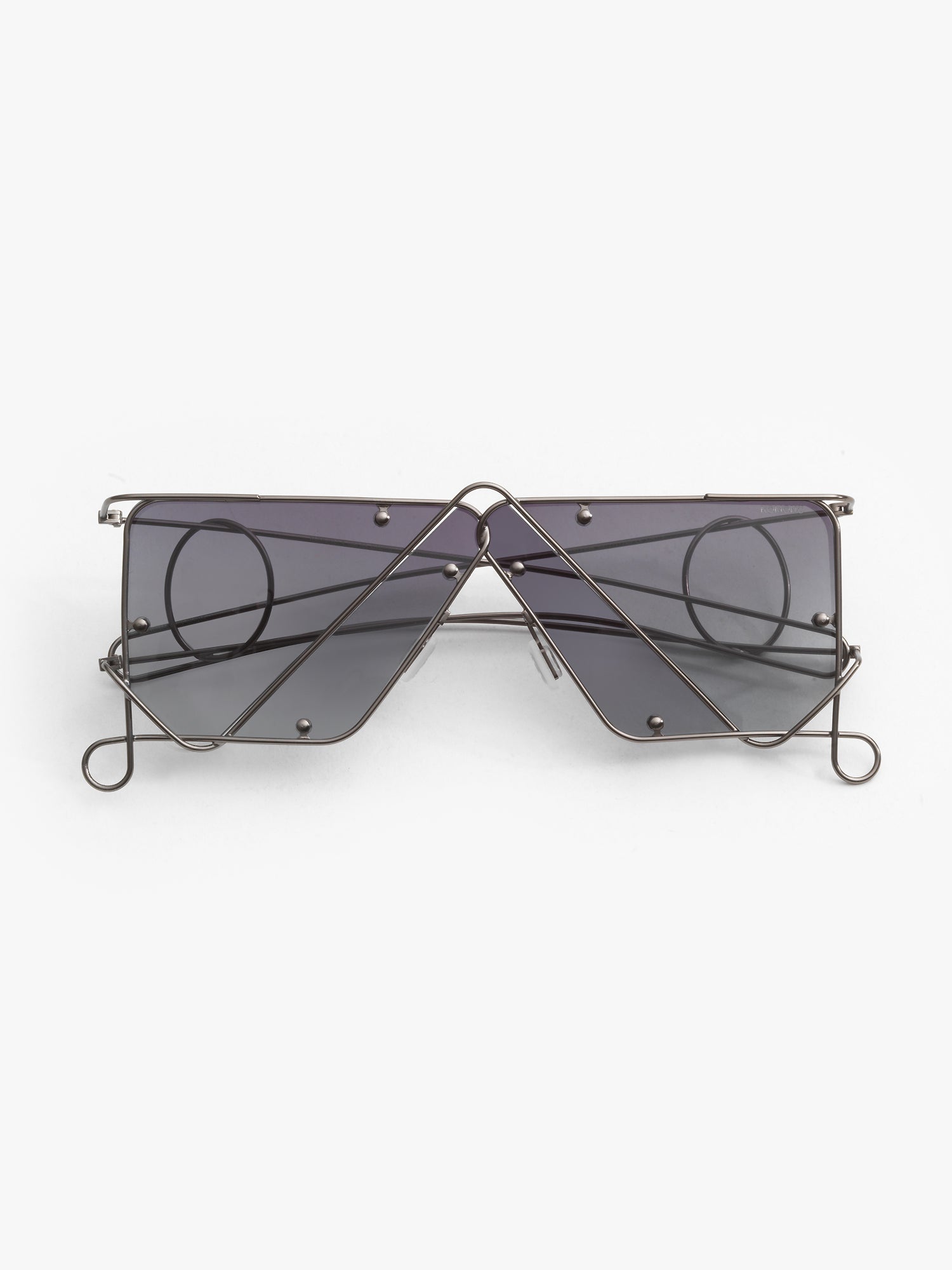 Her sunglasses design is inspired by Beatnik artist Harry Smith's String Figure archive, a universal game of loops and knots that serves as a hand dance, learning tool, and storyteller. Fascinated by the endless variations a continuous piece of string offers, Gabrielle aims to merge facial features with overlapping wires to create facial jewelry.