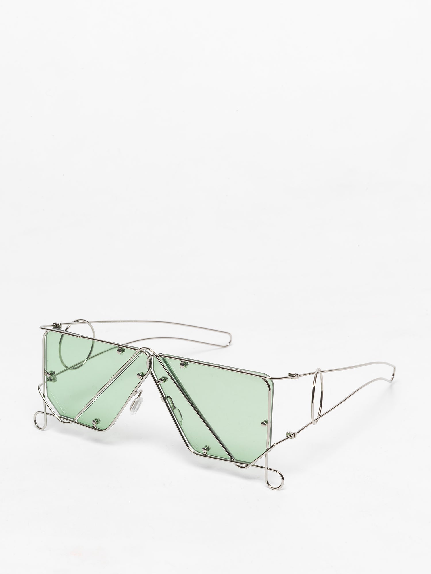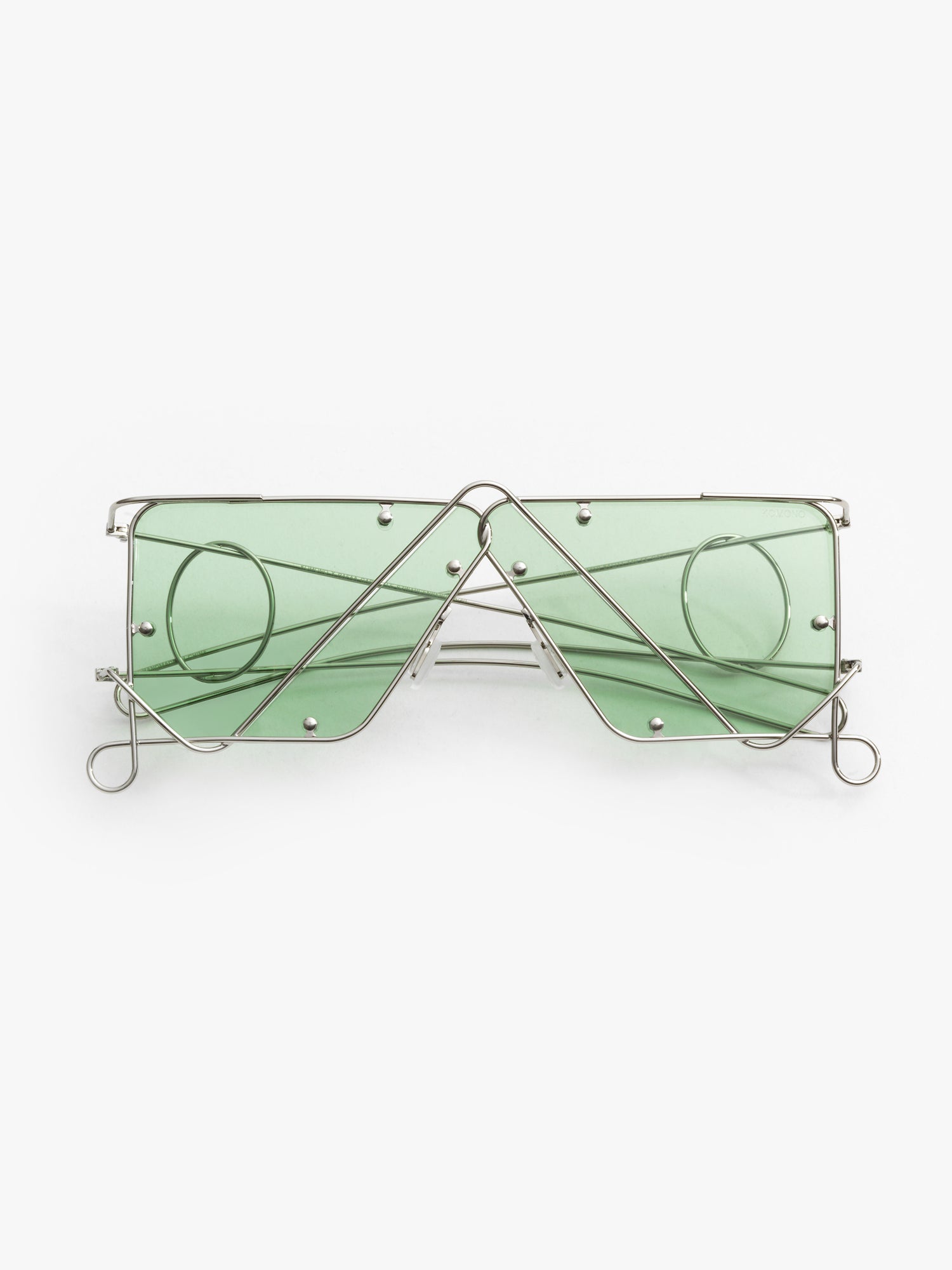 Her sunglasses design is inspired by Beatnik artist Harry Smith's String Figure archive, a universal game of loops and knots that serves as a hand dance, learning tool, and storyteller. Fascinated by the endless variations a continuous piece of string offers, Gabrielle aims to merge facial features with overlapping wires to create facial jewelry.