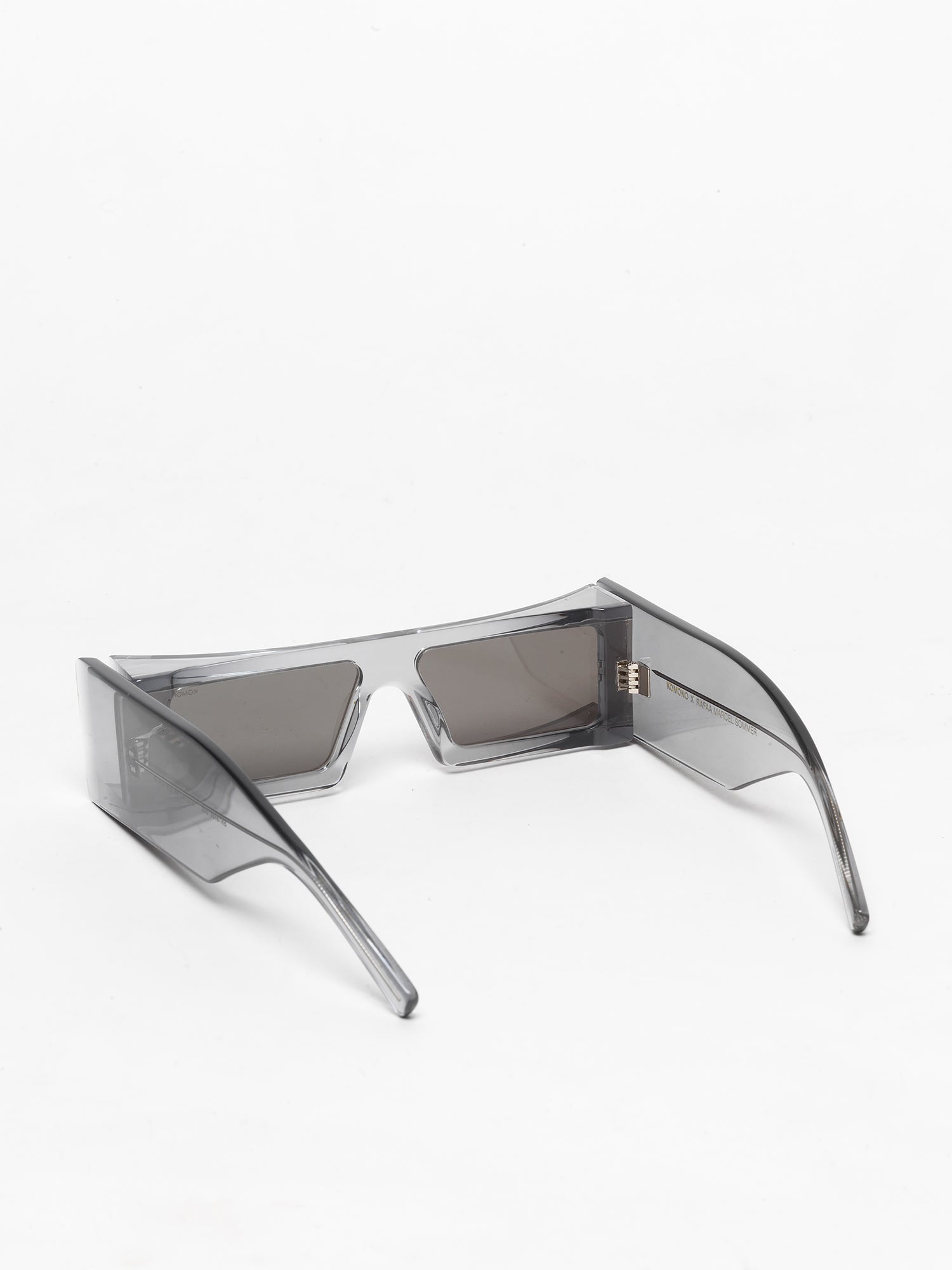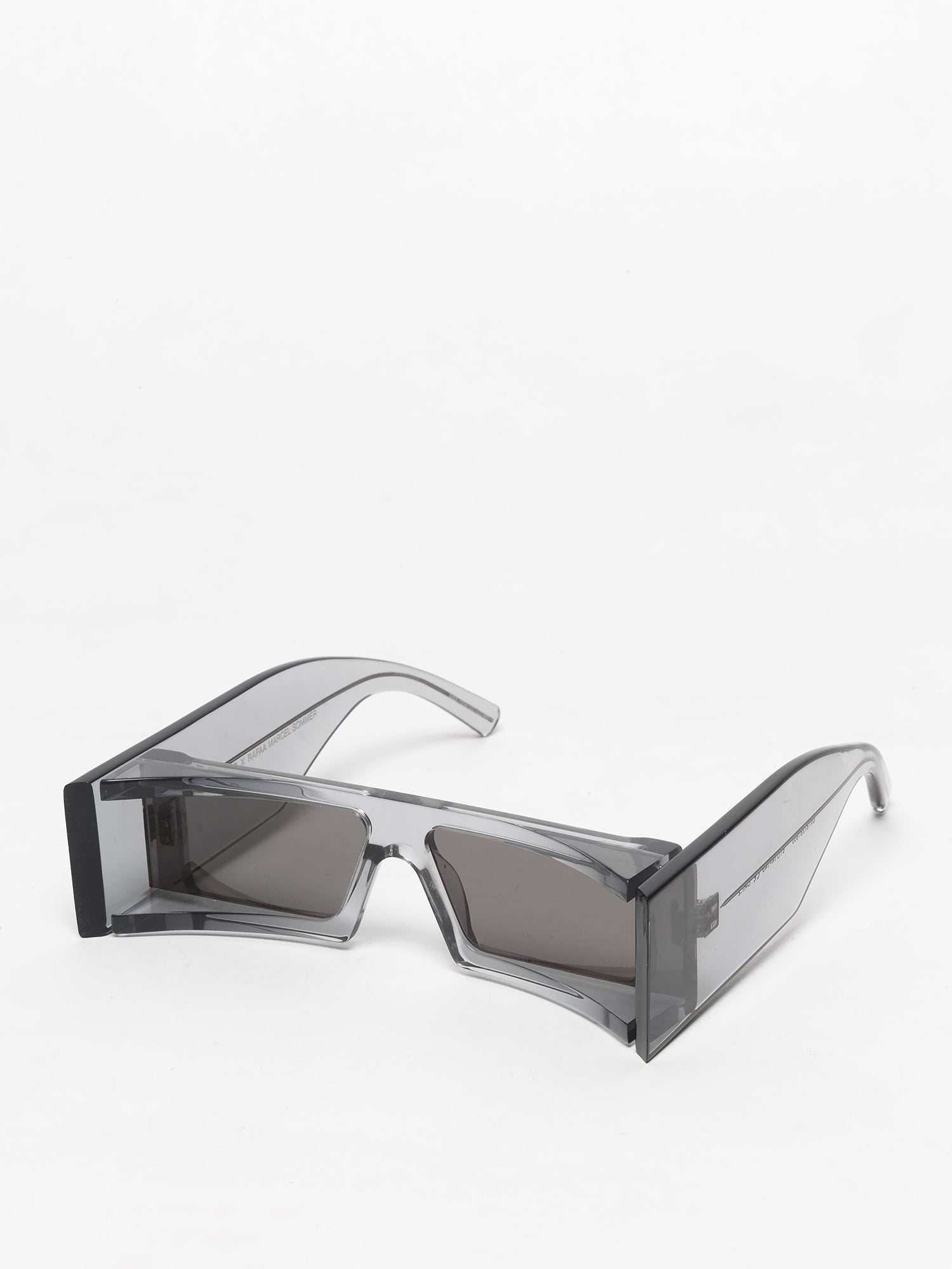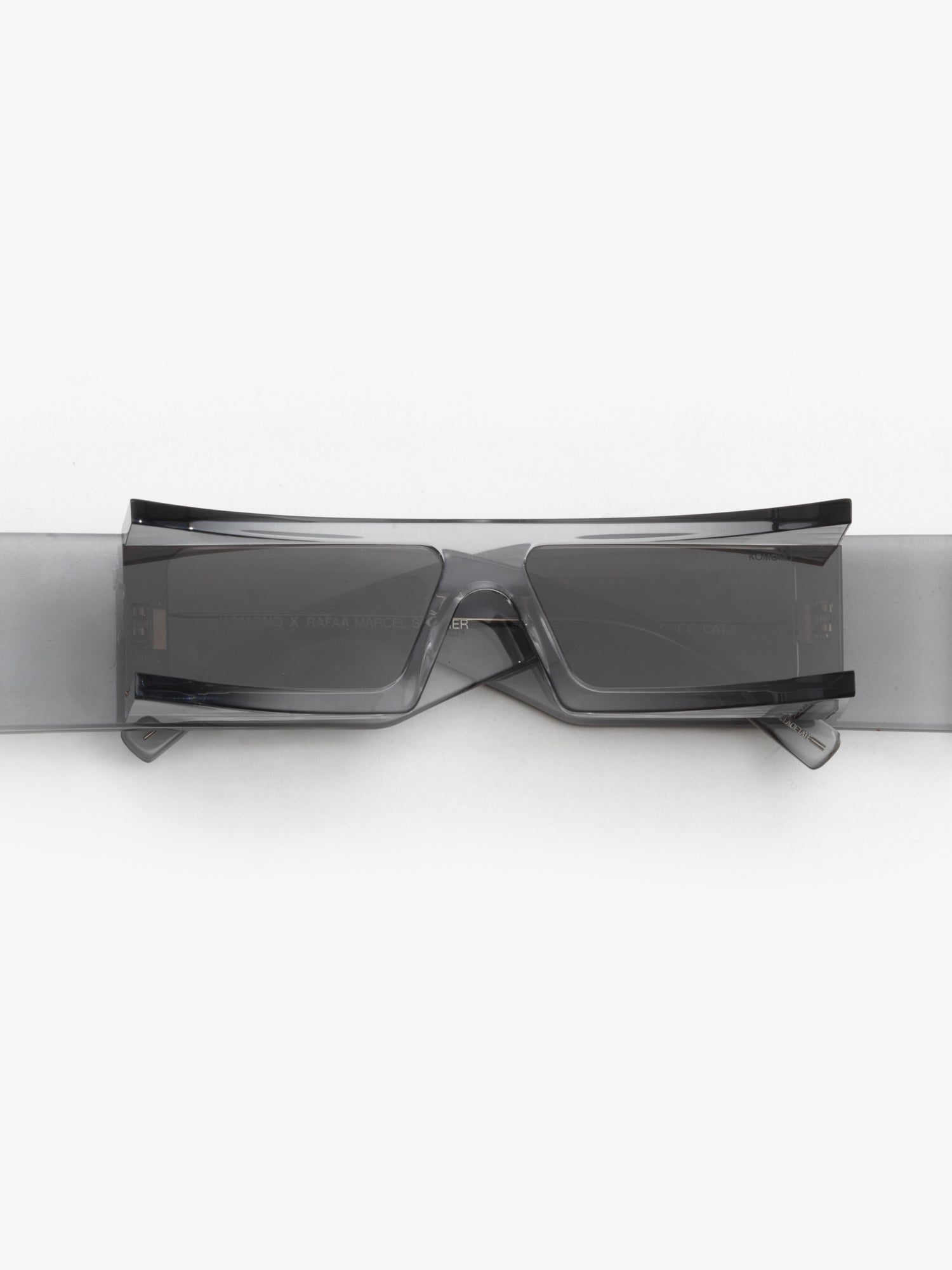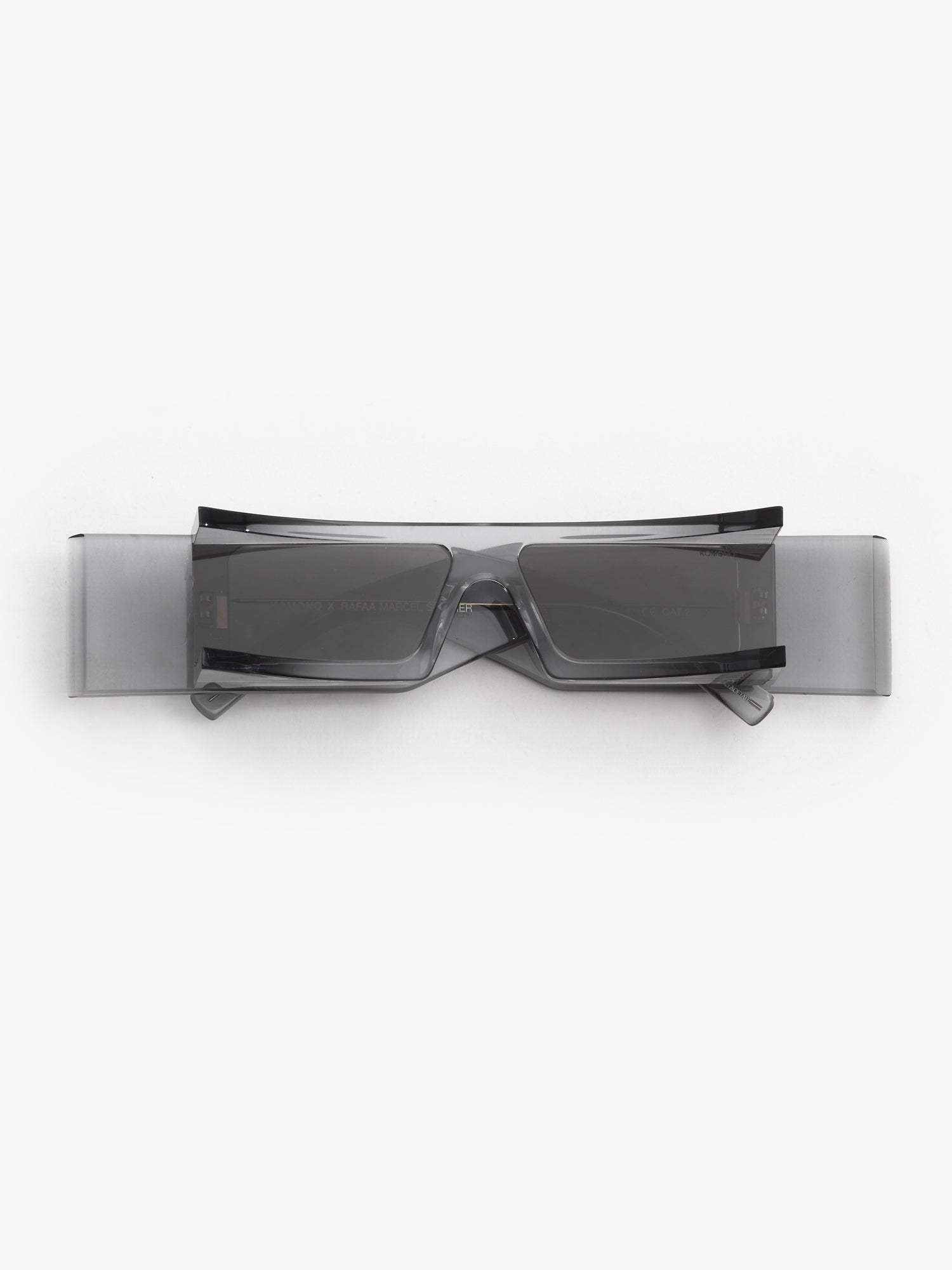 The “AFTER[MA]TH” collection explores the evolution of humanity into a superhuman species, inspired by Brutalism and light installations. The sunglasses feature strict lines merging into elegant curves, embodying a futuristic aesthetic.