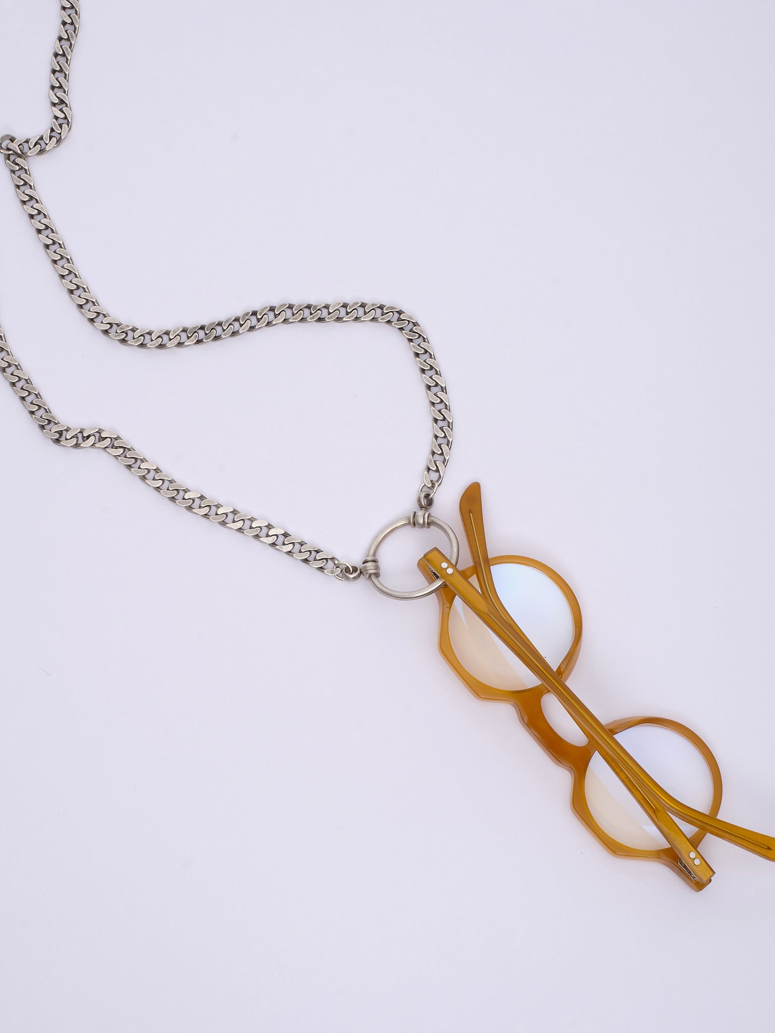 A LA LOOP necklace lives within a unique category of accessory that merges the elegant clean lines of a necklace with a simple silver circle crafted to hold glasses. Edgy and understated, this necklace is a nod to our art and music lovers, named after Ludlow St in NY’s lower east side (LA LOOP was born in NY), a hotbed of the arts and music scene from the 1960s forward.