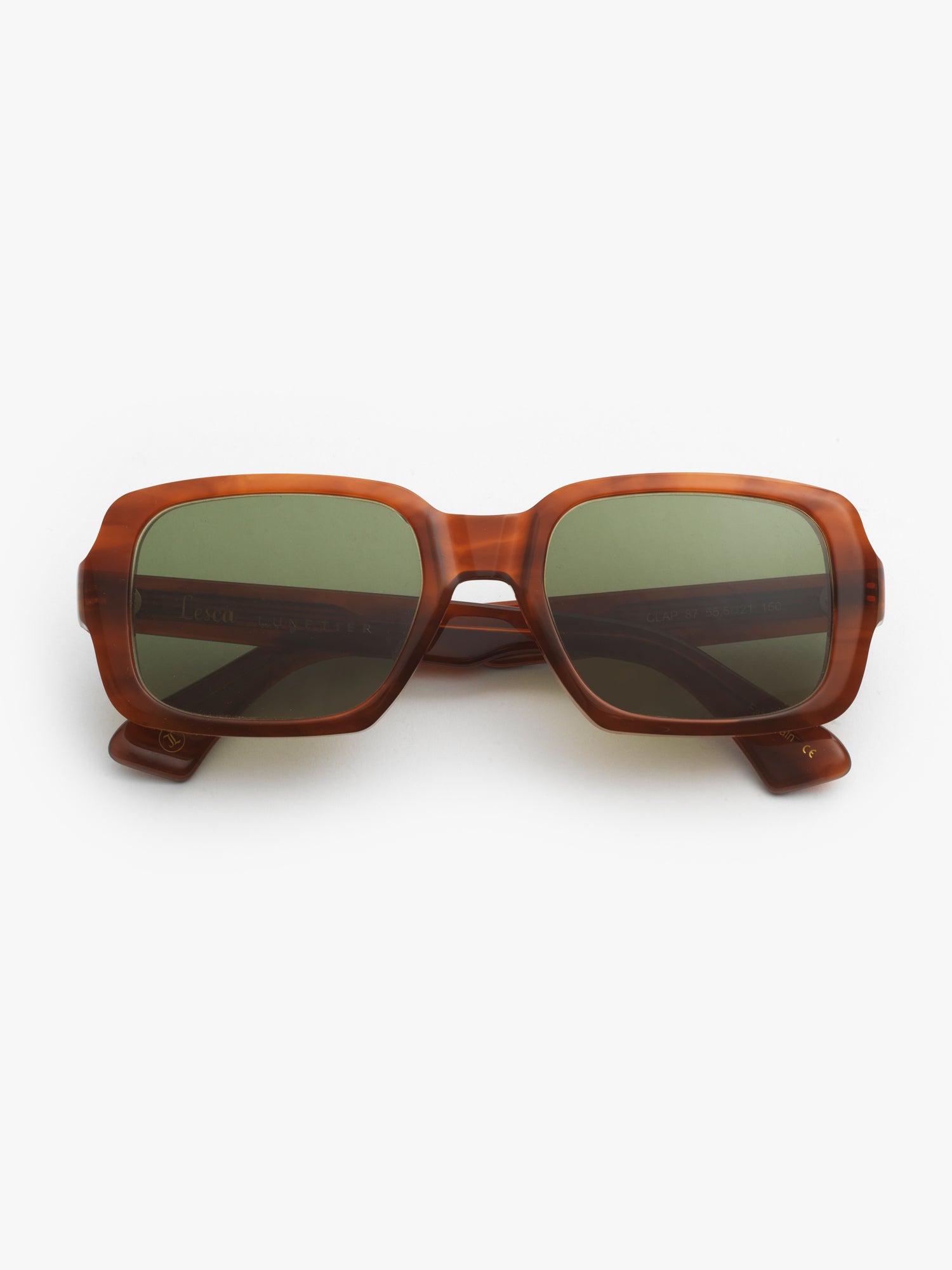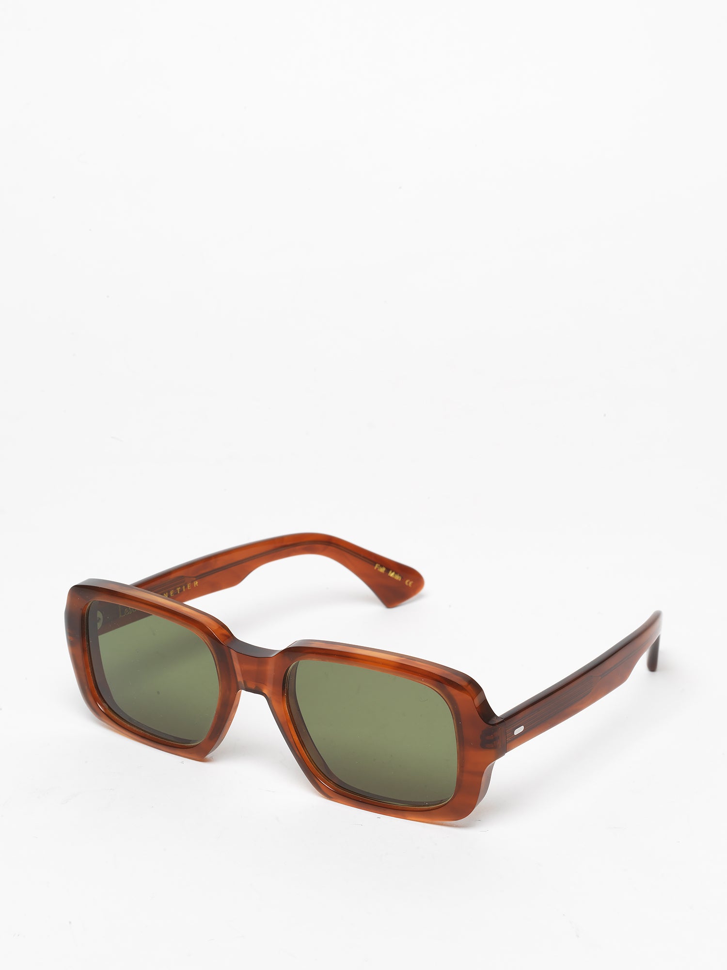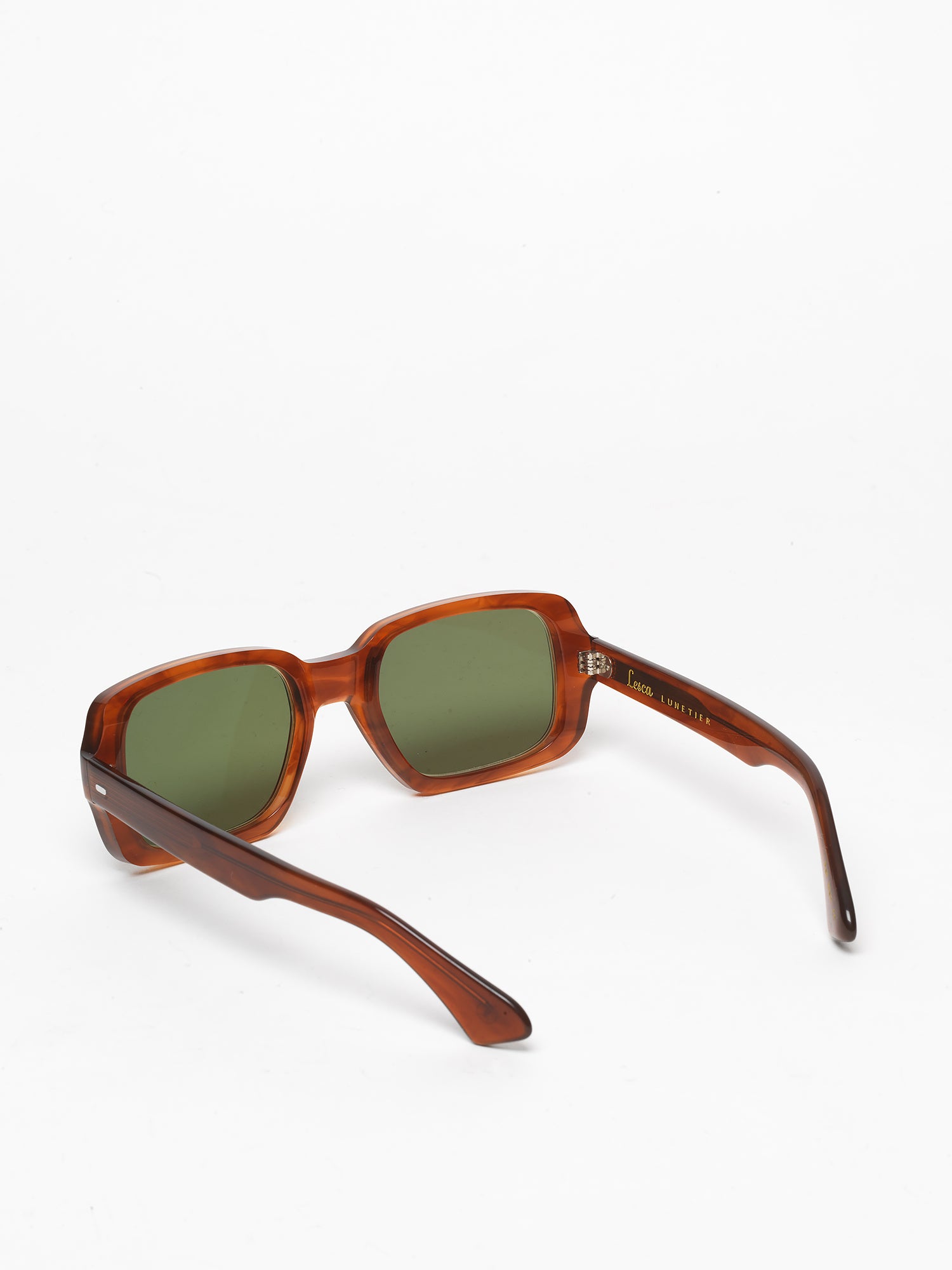 These eyeglasses feature a bold rectangular shape with a thick acetate frame, emphasizing a strong and oversized design. Inspired by an archival model, they reinterpret classic aesthetics with a refined and modern touch while preserving their vintage essence.