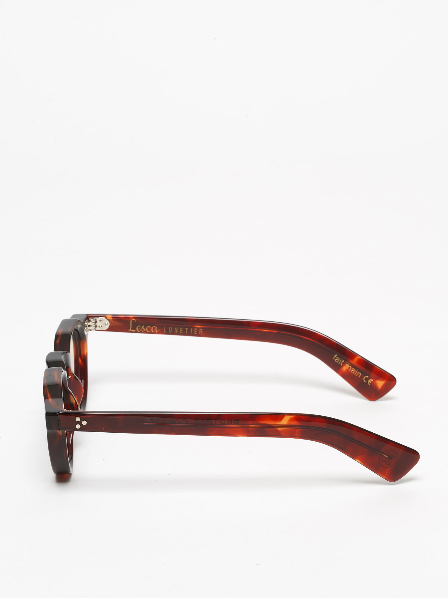 New pantos shape, with a strong character, significant thickness, and featuring the iconic spatula temple from Lesca's archive.