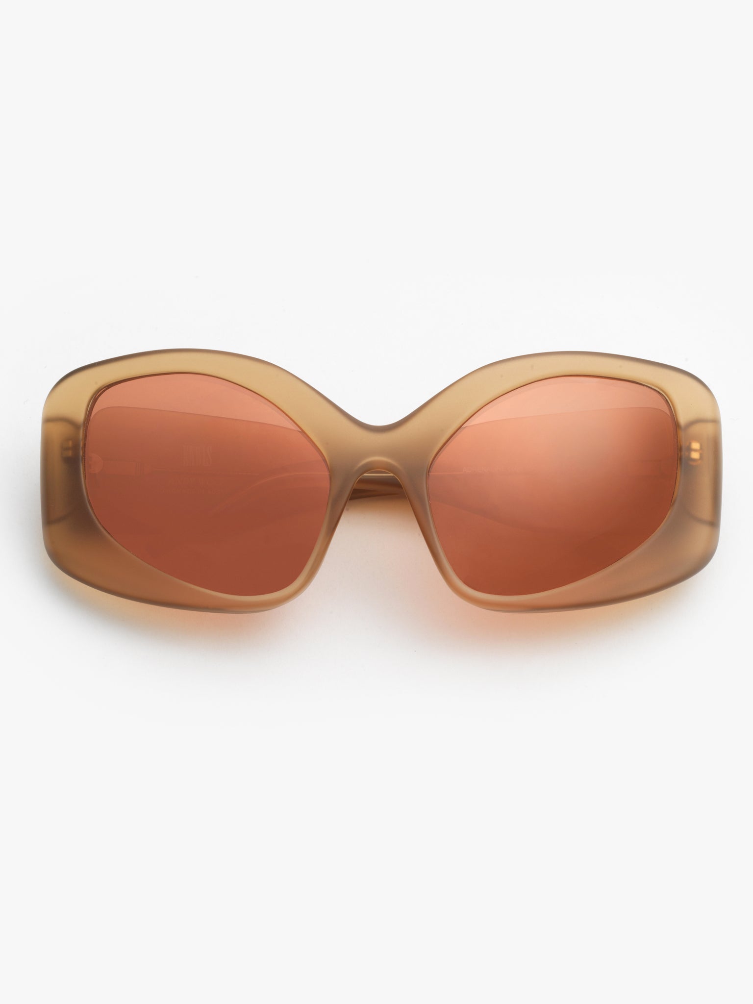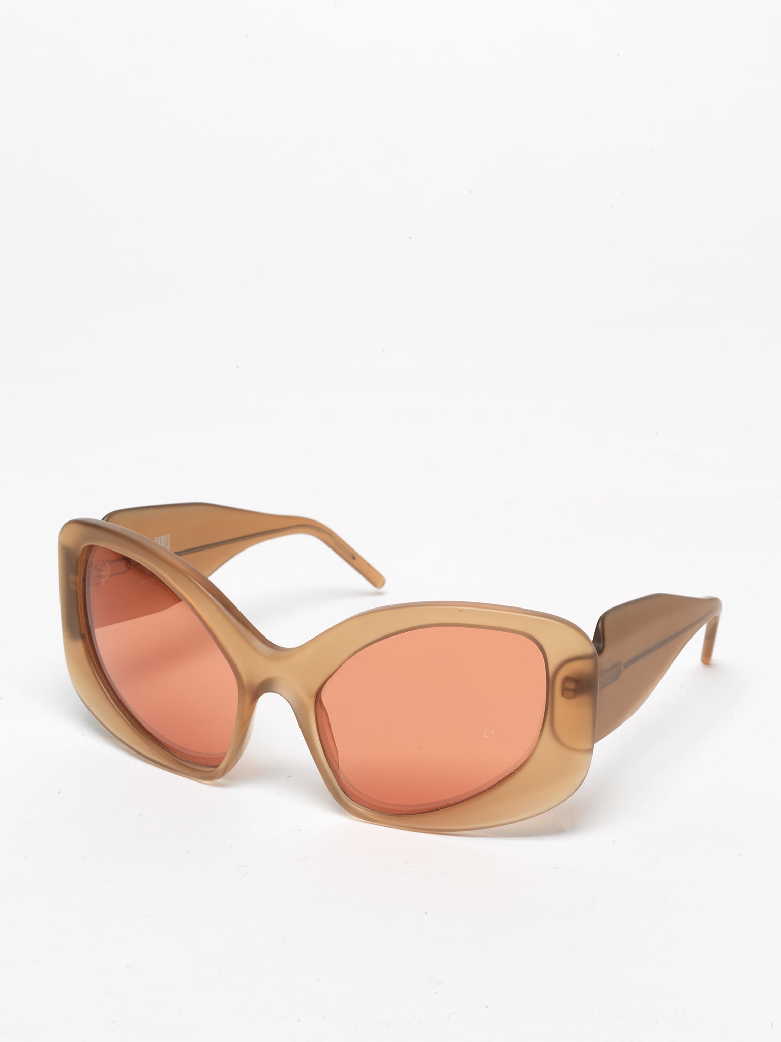 - oversize slanted lens sunglasses with frosted frames in blush red