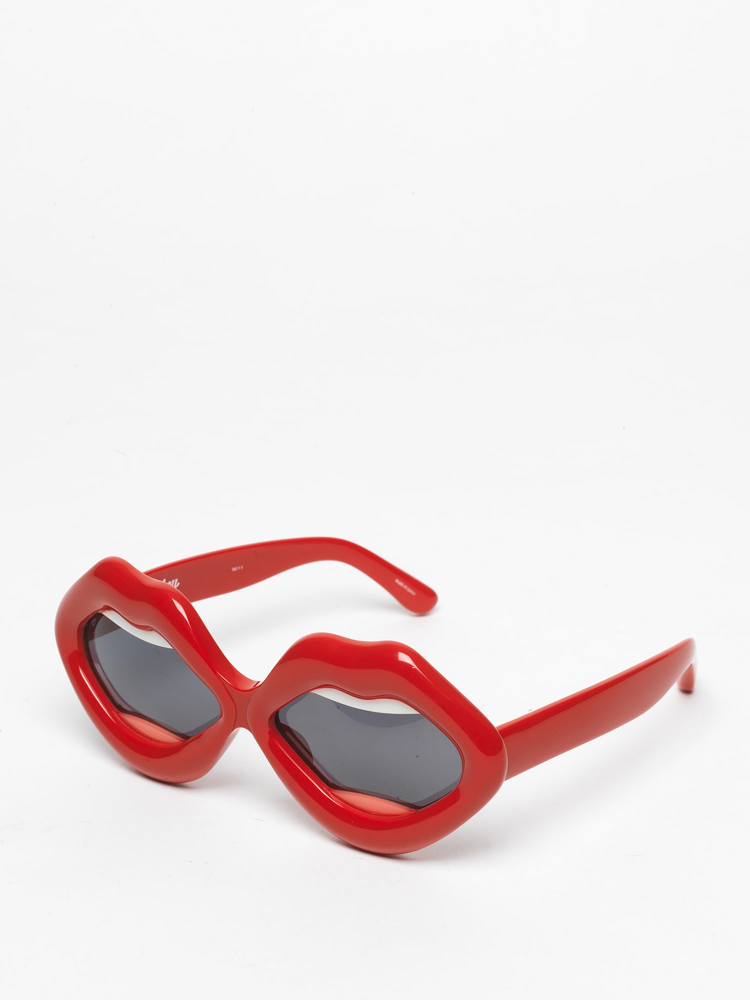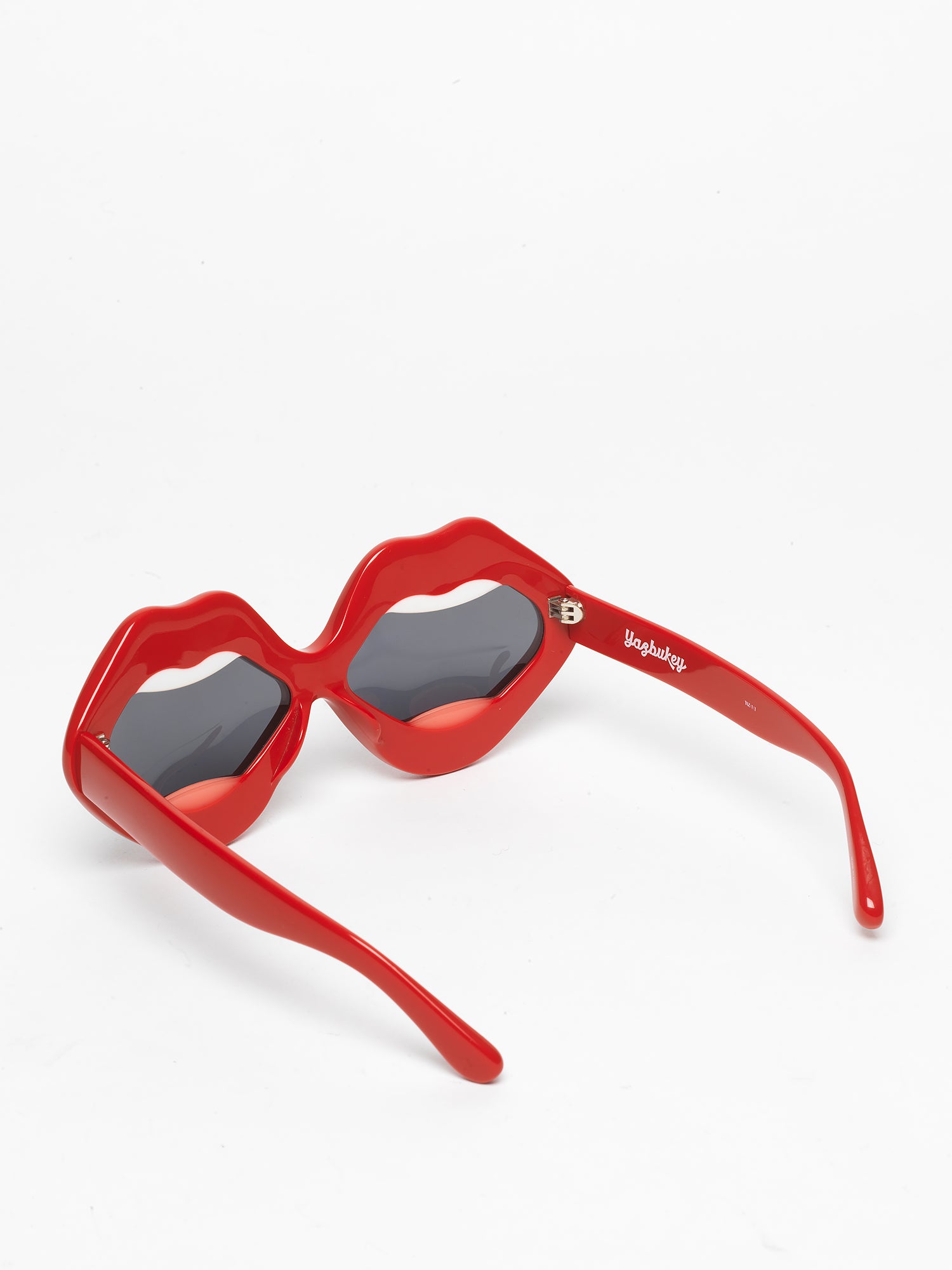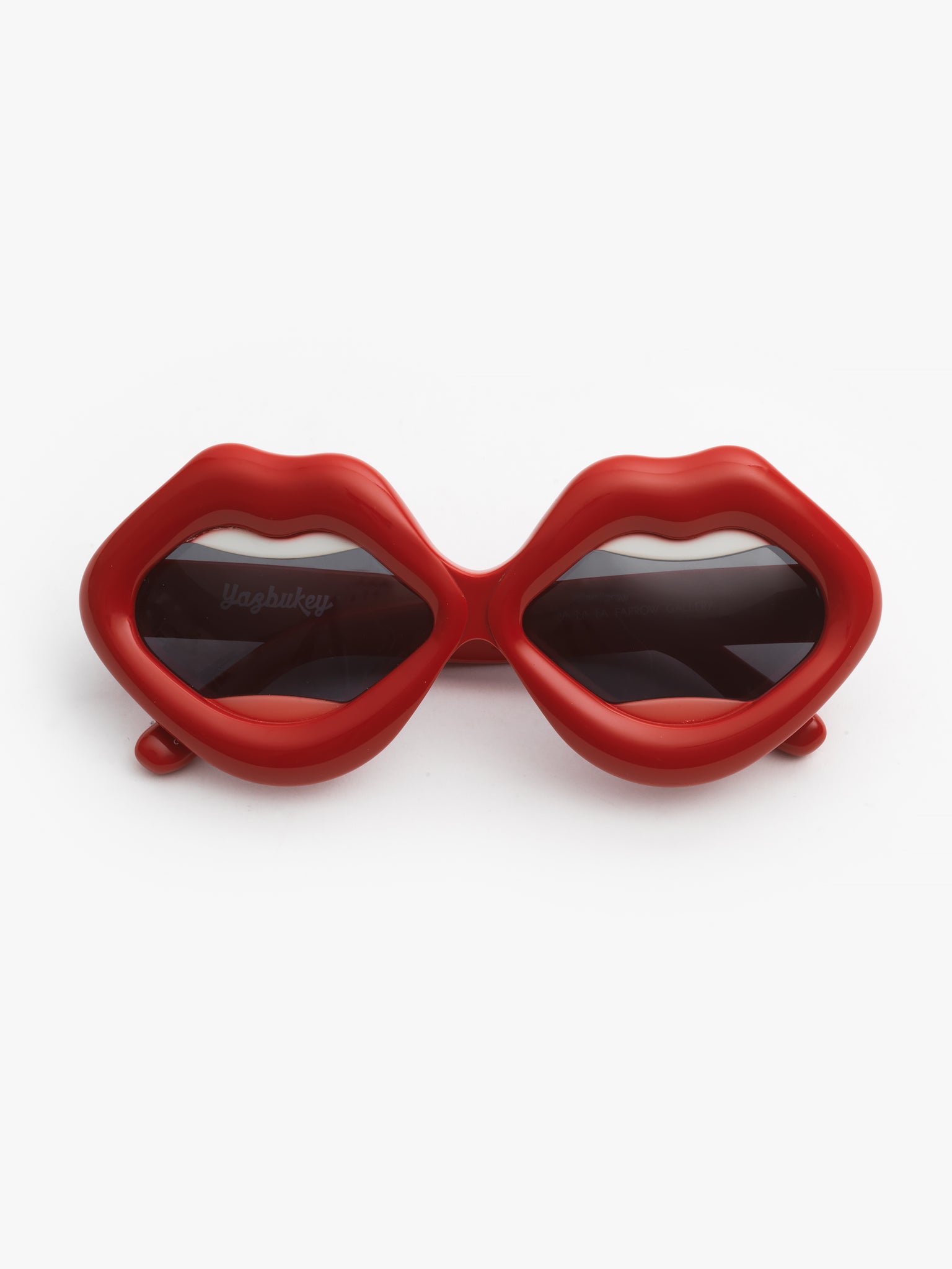 These Yazbukey sunglasses are a true statement piece, featuring a bold, lip-shaped design in fiery red, reminiscent of a classic lipstick shade. Playful yet striking, they embody the designer’s signature mix of pop-art inspiration and avant-garde style. This ultra-rare accessory is not just eyewear but a collectible masterpiece, perfect for those who dare to stand out.