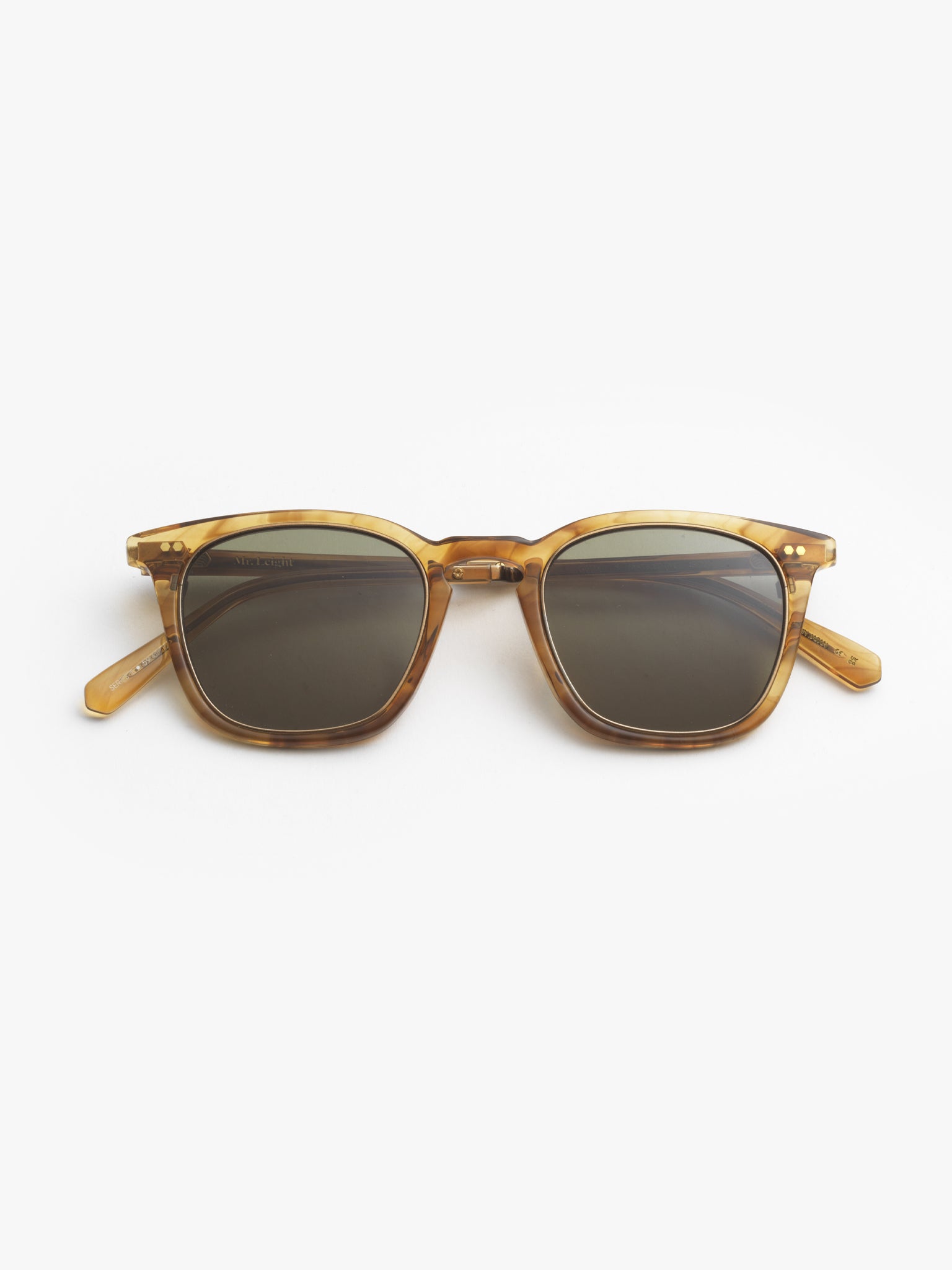 The frame's design is a timeless silhouette inspired by the rich acetate styles of Old Hollywood. Its square shape, titanium components and precious metal plating mirror the architectural prominence of its namesake.