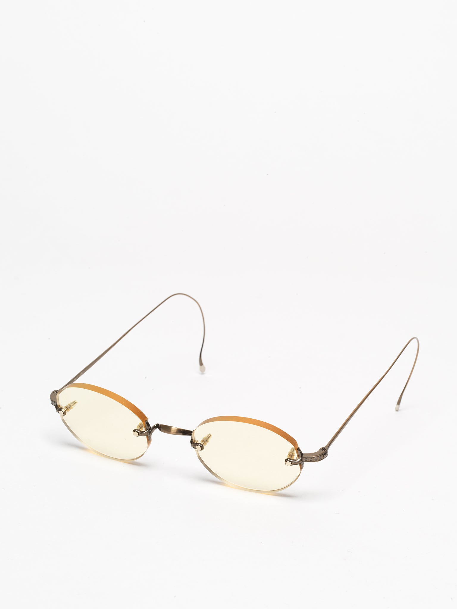 A lightweight, rimless sunglass with colored oval nylon lenses and cable temple construction for a refined, modern take on a vintage beachside classic.