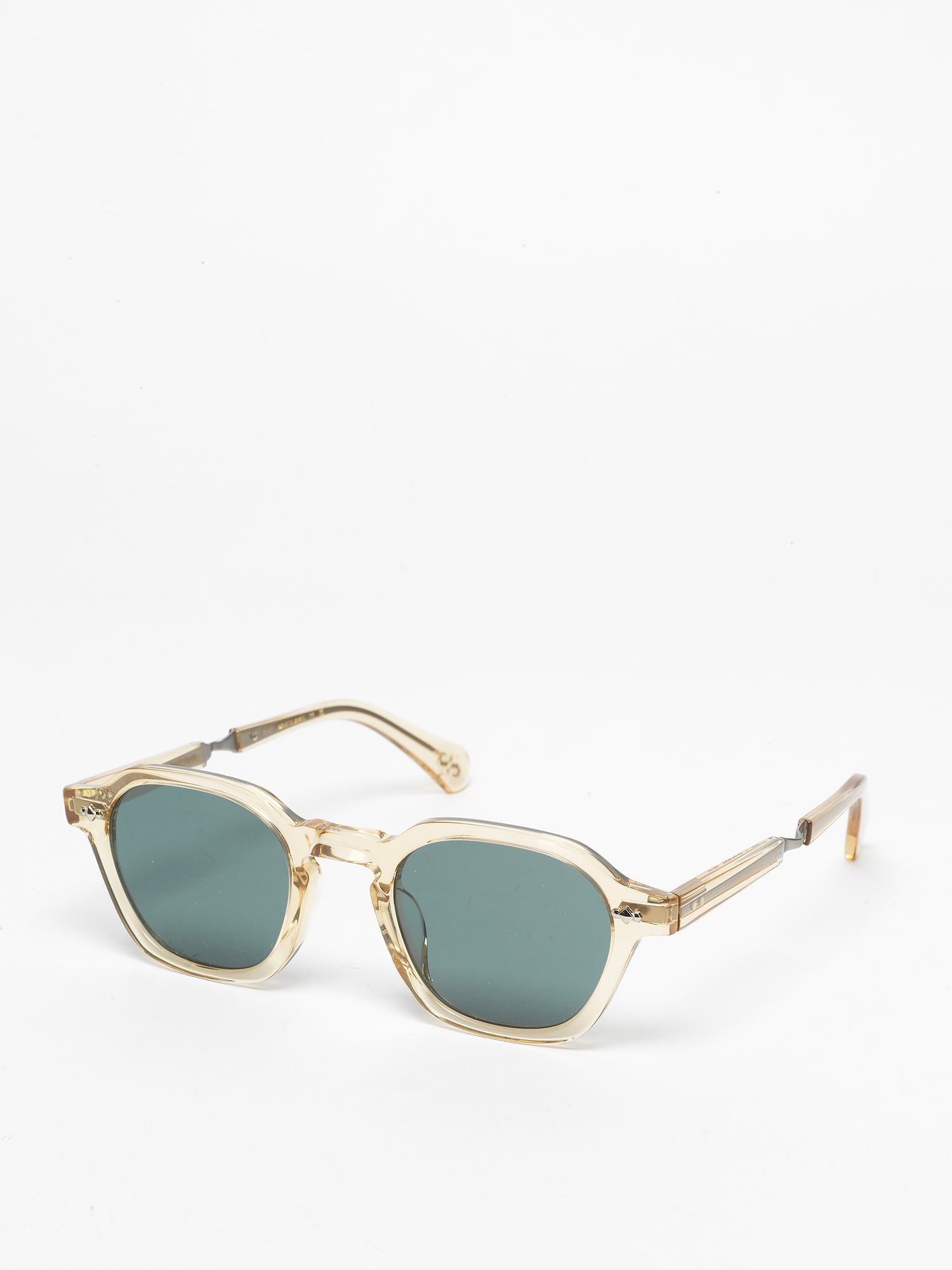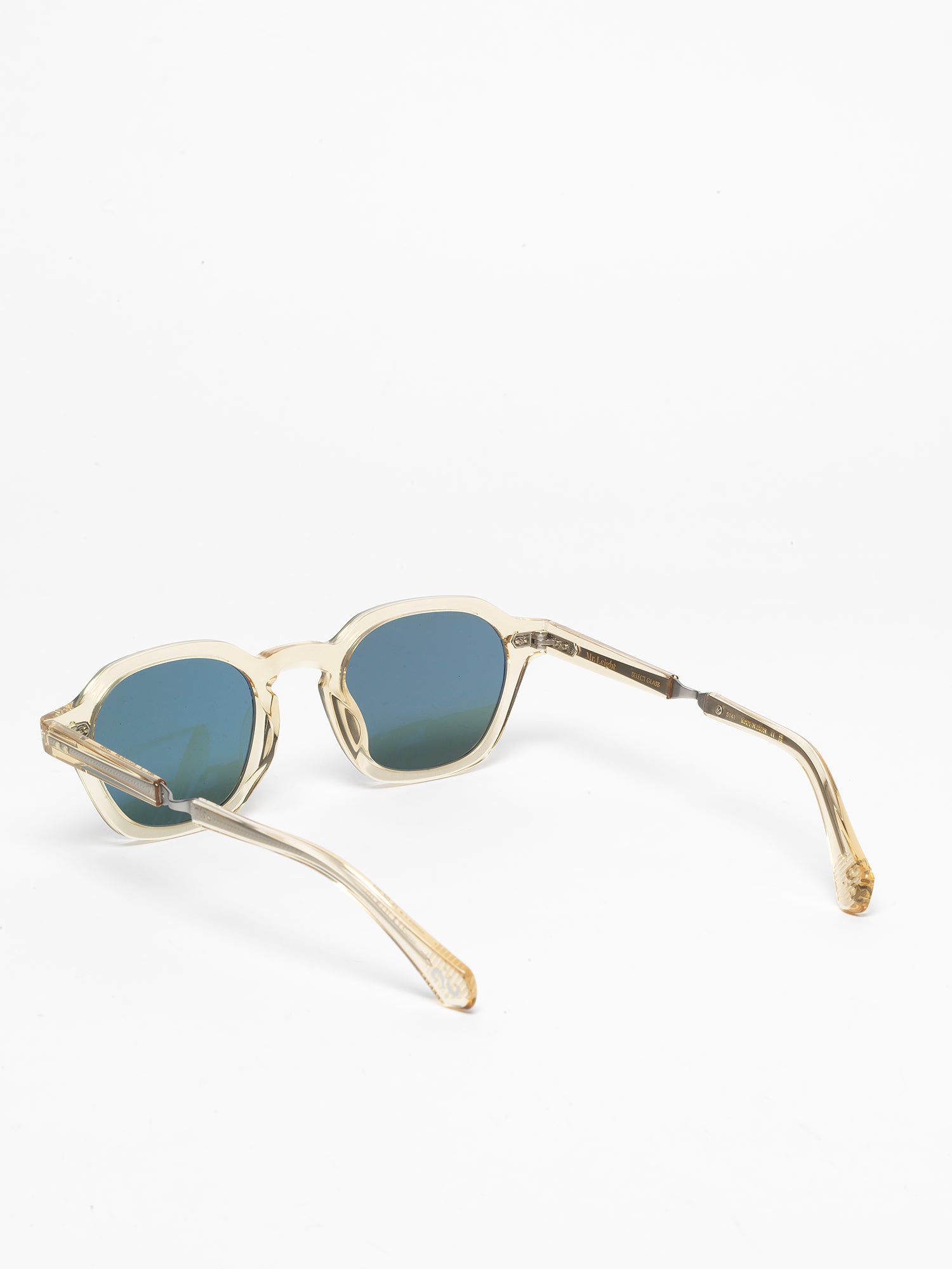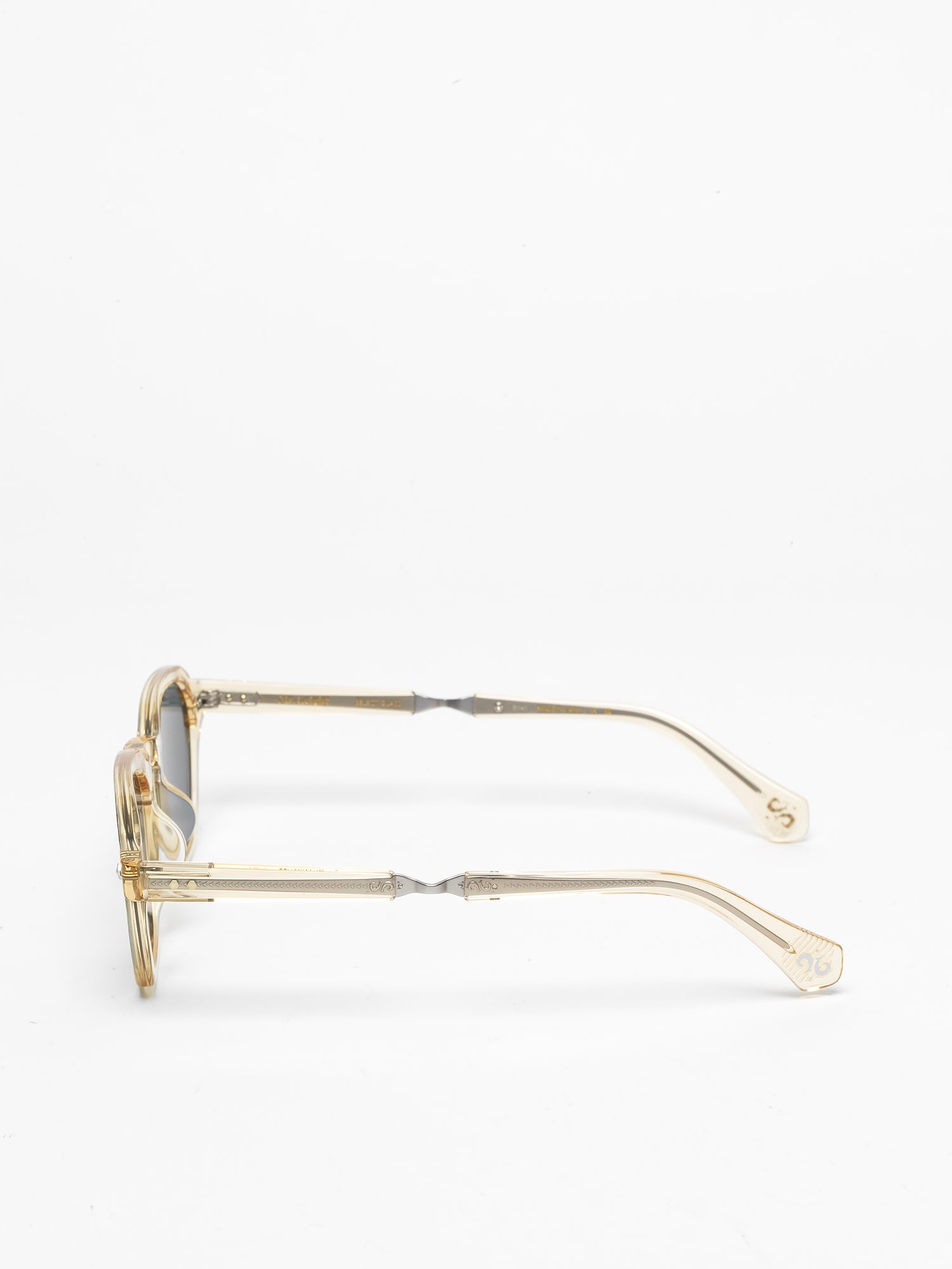 With its unconventional silhouette, Rell is a nod to the nonconforming spirit of mid-20th century musicians and artists. A geometrical silhouette is enhanced with striking color and lens pairings in addition to new filigree artwork on the core wire. Fish Hook metal decals on the outer temples and Mr. Leight Select Glass lenses complete the frame.