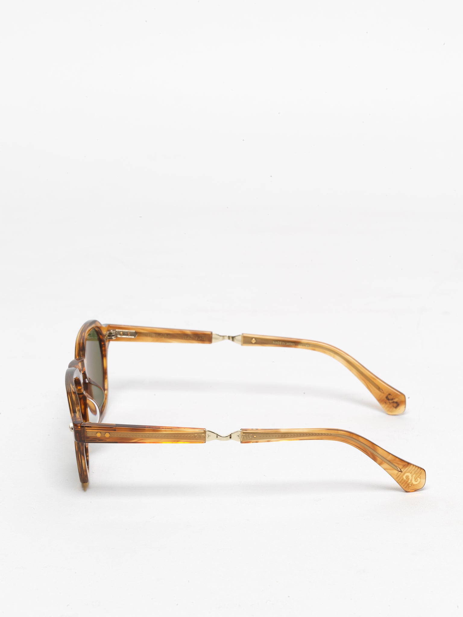 With its unconventional silhouette, Rell is a nod to the nonconforming spirit of mid-20th century musicians and artists. A geometrical silhouette is enhanced with striking color and lens pairings in addition to new filigree artwork on the core wire. Fish Hook metal decals on the outer temples and Mr. Leight Select Glass lenses complete the frame.